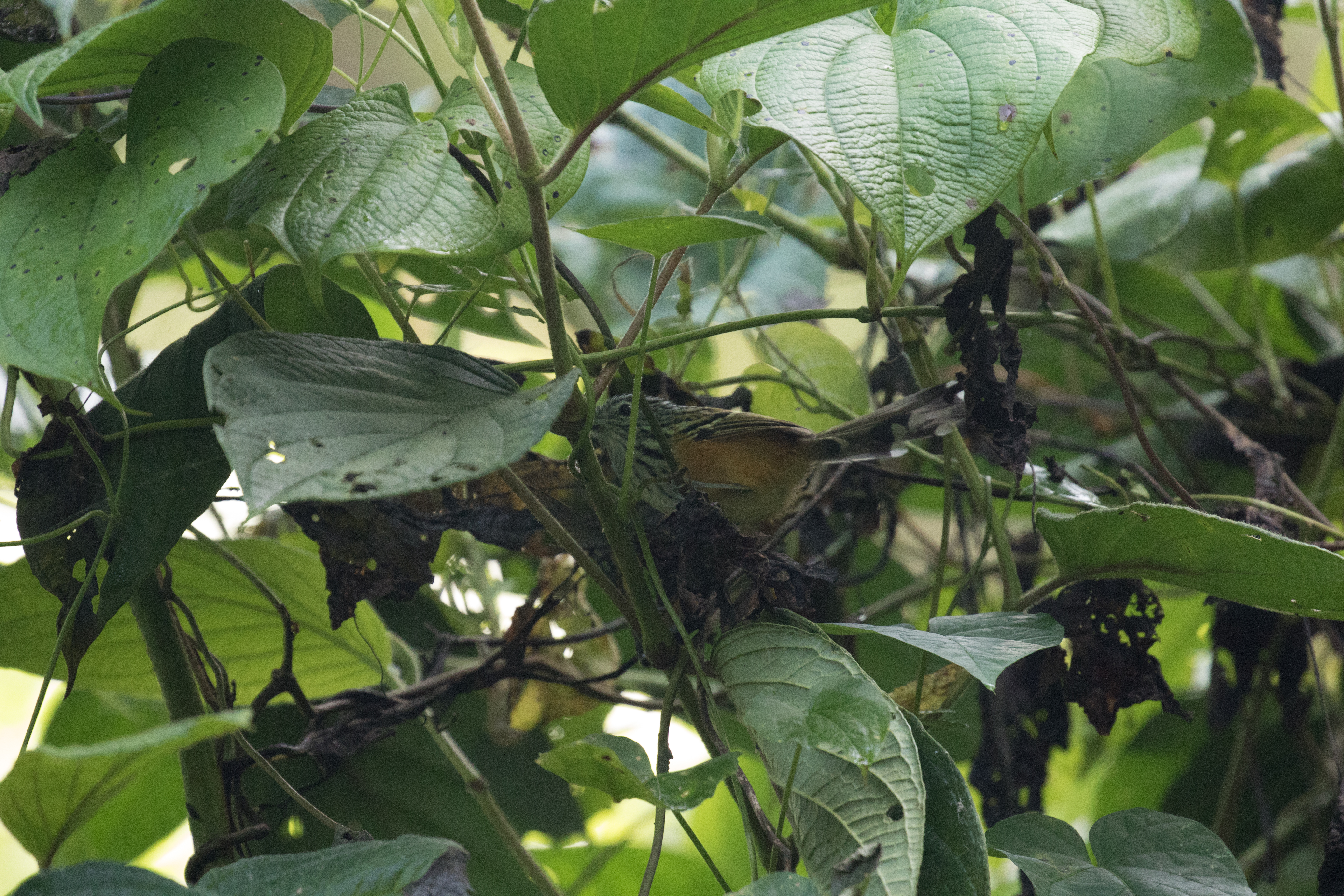 later I arrived in the mountain tourist town and made my way to a nearby hotel. Most of the interesting species are higher up in elevation than Minca, but one bird in particular, Black-backed Antshrike is only found below Minca. It was almost 1500 when I headed off down hill from Minca. I wasnāt sure how far Iād have to go, but after about two kilometers of walking, I finally found a single female Black-backed Antshrike. The original goal was to turn around shortly after finding the antshrike and catch a ride further uphill to try for a few of the mountain endemics, but I wasnāt able to hitch a ride. Instead I spent the rest of the afternoon walking the steep road back to Minca. Highlights along this section included some more lower elevation species such as Scaled Piculet, Golden-winged Sparrow, and Keel-billed Toucan. Also being the first time Iāve traveled to the tropics in the winter time, it was cool to see some familiar faces from back home in the form ofĀ TennesseeĀ Warbler, Baltimore Oriole, and Rose-breasted Grosbeaks. As dusk fell, I returned to Minca and coordinated a motorcycle for the following morning to take me to Campano, a small village up hill from Minca.