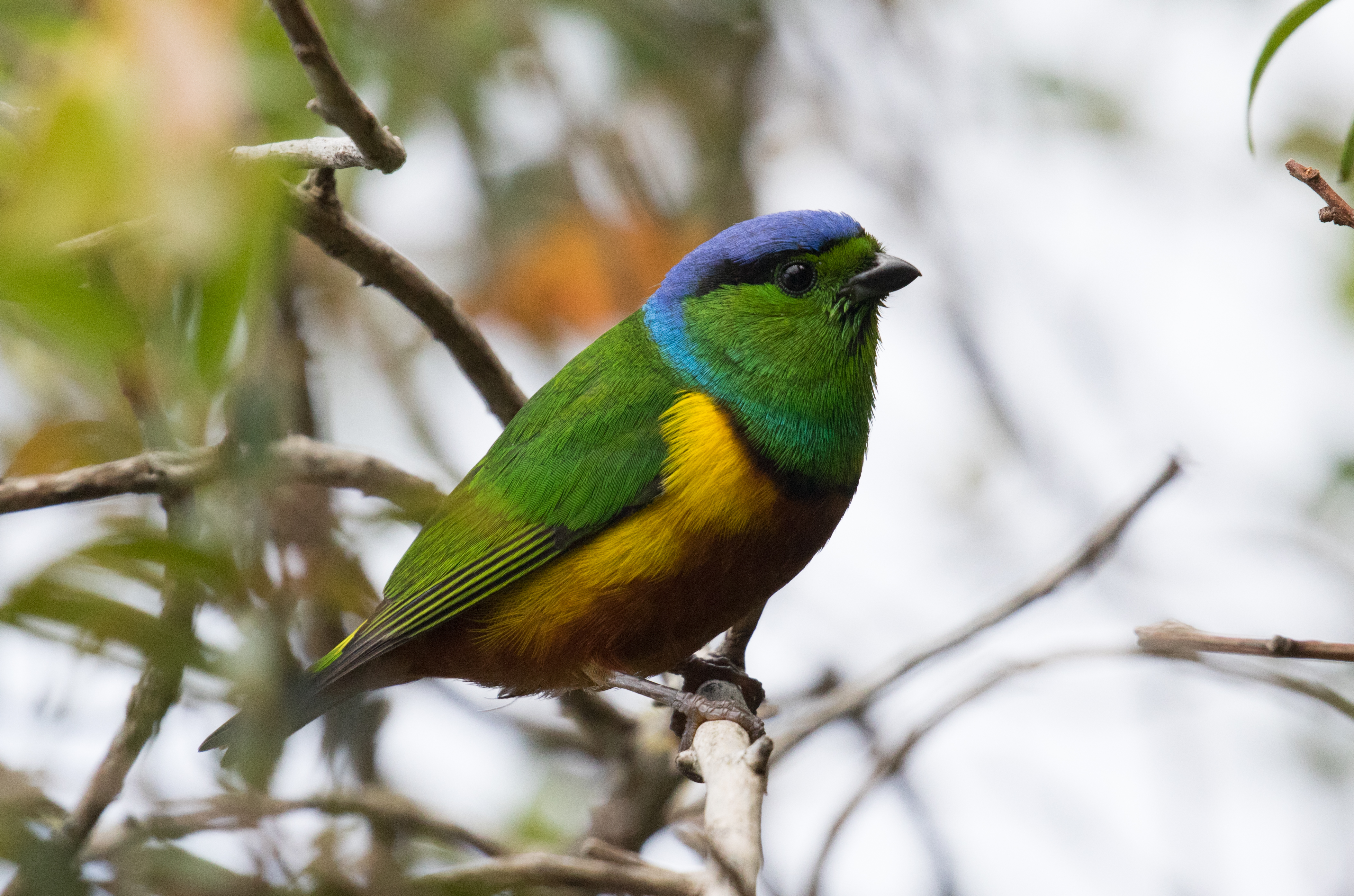Shortly after first light I heard a group of Santa Marta Parakeets calling over the hillside, but frustratingly couldn’t see them. Thirty minutes passed as Scaly-naped Parrots continued to fly by, but there was no sign of the parakeets. I was starting to get a bit worried when I heard a few quick calls from the Santa Marta side of the mountain. I did a quick scan and luckily noticed 5 Santa Marta Parakeets sitting in a tree about 75 yards away! I was able to watch them for a few minutes before they took off and quickly disappeared in the other direction. Had I not noticed them in the tree, I never would have seen them as they flushed in the other direction. Satisfied with this endemic I started to fast walk/shuffle (as quickly as you can with that much gear on you!) as I could to make it down the mountain a mile or so before I hit good forest where my next two targets could be found. Once I finally arrived in the forest before San Lorenzo Research Station, I quickly found my next target, White-tipped Quetzal and shortly after a few small groups of Sierra Nevada Brushfinch. With my last two high elevation targets seen, I now needed to make my way down another 2-3 miles to “La Tienda” a small shop with a lot of flowers that is the regular hangout for the Santa Marta Blossomcrown. By the time I made it to “La Tienda” it was about 1000 in the morning. As I sat watching the large group of flowering bushes, a group of Groove-billed Toucanets moved through the area. With good looks at the toucanets obtained, I was down to my last two target birds, Santa Marta Blossomcrown and Coppery Emerald. For the next seven hours I spent my time at La Tienda, Palo Alto (another spot with lots of flowers), and a small side trail in hopes of seeing the Blossomcrown. Although I had nice looks at a female Santa Marta Woodstar along the small trail, the Blossomcrown never arrived. Frustrated I headed back down the hill at dusk knowing that I would be spending another day in the area looking for the Blossomcrown.