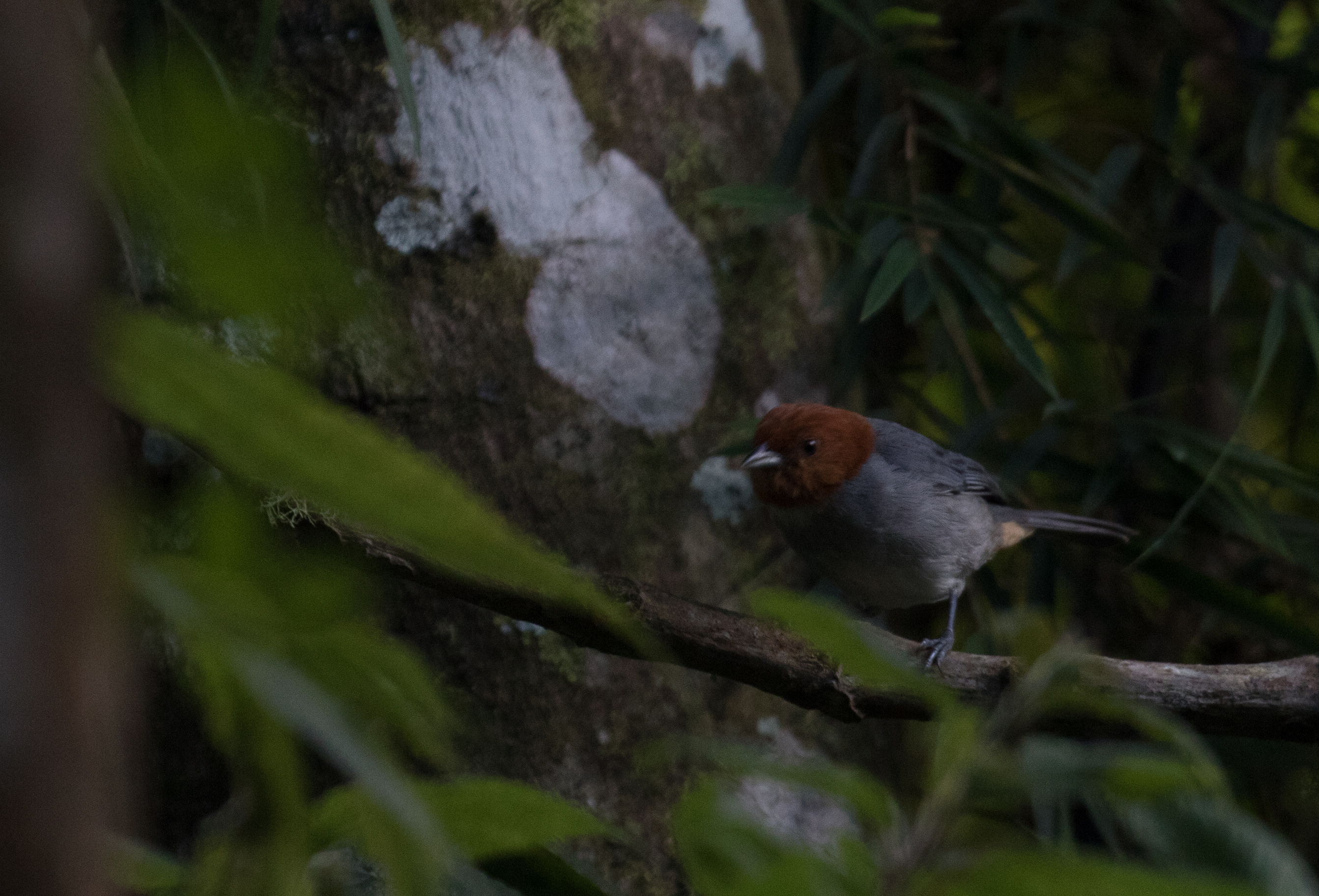 I awoke at 0300 and met my motorcycle driver outside of the hotel at 0315. Things started off well as the road was in much better shape than just a week prior (not nearly as much mud) and although it was still very bumpy and slow going, we initially were making good time. As we continued to climb I noticed the motorbike started to get slower and the driver would stop every once and a while and rev the engine before starting off again. At first I didn’t make much of it, but eventually it became noticeable that the bike was seriously starting to struggle. As we neared El Dorado lodge it stopped going up the steepest parts with both of us on it. I quickly jumped off and ran up the steep sections to make sure I was ready when the motorbike came up beside me. At first this wasn’t a huge deal, but still being a few miles from the top, this process started to become quite tiresome and very slow. To see the parakeet I HAD to be there at dawn so there wasn’t much time to complain and instead just continued to do sprints up the hill with my backpack on while the motorcycle gave me short reprieves on the less steep section. Somehow we managed to make it to the top just before light and as my driver started his descent back to Minca I unpacked my gear and waited for the parakeets.