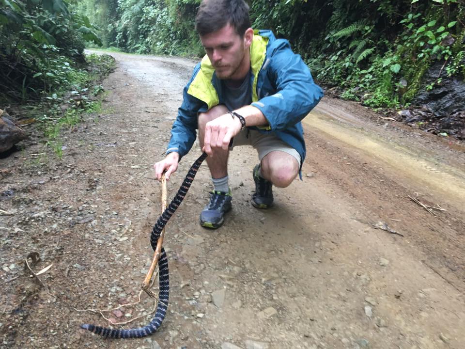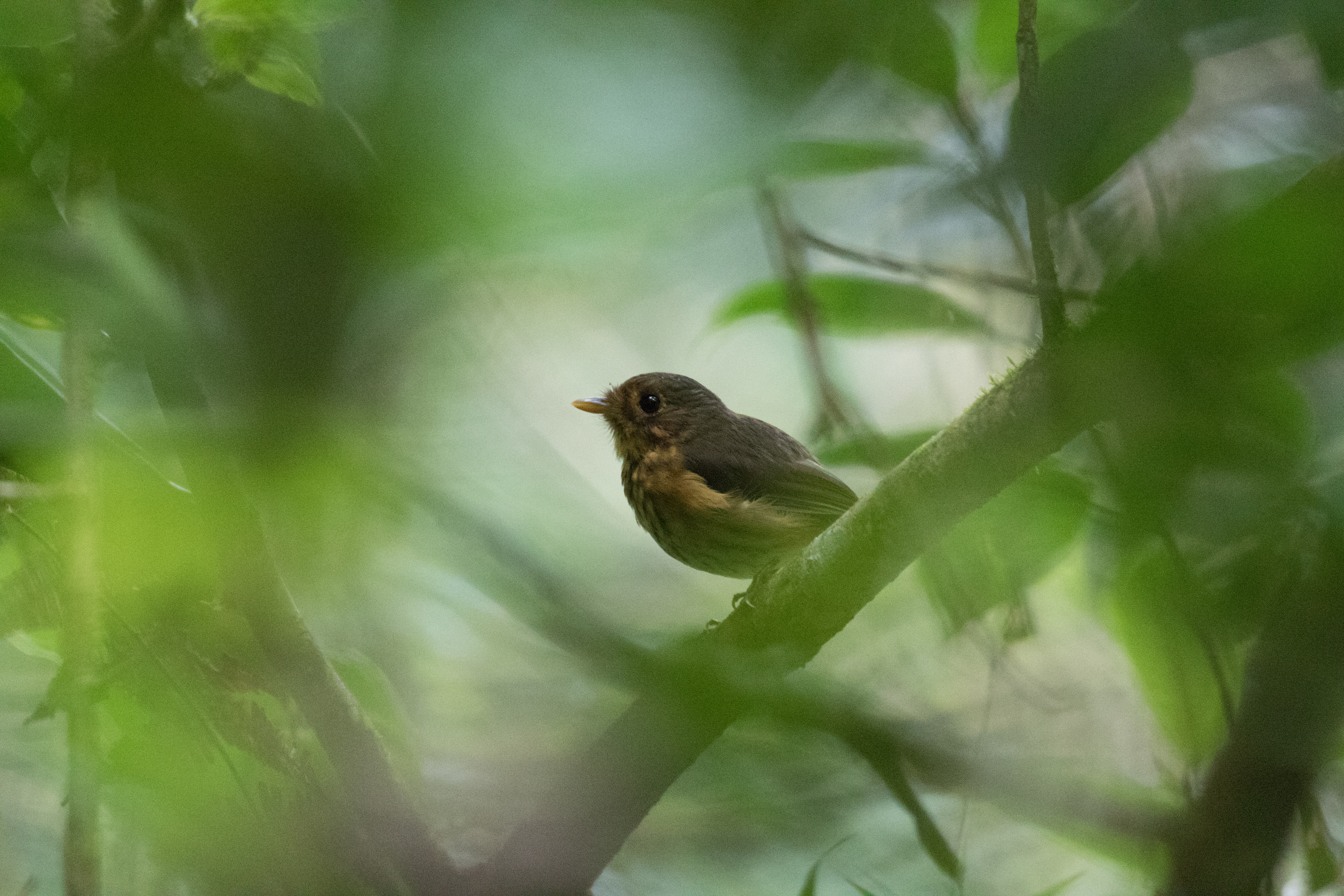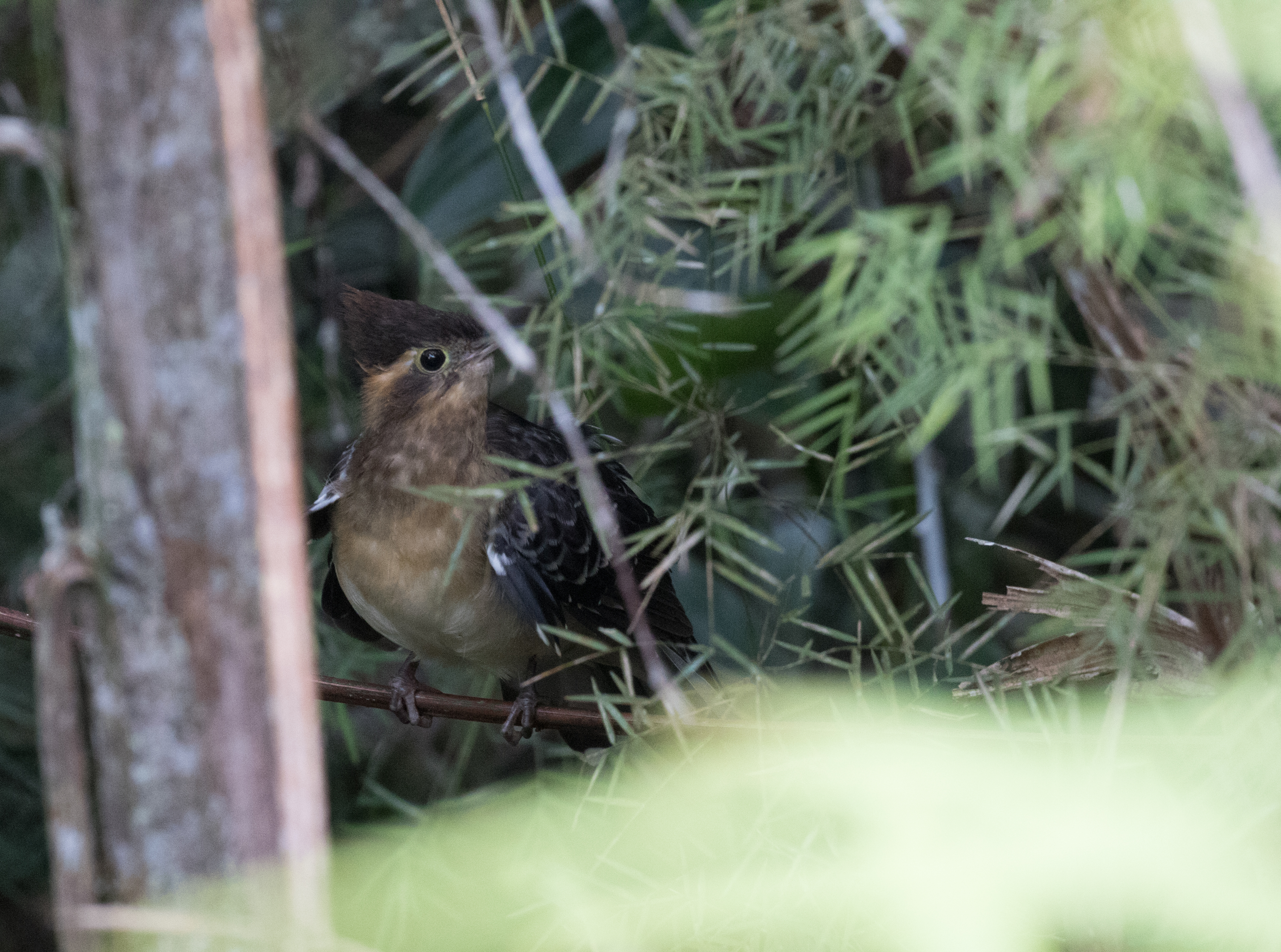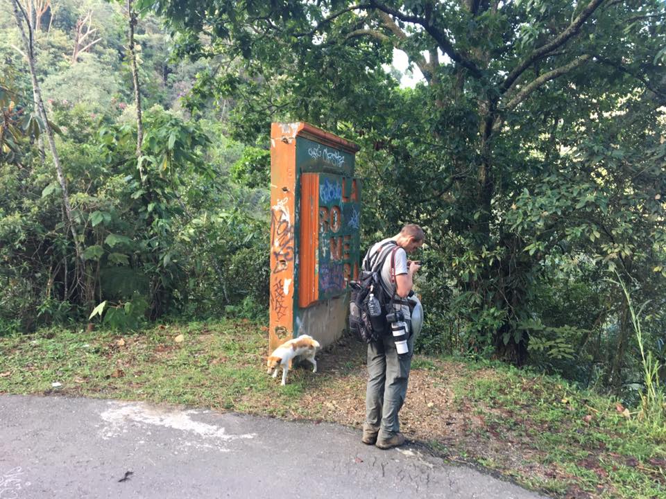 After a full day of traveling, Alex and I woke up at 0300 and started on the 3 mile walk to the Chestnut-capped Piha reserve. Our game plan was to owl along the way, and although we heard Tropical Screech-Owl, Mottled Owl, and Wattled Guan, we were unable to find any of the rarer owls. By first light we were already part way up the main trail at the Piha Reseve with one goal in mind: to find Chestnut-capped Piha, a critically endangered species found only at this location. It was a long morning as we walked around quietly searching for the Piha. Although we couldn’t find the piha, luckily there were plenty of other cool birds to see including Moustaced Puffbird, Ochre-breasted Antpitta, Multicolored Tanager, Streak-capped Treehunter, Brown-billed Scythebill, and Green-fronted Lancebill. By early afternoon we had made it to the top of the ridge and had began the decent down the other side. Alex took a quick break as I walked further down the trail when suddenly I heard the distinct call of a Chestnut-capped Piha! I called for Alex who quickly came running down the trail and we spent the next hour waiting and searching for the piha. Finally we made the decision to quietly sneak down the hillside which proved to be a good move and as soon we did we had great looks at two Chestnut-capped Pihas. From here we continued along the large loop trail and although the habitat was fairly poor we came across a major highlight of the trip in the form of a Pavonine Cuckoo, an extremely difficult bird to see, but this bird came in aggressively and at one point almost flew into us! After a long day of birding, we finally made it back to our room by 1800, meaning that we had been out for 15 hours and had walked close to 15 miles for the day! Shortly after we made it back, Alex’s friends Stephan and Claudia showed up. Coincidentally they were going to be doing almost the same itinerary as us for the next two weeks, just 1-2 days behind! Although they were going to stay at the ProAves lodge the next two nights, they didn’t have reservations for tonight so instead they stayed at the same small hotel as us. Since they had a rental car, we worked out a deal that if Stephan would give us a ride up in the morning, we’d show him the Piha. A fair trade for all. After an unsuccessful bout of owling we headed to bed.