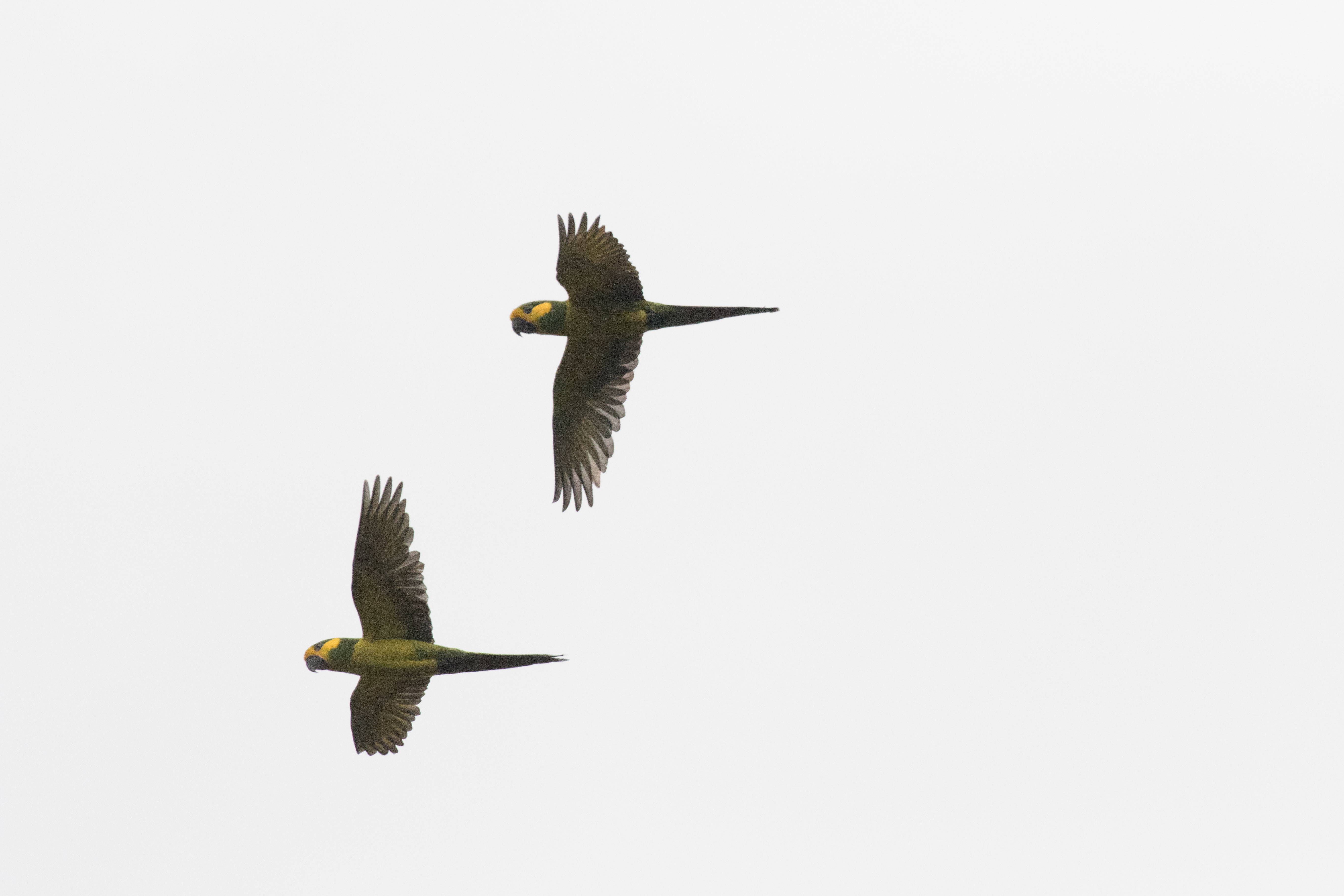 We arrived in Jardin at 1400 and I was feeling confident that we would have plenty of time to find the endemic parrot. We made our way to a hotel, but soon found out they were full. This wasn’t a big deal as we figured we’d just check the next one. The issue was that the next one was also full. And the next. And the next. And the next. Seven hotels later, we finally found an open room. Apparently it was the first day of a major festival and almost the entire town was fully booked. Although I was happy we had simply found a room, Alex was less than pleased as it was directly next to the stage in the middle of the plaza. We were in for a loud and sleepless night (not to mention we were grossly overcharged) but with the hotel sorted out, the next issue was finding a ride to the parrot location 45 minutes away. It didn’t take too long to find a taxi (a bit surprising since apparently there are only 5 in town!) and after once again being over charged, we were on our way to find the endemic Yellow-eared Parrot. Just as we were heading out of town, we heard some parrots outside the window and after taking a minute to recognize them as our target, we had the taxi turn around and soon we had quick looks at a flock of 45 Yellow-eared Parrots flying by. Unsatisfied with the look, we continued up to the top of the road and continued on to a clearing slightly down the other side that is known to be a good location to see the parrot. With about an hour of daylight left, we were treated to multiple pairs flying by as they headed off to roost. Happy that our plan actually worked, we headed back to town and eventually fell asleep despite the noise outside our window that continued into the wee hours of the morning.