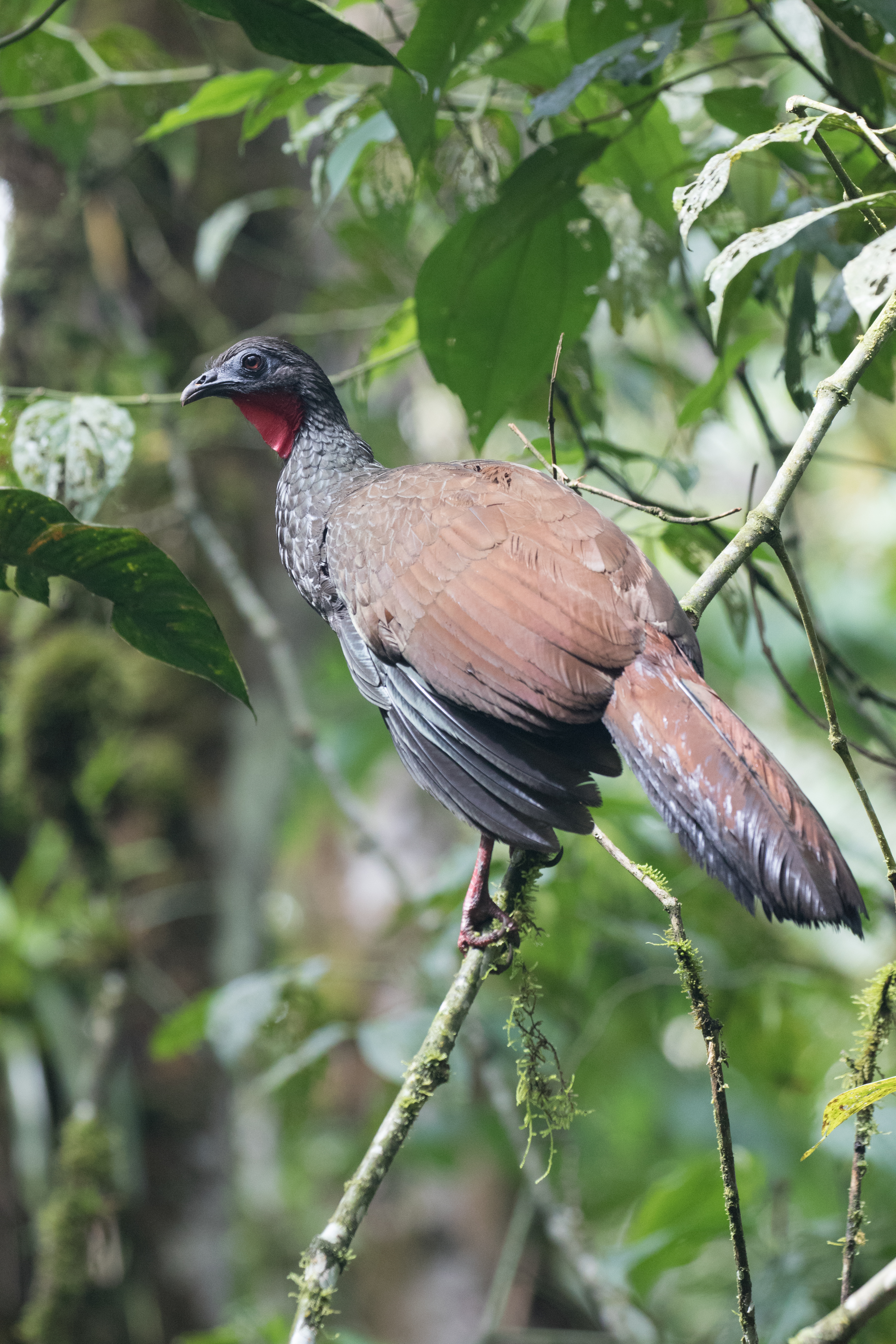 Happy to have seen my main target by 0645, I climbed back down the hillside and started to bird my way back towards the headquarters. It was a very enjoyable morning and I was able to add a lot of new birds for the trip. Rufous-breasted Flycatchers commonly called from the roadside and I logged a total of eleven Moustached Antpittas for the morning (two seen!). As flocks passed by, I was able to find Ashy-headed Tyrannulet, Rusty-winged Barbtail, Streak-capped Treehunter, Crested Ant-tanager, White-capped Tanager, and Multicolored Tanager. I also came across a few small groups of the endemic Caucan Guan which is very difficult to find away from this area. The main highlight of the morning though were the Red-ruffed Fruitcrows which would quietly sit alongside the road. Difficult to find throughout much of its range, this large colorful bird is absurdly common at Otun and I easily saw over 10 in a single morning. Having found all of my targets except Chestnut Wood-quail (heard only as this point), I decided to focus my efforts on it. I made my way back to the headquarters and coordinated a guide to walk with me for the afternoon along the trails behind the headquarters. Unfortunetly a year ago, the national park service changed the rules and it is now mandatory to have a guide with you if you want to walk the trails. This is annoying because the guides will only go out at certain times (0900 in the morning and 1500 in the afternoon) and although some know their birds well, no one really wants to slowly walk a trail looking for wood quail for hours. I spent the afternoon with my guide and although we saw a Grey-headed Dove we were unable to see any wood-quail despite the fact that they were frustratingly close. With a very successful day coming to an end, we headed back to the headquarters.