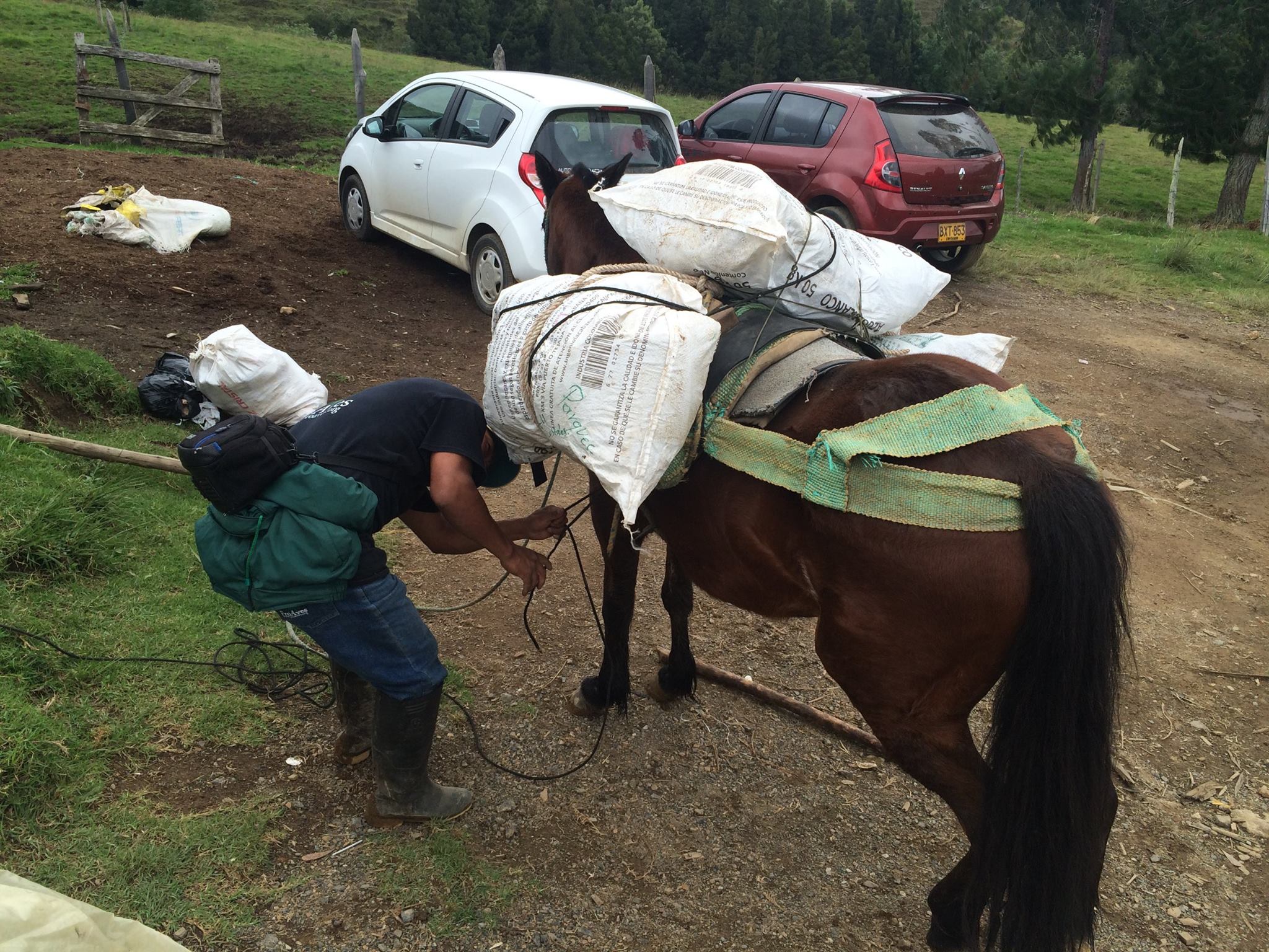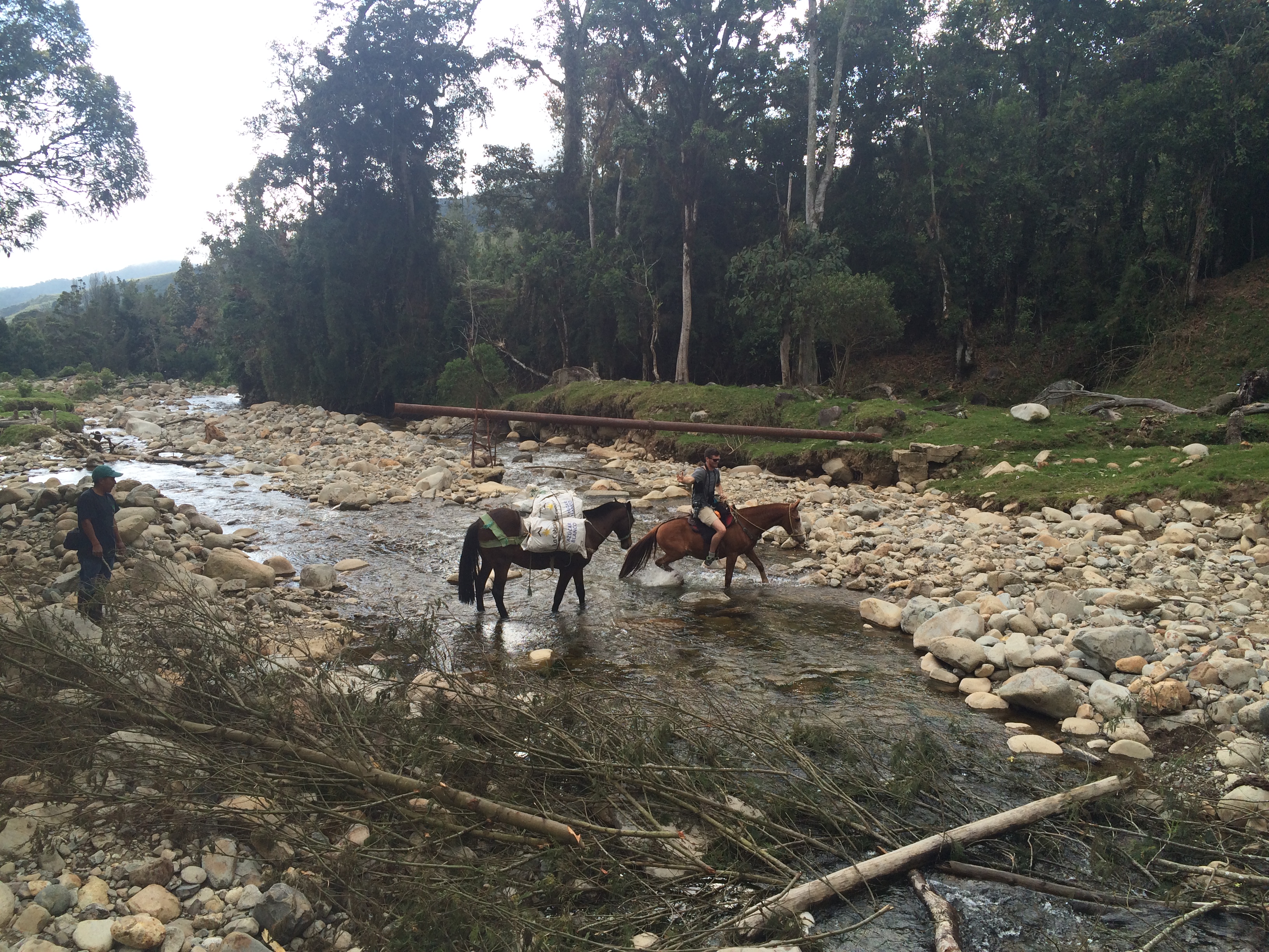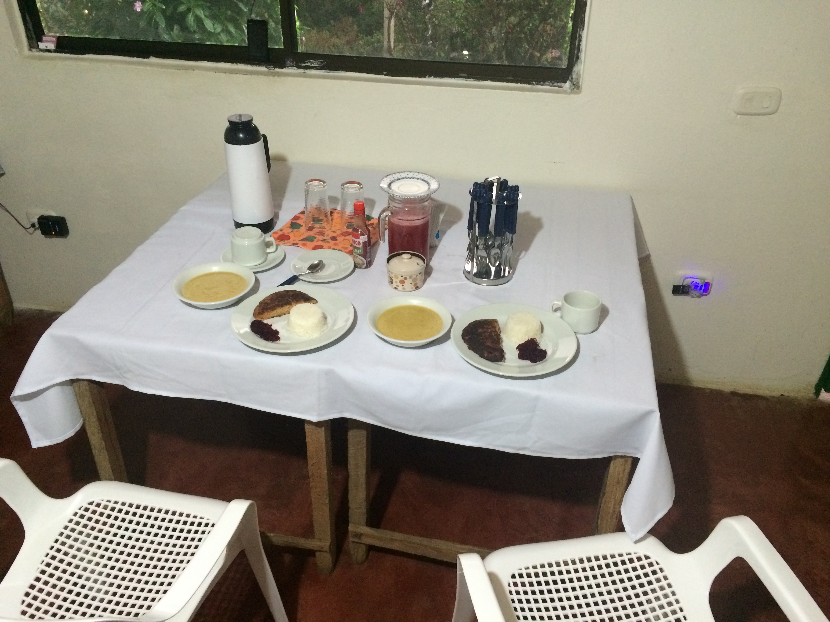We arrived in Urrao shortly before 1400 and quickly made our way to a nearby meetup point where our guide was waiting with two horses. We loaded our gear on to the first horse and then started off on the hour-long hike to the lodge. Alex started off riding the horse and eventually I took over. It had probably been 15 years since I had last riden a horse, but it was a nice change of pace to get a ride up the steep hillside instead of walking! We arrived at the lodge just before dark (and just before a large rain storm).