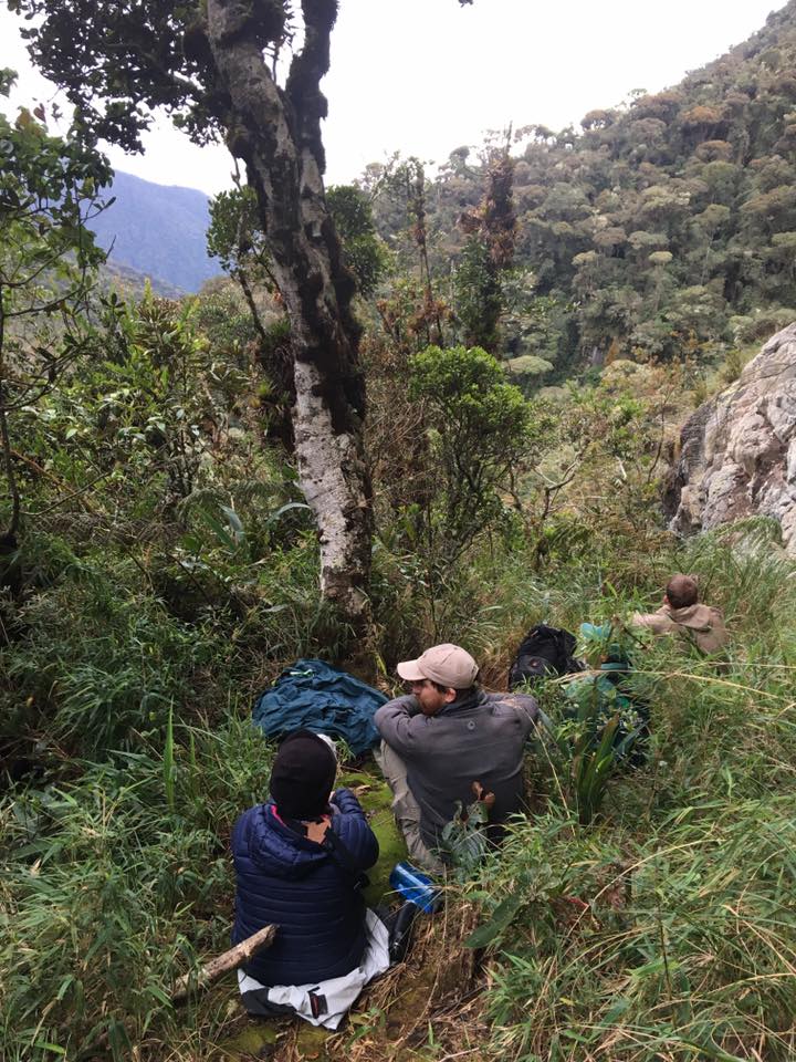 By early afternoon we had made it most of the way down the trail and ran into Stephan and Claudia on their way up towards the hummingbird feeders. After chatting for a few minutes we continued down the trail and eventually heard Rusty-faced Parrot. Although we had seen Rusty-faced Parrot at Rio Blanco, I was keen to see this subspecies as it is a potential split. We waited near an overlook and eventually the parrots distantly flew by, but only Alex was able to get on them. We decided to spend another (very boring) 1 ½ hours at the overlook hoping more would pass, but the only highlight was watching Alex demonstrate his playback skills by first taping in a Great Thrush and then taping in a Buff-breasted Mountain-Tanager that was originally about 200 yards away. Fun times.