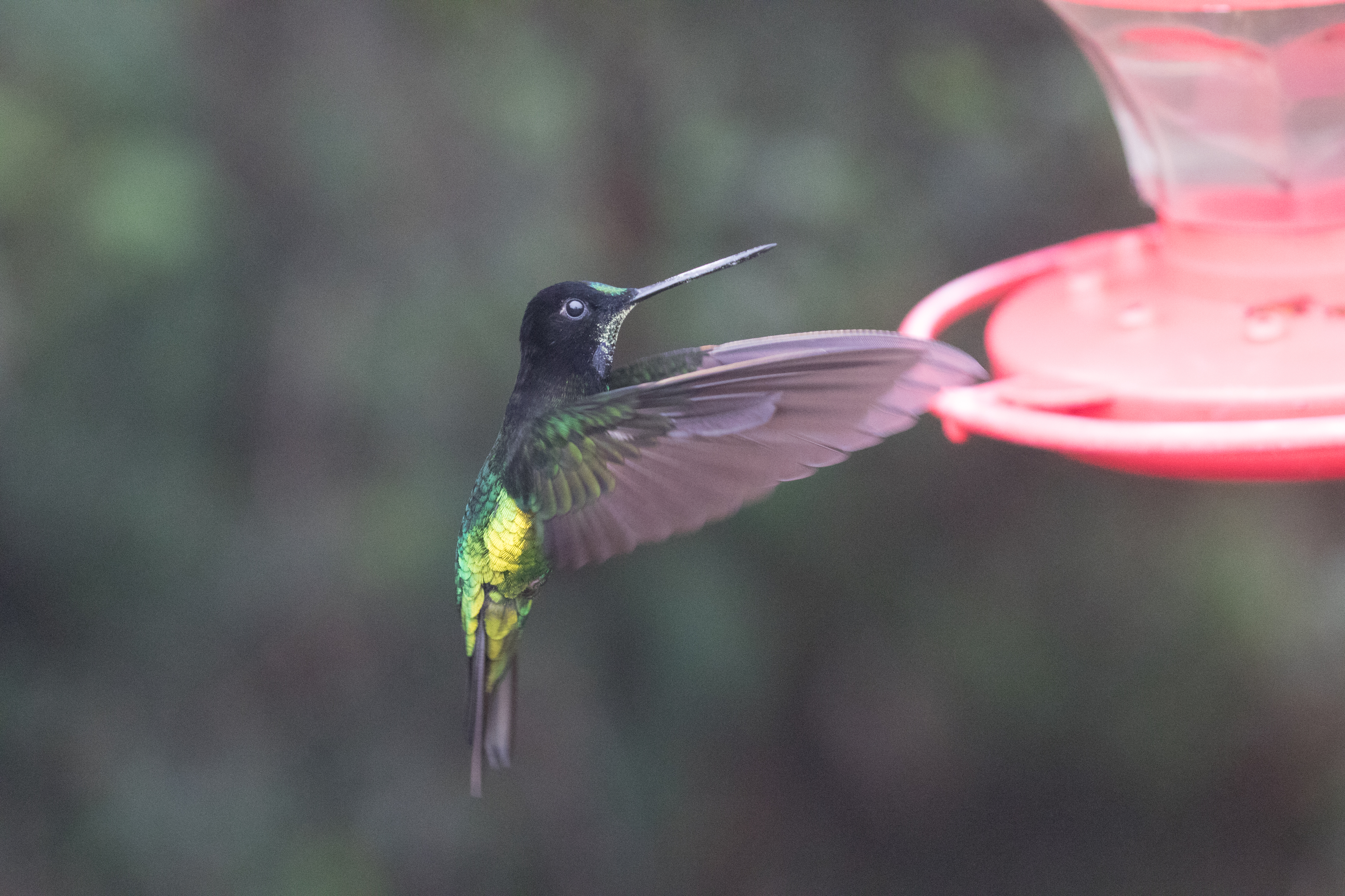The game plan for today was to start at the Urrao Antpitta feeder and then hike up to the hummingbird feeders where we could find Dusky Starfrontlet as well as Chestnut-bellied Flowerpiecer and Paramillo Tapaculo. The antpitta cooperated nicely and after great views of two Urrao Antpittas we started the hike up to the paramo, slowly birding along the way. Although we picked up a few new birds, the main highlights came once we had finally reached the paramo. As expected, there were a few Dusky Starfrontlets visting the hummingbird feeders alongside Chestnut-bellied and Black-throated Flowerpiecers. While Alex took a short break (he wasn’t feeling well) I headed further up the trail and eventually got great looks at a Paramillo Tapaculo. Having seen our target birds, we spent the rest of the day slowly birding down the trail. It was very foggy and very slow birding, but we still managed a few interesting birds including Citrine Warbler (a potential split) and quick looks at Chestnut-naped Antpitta.