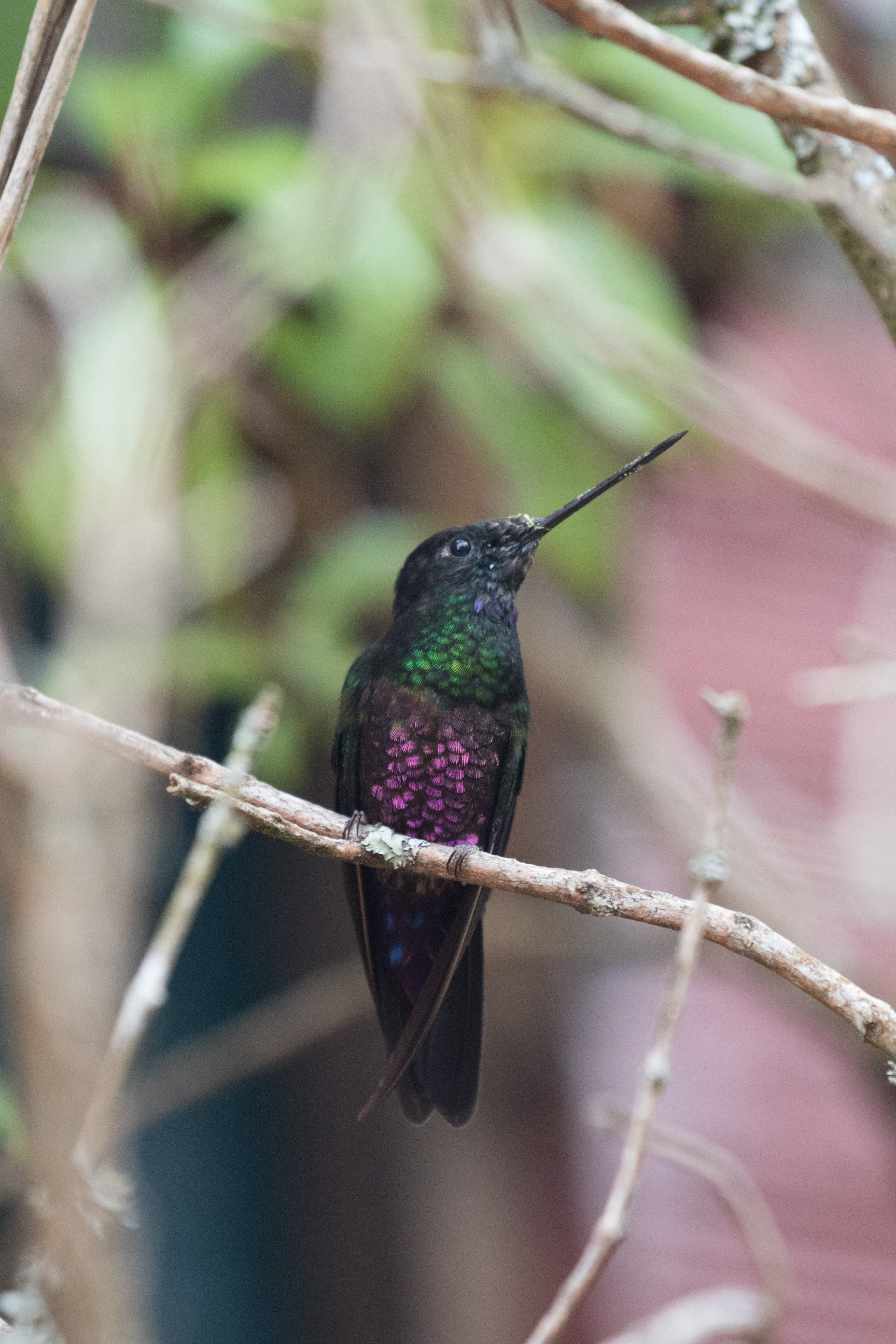 After battling Bogota traffic for way too long, I finally made it to my afternoon destination of Observatorio de Colibris by 1430. This relatively new site (opened for about two years) is a very reliable spot for the near endemic Blue-throated Starfrontlet as well as a reliable spot for a few more interesting hummingbirds. The site requires reservations (I made them the day before), but is very accessible from Bogota. I spent about an hour at the location and had great looks at tons of hummingbirds including Blue-throated Starfrontlet, Glowing and Coppery-bellied Pufflegs, Black-tailed and Green-tailed Trainbearers, and Sword-billed Hummingbird. After visiting the feeders I made my way to the north bus portal in Bogota and waited for a 2000 bus to Soata.