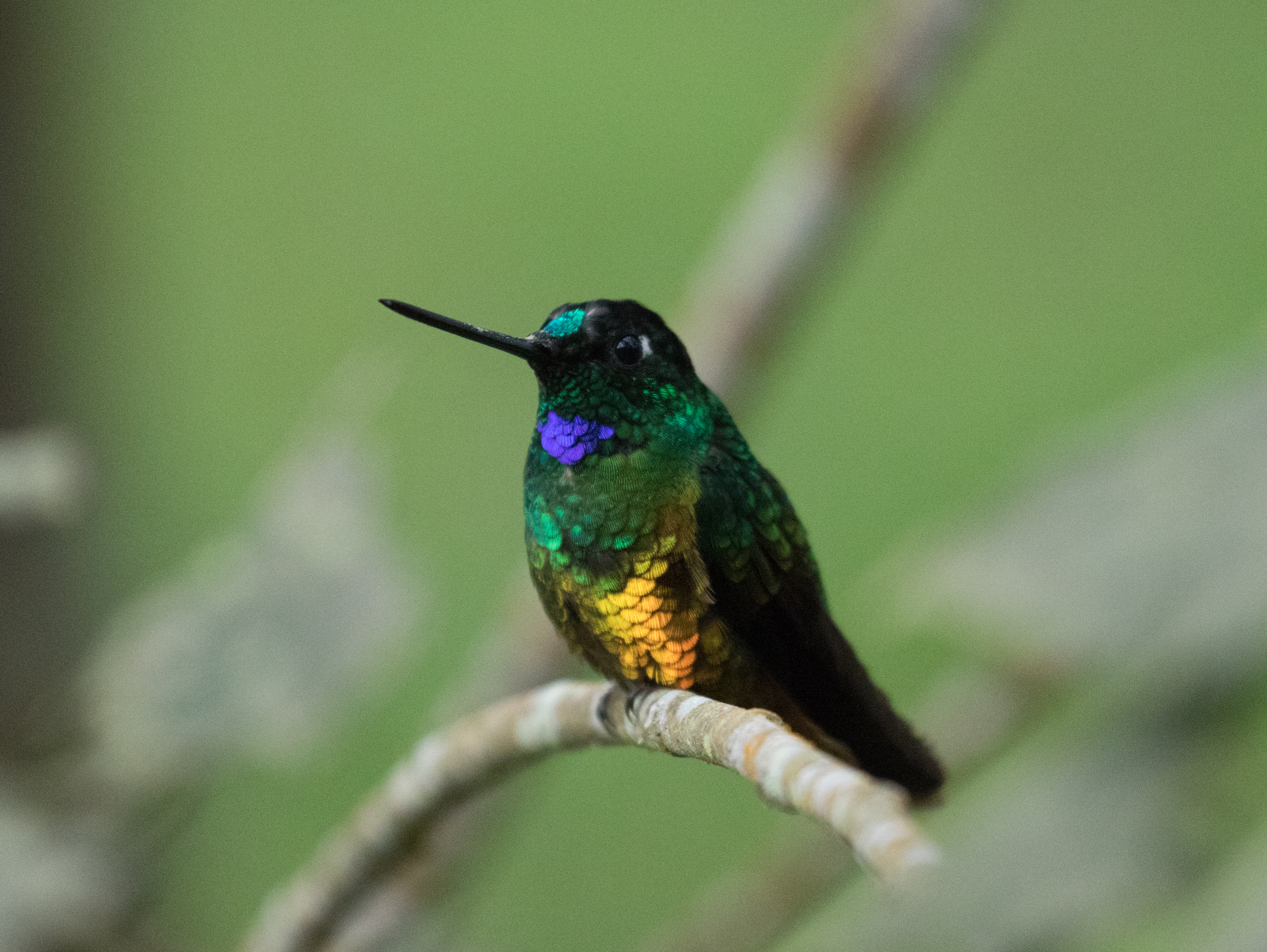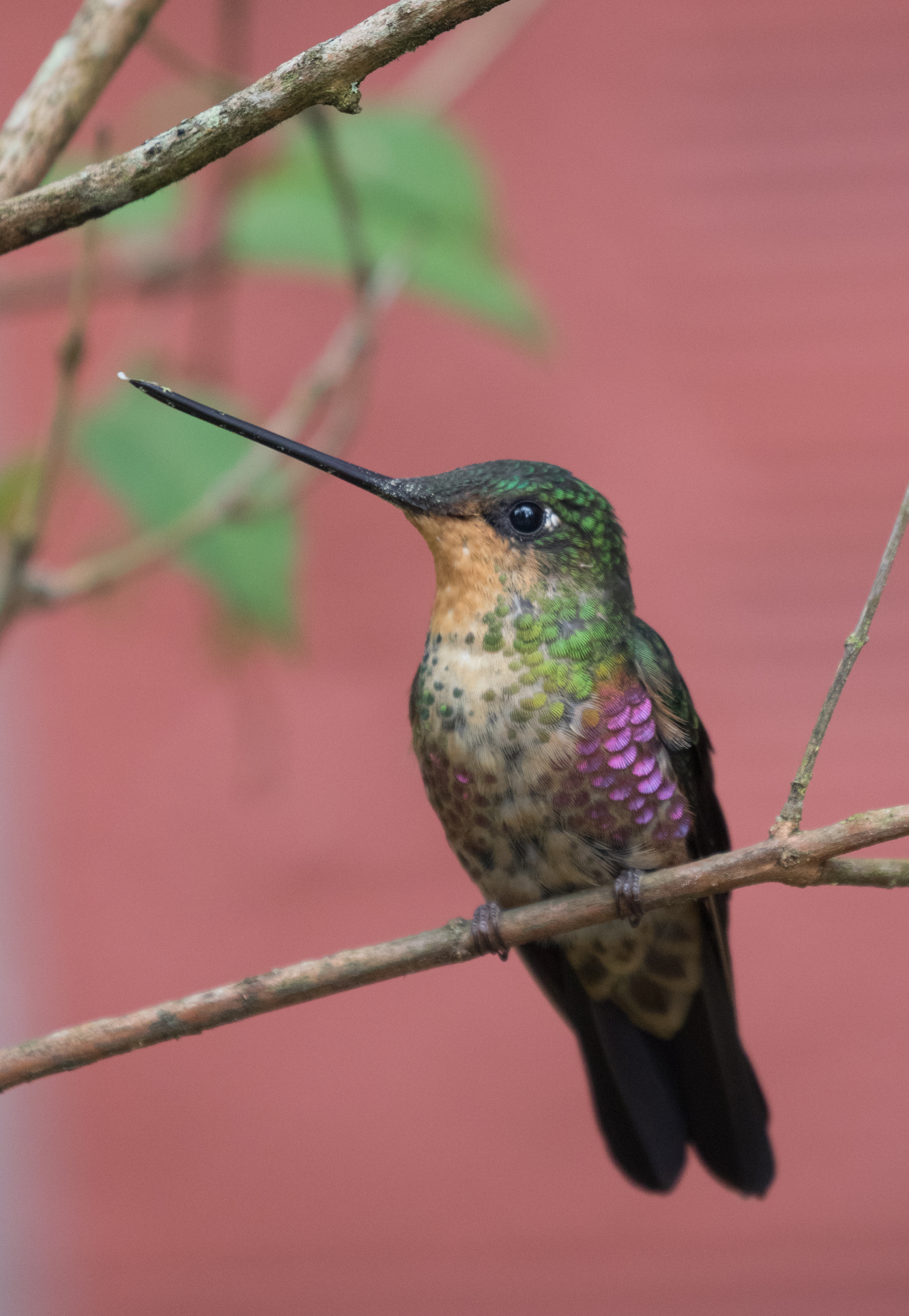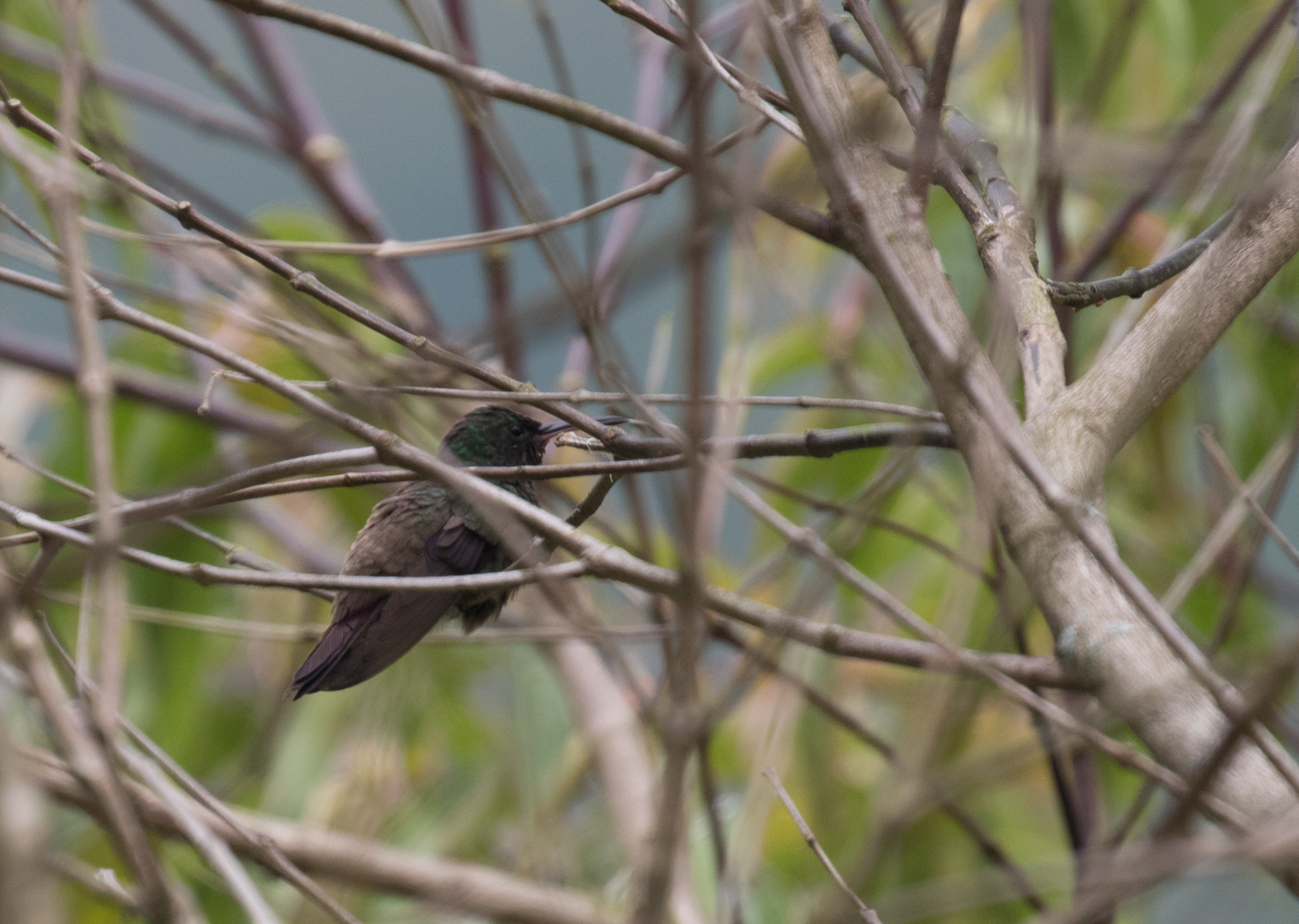 I arrived in Soata at 0200 and after pounding on a few hotel doors, finally woke someone up to let me in. I got a little sleep and was back up by 0430 to find a driver to take me up into the mountains for my main target, Mountain Grackle. Luckily it was pretty easy to find a driver, but unfortunately the price was a little steep. We headed off up the road and arrived around the birding area just at dawn. I spent the morning working my way up the road looking for Mountain Grackle, but couldn’t find any. By 0730 we had arrived at Pedro Sabriana’s house and after a short conversation, learned that the grackles hadn’t been very reliable on his side of the mountain and instead were consistently being seen on the other side of the pass. I headed up past his house to the other side, but over the next few hours couldn’t find any grackles. I did get some nice looks at Rusty-faced Parrot as a consolation prize. By 1030 the decision was made to return to town to look for Chestnut-bellied Hummingbird. I left my driver near the plaza and told him to return at 1600 so that we could look for the grackle again in the afternoon. I headed down a nearby gravel road and despite it being the middle of the day was able to find a few hummingbirds including a single Chestnut-bellied Hummingbird.