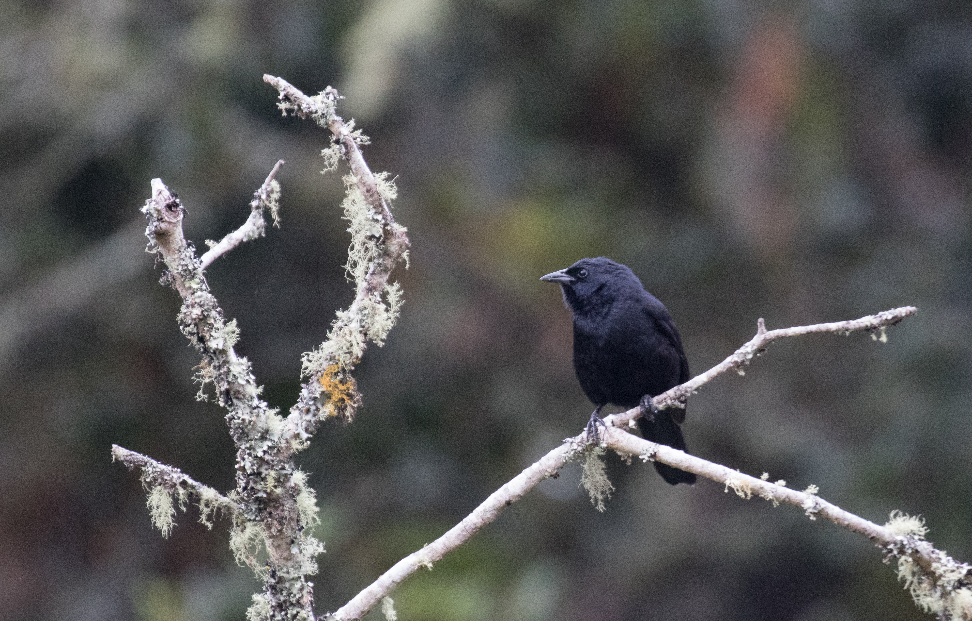 After 1600 I met back up with my driver and we once again headed up into the mountains. I realized 1600 was a bit of a late start and began to get nervous that we wouldn’t have much time at the top before dark. Before leaving the mountain that morning, Pedro had volunteered to accompany me for the afternoon so we picked him up at his house at 1645 and headed to the far side of the mountain. As soon as we arrived at his recommended spot, we could hear a flock of grackles calling distantly in the valley. Luckily there was a cattle trail heading directly towards the grackles and after a quick run down the trail, I soon found myself watching a small flock of Mountain Grackles. Pedro and I watched the birds as they fed only about 15 meters away for nearly 10 minutes before moving on further down the valley. Awesome!