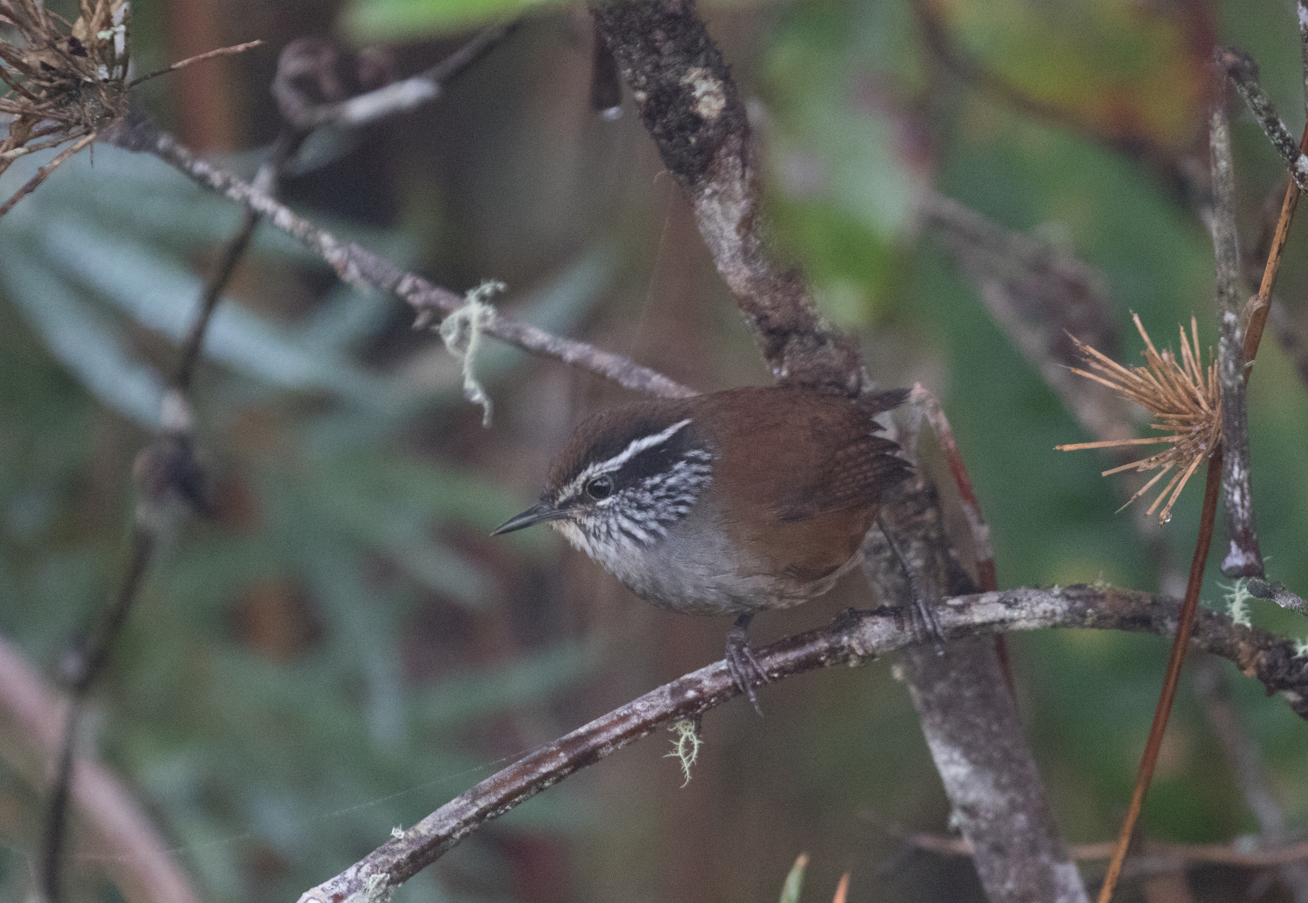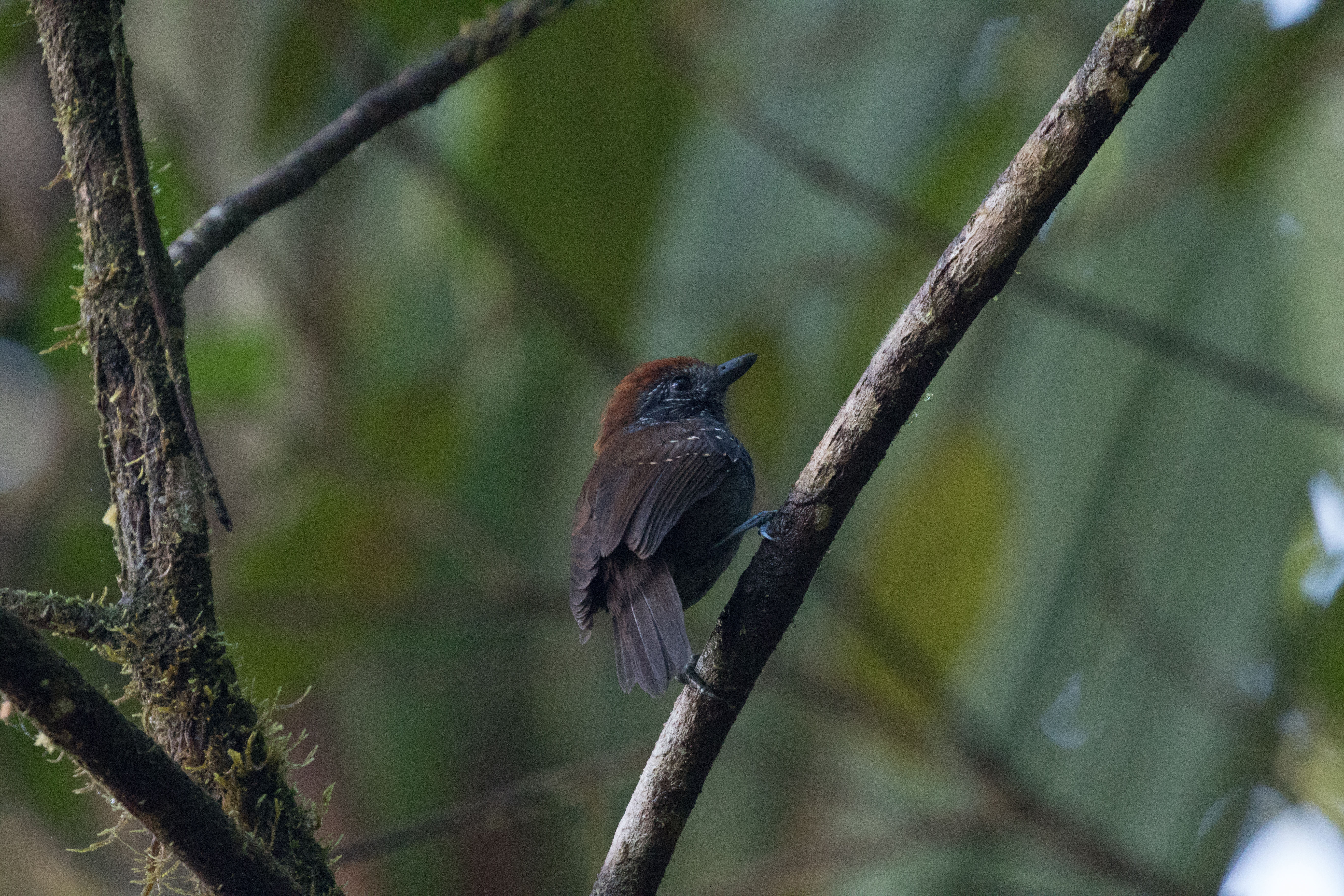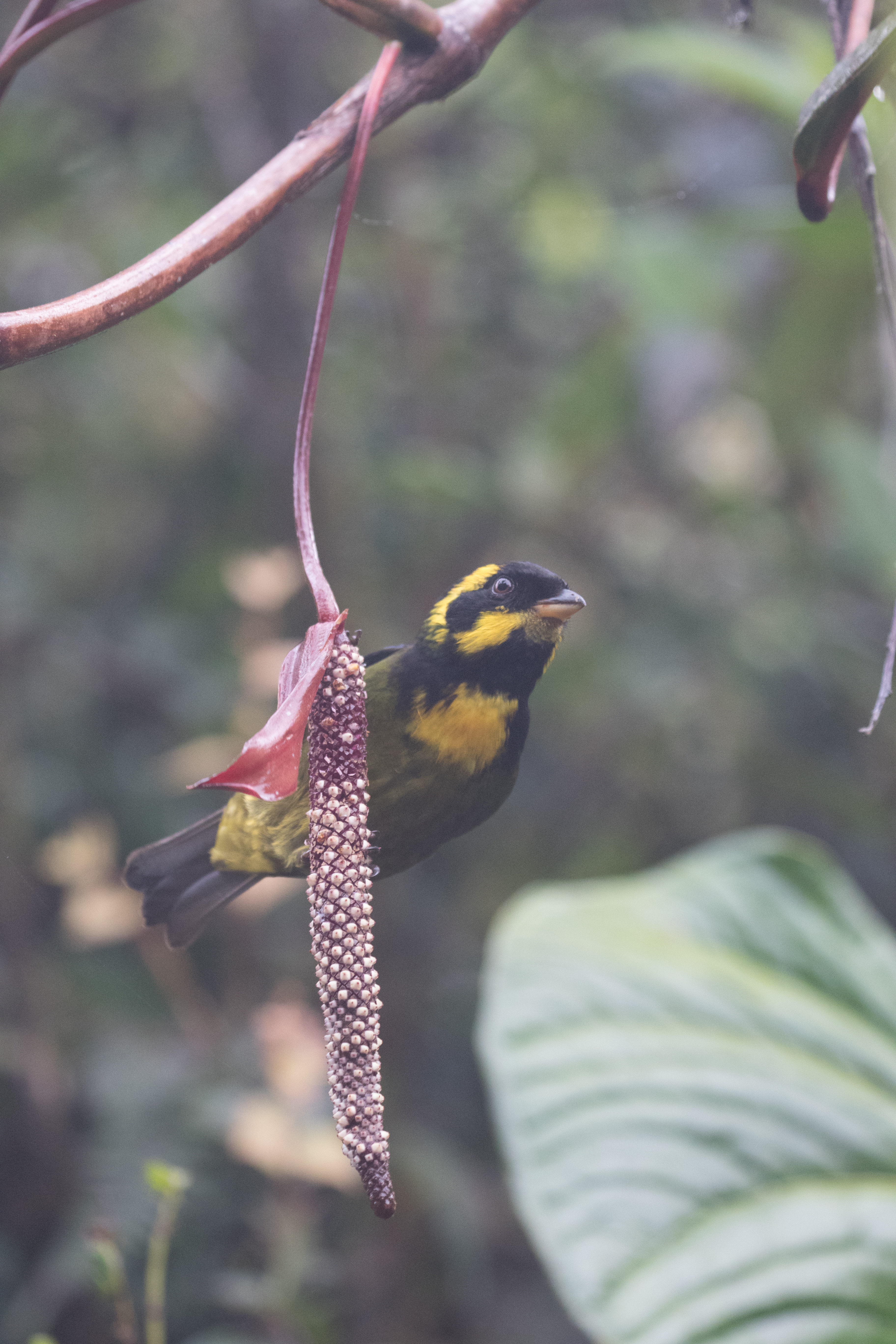 The three of us arrived at Montezuma by 1900, and after a nice dinner, coordinated to have the 4wd vehicle drop us off at the top of the road the next morning. We arrived at the top just as it was getting light and the rain and fog from the night prior was starting to clear. Just after breakfast we had fantastic looks at the endemic Munchique’s Wood-Wren which literally sang two feet from us. From here we started walking down the mountain, but unfortunately the fog rolled back in. Luckily Stephan spotted our other high elevation target Gold-ringed Tanager which fed nicely directly in front of us. Although the morning had started out quite well, our luck stopped there. It began to rain and the bird activity dropped to almost zero. We made our way to a shelter about halfway down the road and after eating lunch and waiting for an hour, Stephan and Claudia decided to head back to the lodge. I was determined to find my main target, Bicolored Antvireo, so I decided to stay behind with our guide (a guide is mandatory here) and wait for the rain to stop. The rain never did stop and although we didn’t see much the rest of the afternoon, we did run into one nice flock that contained a Choco Vireo and a Rufous-browed Tyrannulet. We made our way back to the lodge by dark and hoped that the next day we would have better weather.