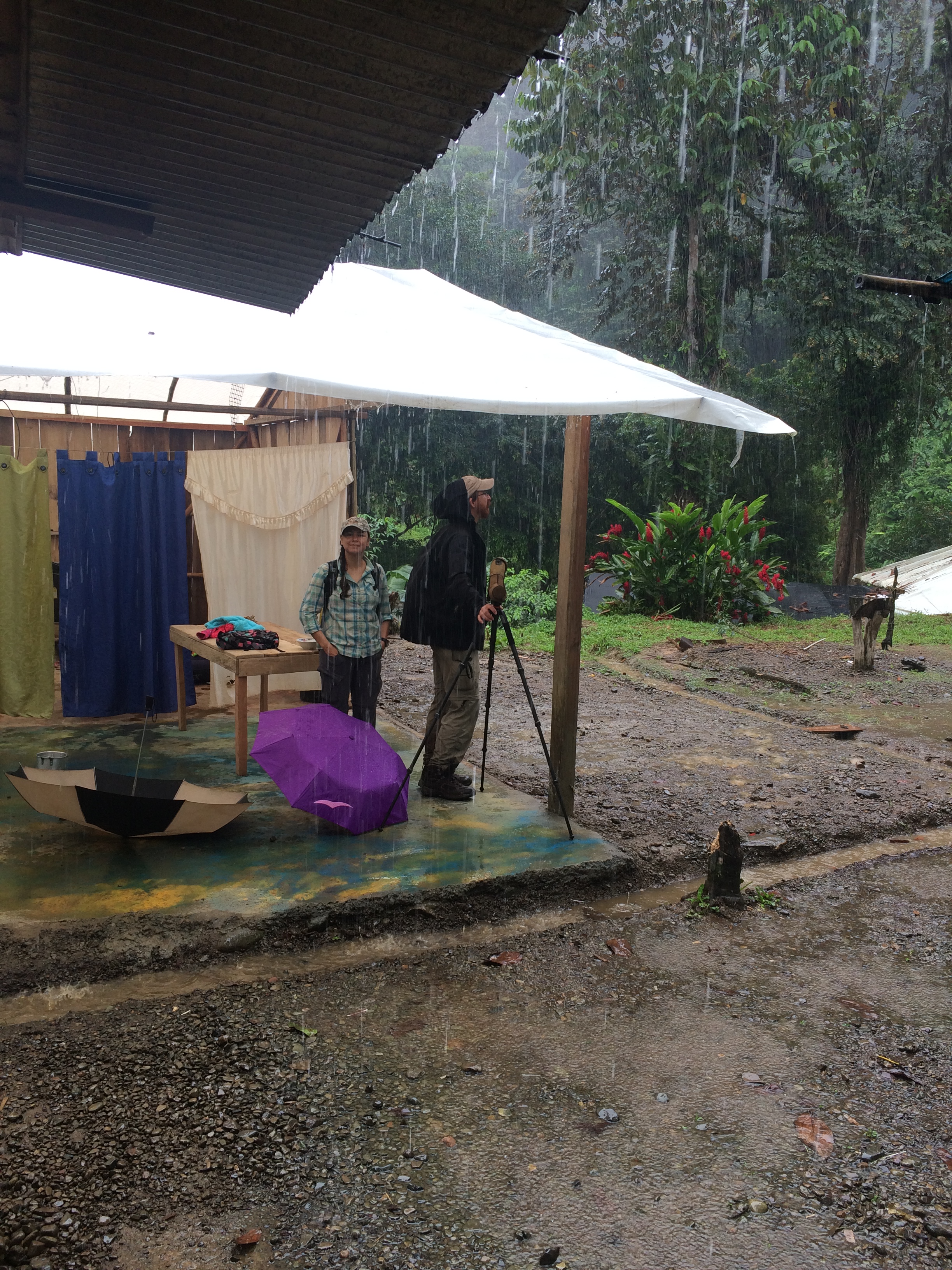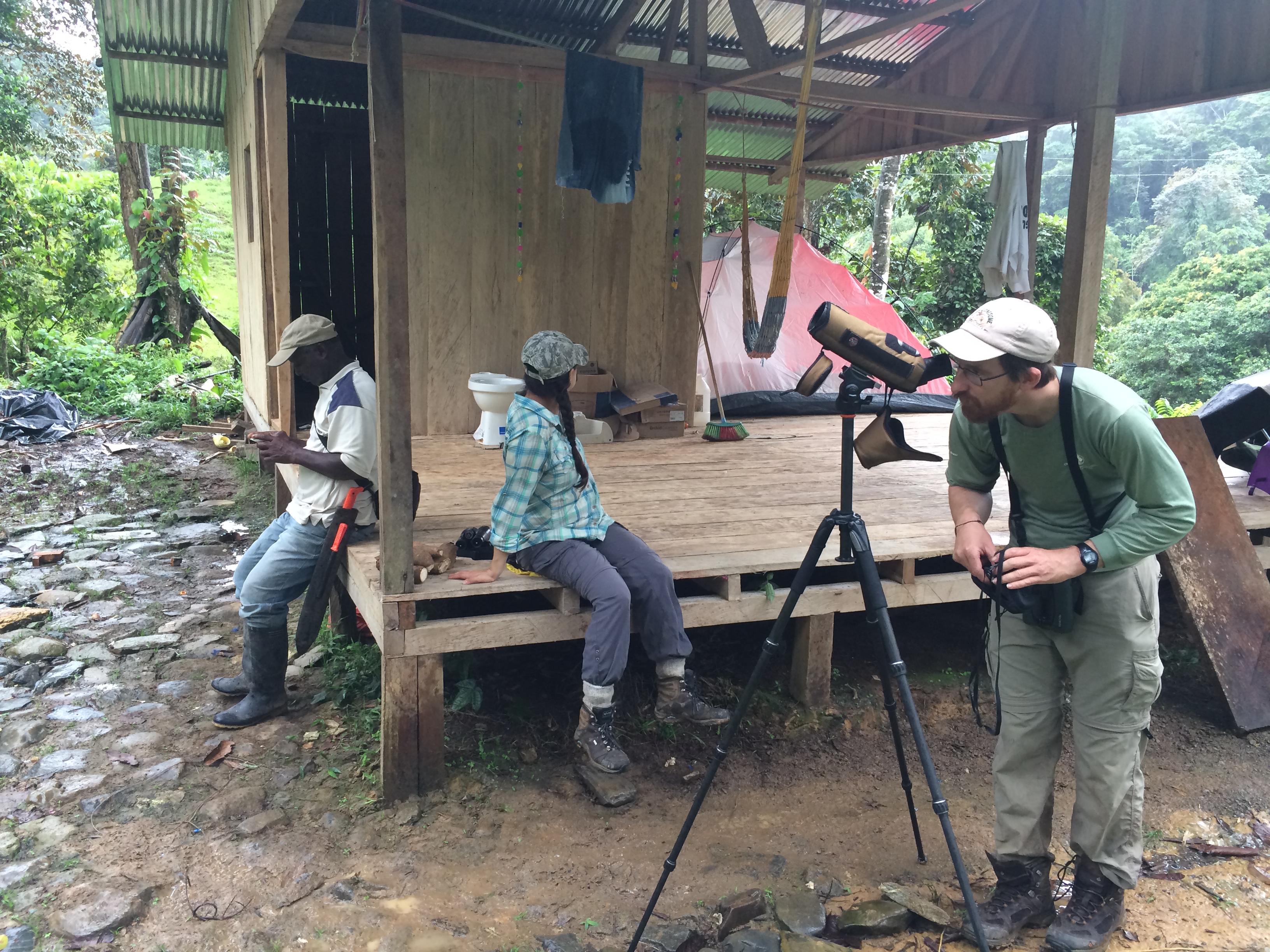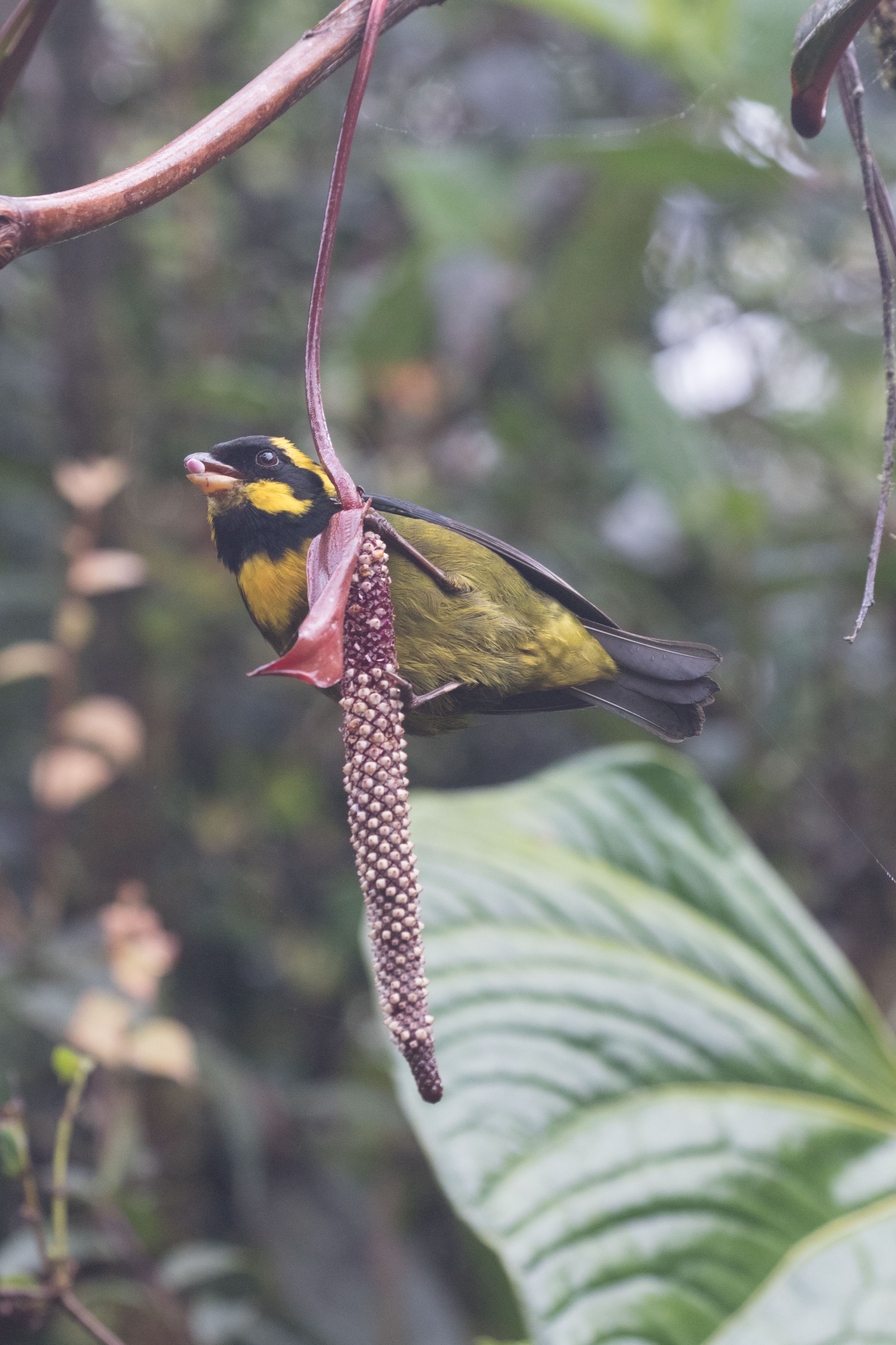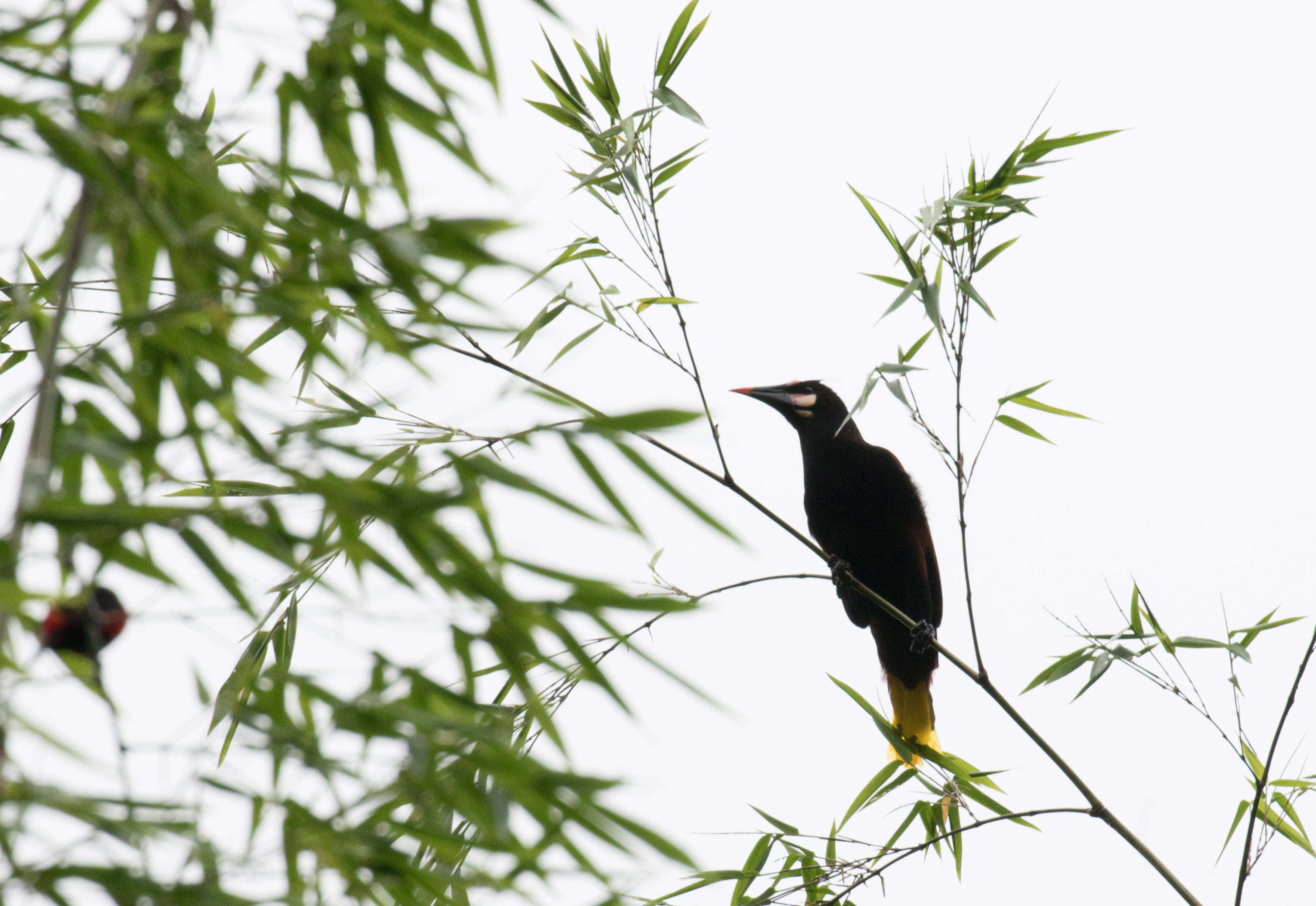 Our local guide met us at 0530 and we headed to the first spot about 20 minutes downhill from town. Just as we were arriving to the location, it began to rain. Luckily the spot for the oropendola is only about a five minute walk along the river and the spot is at a local restaurant/bar area along the river. We spent the morning sitting under the conveniently located shelters and watching for our target birds. The locals were thrilled with our attendance, as apparently we were the first “tourists” to visit and they were very interested in the local wildlife. The one guy had a camera and showed us a number of pictures of the oropendolas as well as other birds he had seen on the property (including Baudo Guan). While waiting for the rain to stop, a few small flocks moved along the hillside with the best bird being Spot-crowned Barbet. Finally at around 0830, our guide spotted a Baudo Oropendola which came flying by and distantly landed on the hillside. After a while it took off and we made our way to another view point at the one guy’s small house. By 0930 the rain stopped and the birds became more active. More Baudo Oropendolas began to appear and a few moved much closer allowing much better looks than the first had given us. Also a distant chachalaca perched up on a snag which turned out to be a Grey-headed Chachalaca. After enjoying the oropendolas for a while, we decided to leave and head to another spot which is supposed to have good access to forest.