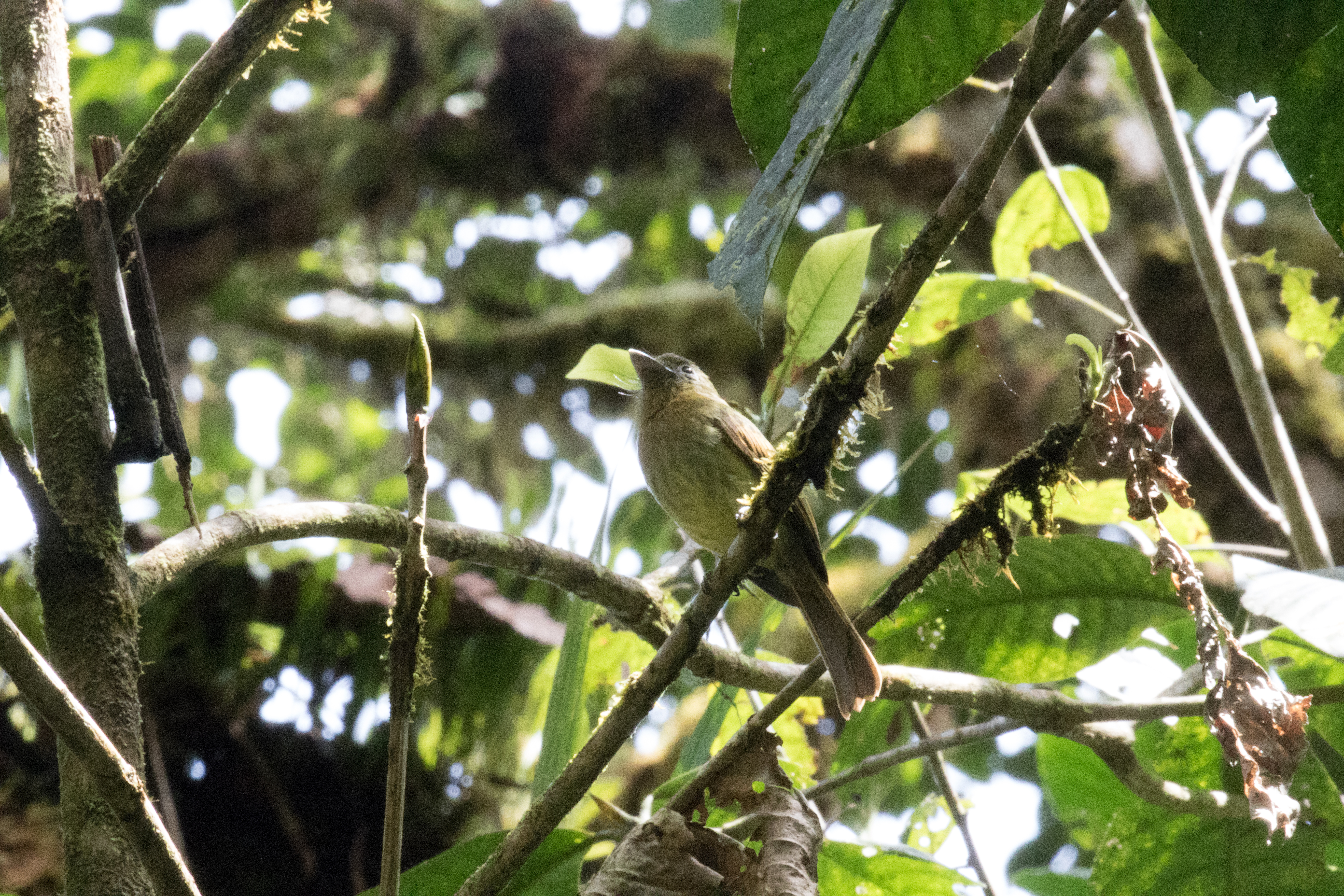 At 0430 Stephan and I started to walk up the road. The plan was to make it to the best area for the antvireo by dawn and concentrate our efforts on it. Our guide was supposed to meet us at 0700 when they brought breakfast. Fortunately the weather had improved overnight and the bird activity was great. It only took about 20 minutes before we were able to located a pair of Bicolored Antvireos and we were able to get some decent pictures as well as recordings of their song (both male and female) as well as three different call types. From here we continued birding down the road trying to find a Choco Vireo for Stephan, but it was not to be. Bird activity was still fairly slow, but we eventually found a few good flocks that included Fulvous-breasted Flatbill and Crested Ant-Tanager. Later on in the afternoon Stephan found a Scarlet-and-white Tanager while I was looking for Lanceolted Monket. Sadly I missed the tanager (and never found the monklet!). We had made plans to leave by 1500, so we had to quickly bird down the rest of the road and pack our gear before our ride arrived.