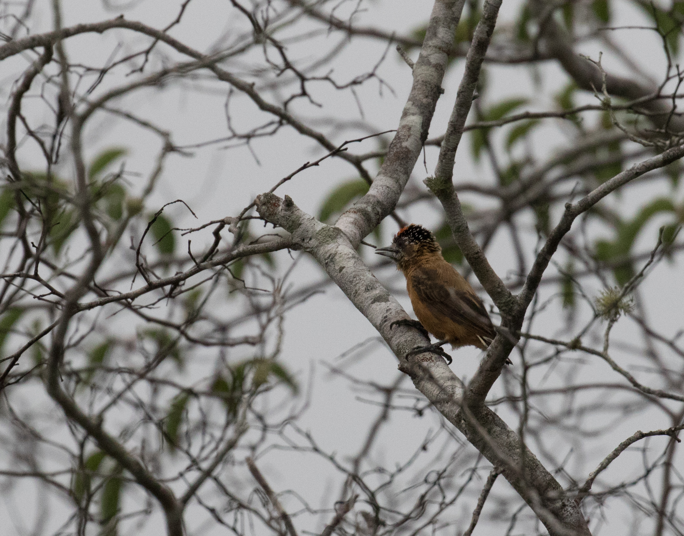 March 6th – We left Quixada at 3AM and made our way north to Serra de Baturite, an area well known to birders for many interesting species. Our only birding stop in this area was the Hotel de Remanso. The grounds of this hotel include a series of well-maintained trails and we proceeded to walk them for the morning. The rain from last night continued and the birding was fairly slow. In between rain sessions, wind, and fog, we picked up a few of our targets and had great views of Grey-breasted Parakeet (a very localized endemic), Yellow-chevroned Parakeet, Ceara Gnateater, Ceara Leaftosser, Northern Lesser Woodcreeper, Buff-breasted Tody-Tyrant, and Gould’s Toucanet . We had originally started the trail on the road outside of the gated hotel, but after walking the 3 mile loop, ended up on the hotel property. It was still raining and we didn’t see anyone around so we let ourselves out of the gate and still managed to call the day a success. We opted to get on the road and begin driving to our next destination.