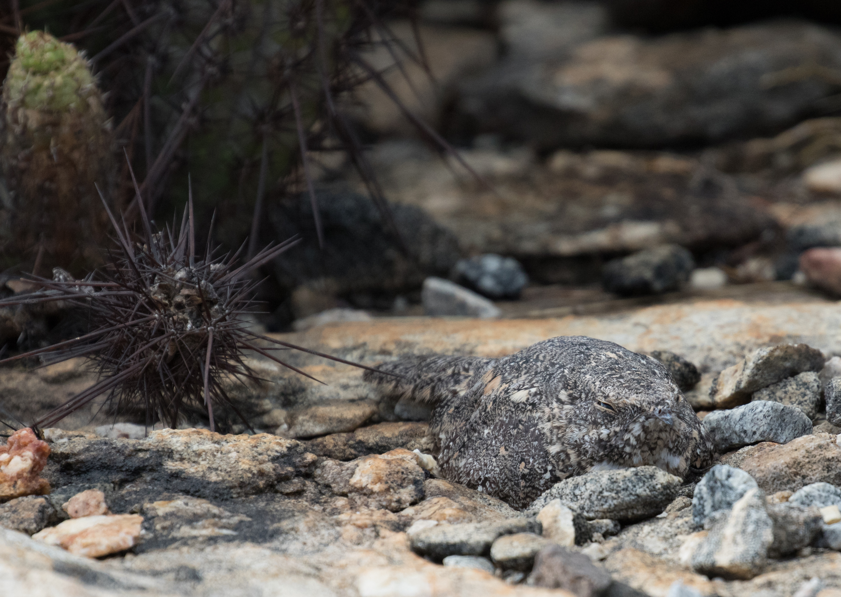 We finally made it to the town of Quixada, passing some of the most amazing rock formations we have ever seen! Unfortunately we never got a decent picture to share of these spectacular mountains! Our destination in this town was a very nice hotel built right on a cliff next to a slab of rock where Pygmy Nightjars roost during the day. As we arrived to Hotel Pedra dos Ventos, the nice girls working showed us where the birds usually sit. We quickly had great looks at 3 roosting Pygmy Nightjars, including one sitting on an egg! The birds themselves are camouflaged perfectly so that you wouldn’t even know they were there. The small egg looked exactly like a pebble, making it equally as camouflaged as its disguised parent. These adorable night birds were awesome to see so well in the daytime, but with dusk approaching quickly we wanted to move around the hotel grounds to search once again for White-browed Guans which we had missed the day before. But with Ross’s ant-bitten leg swelling to double the size, we contemplated going to the hospital instead. Although it looked awful, it did look like a normal immune response so instead of spending the night in an ER, we kept a close eye on it and instead spent the evening staked out next to a lake on the hotel’s property that White-browed Guan are known to drink from. Once again, we failed to see a single guan. The abundance of water in the area meant that the birds that usually come to one or two watering holes, had more than enough water to drink from and weren’t coming to the usual locations. In fact, as we sat at the lake it began to rain so we decided to cut our loss and head back to the hotel to eat dinner. Turns out two birders from the UK were touring with Ciro Albano, the top birding guide in Brazil and we joined them on the terrace for dinner at the hotel’s restaurant, eating food, talking with others, and watching the nightjars wake up from their sleep and begin catching insects in the night. As we sat outside on the covered patio, the light rain turned into a torrential downpour and Ciro informed us that this area of Brazil had been in an extreme drought and they hadn’t seen rain in this region for FIVE YEARS! We spent that night at the hotel for simplicity’s sake and Ross finally had a good night of sleep.
