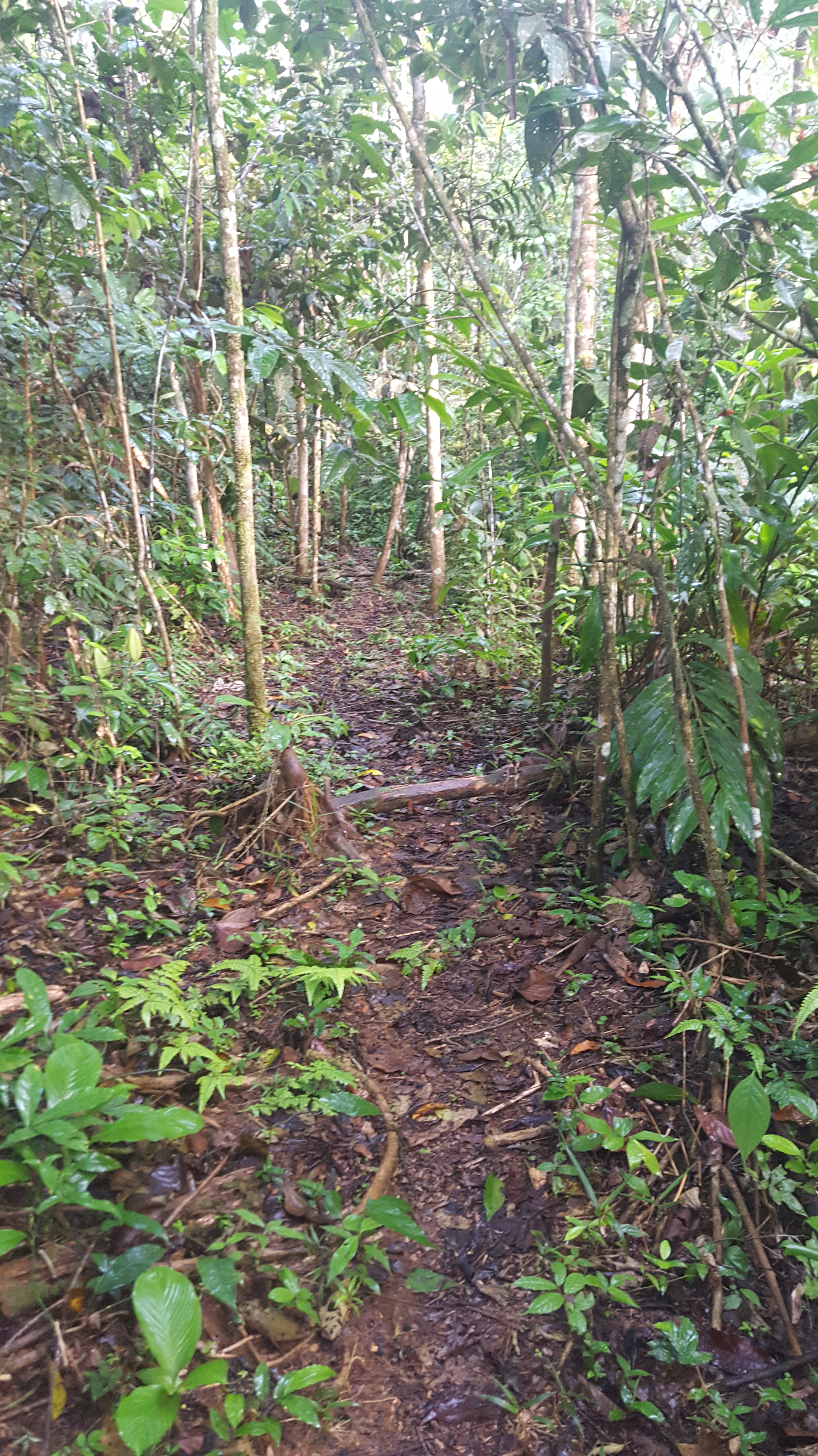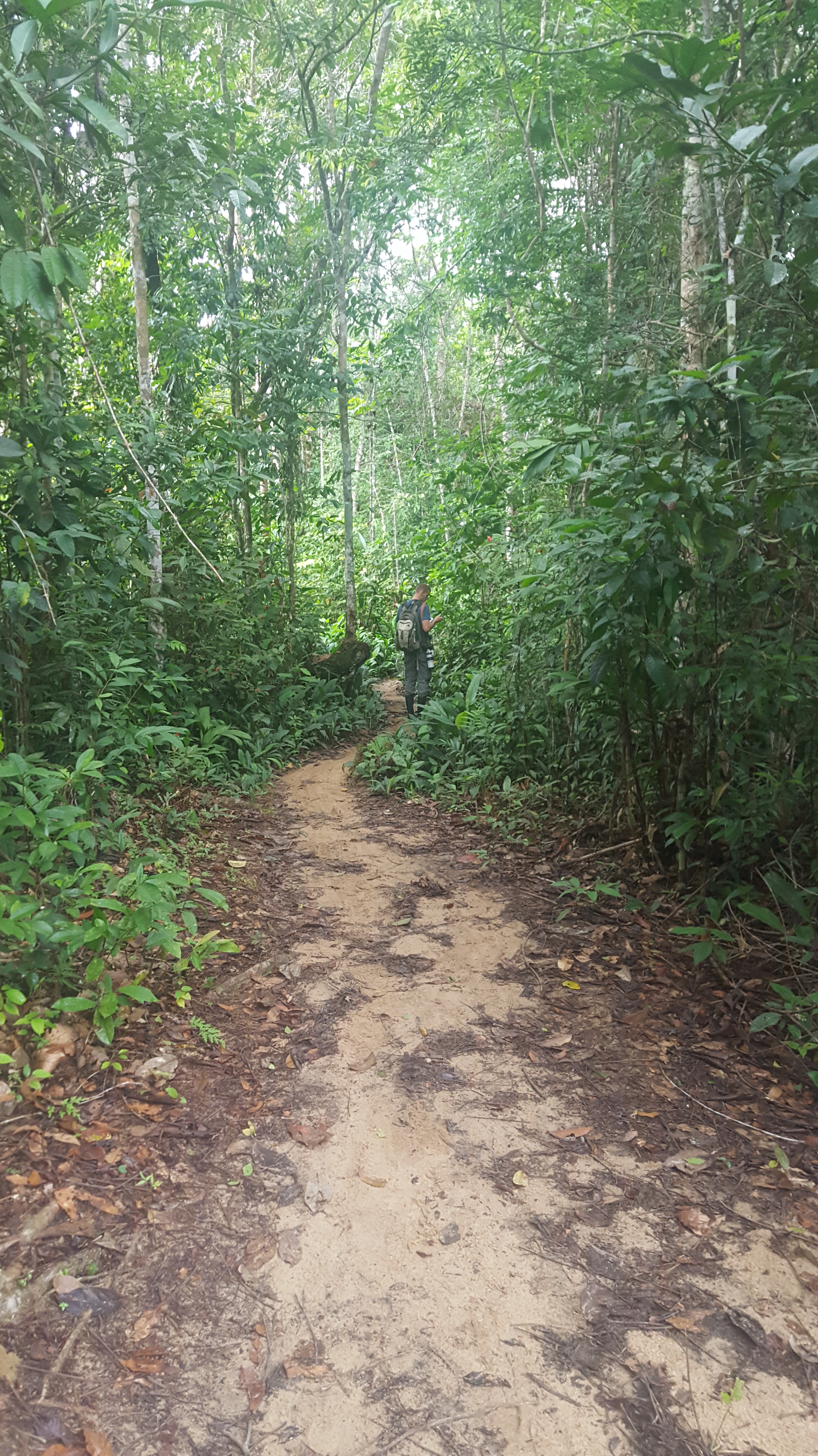 We continued along the white trail remarking that walking this trail was very easy, being that it was a flat and sandy trail and we didn’t have to focus on where we were putting our feet which meant we could focus our gaze to the sky. The trail weaved through the white sand before we finally came to an open area full of grass, we looked extensively but found no White-naped Seedeaters (a bird that has all but disappeared from Mitu), before weaving through some secondary growth. This secondary growth habitat was supposed to be good for Black Bushbird, but we didn’t see any on our walk through or back. Eventually we made our way into terra firme, aka land that never floods when the Amazonian rivers reach their high point. We continued walking, made several stream crossings requiring traversing fallen trees as if they were balance beams, and eventually stopped around 11, ate lunch and turned around. We had several ant swarms during the morning and picked up a few new trip birds including White-cheeked Antbird and White-plumed Antbird, but not many lifers. Needless to say, by the end of the day we were all exhausted. Overall we tallied 114 birds for the day bringing the trip list up to around 170.