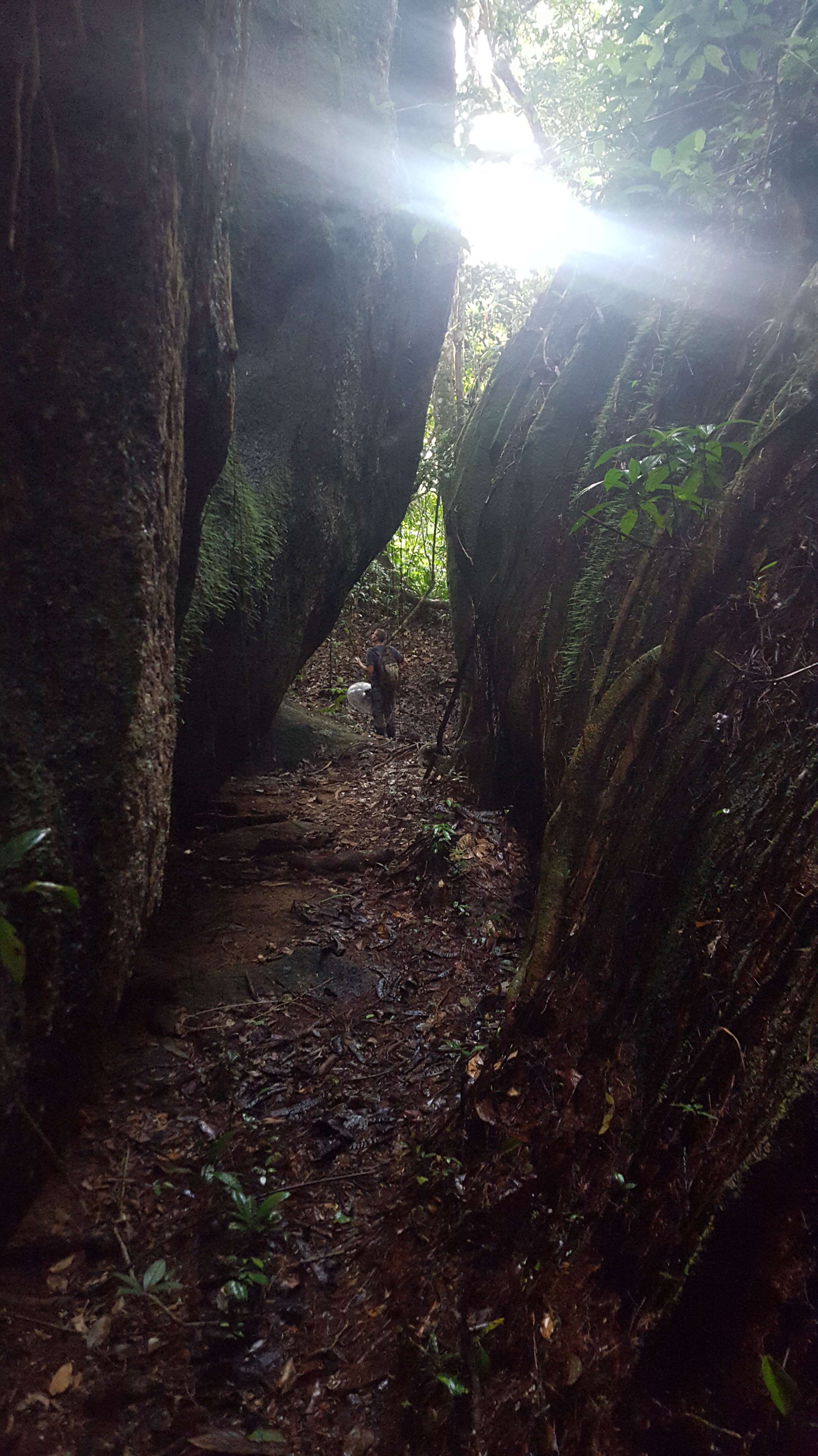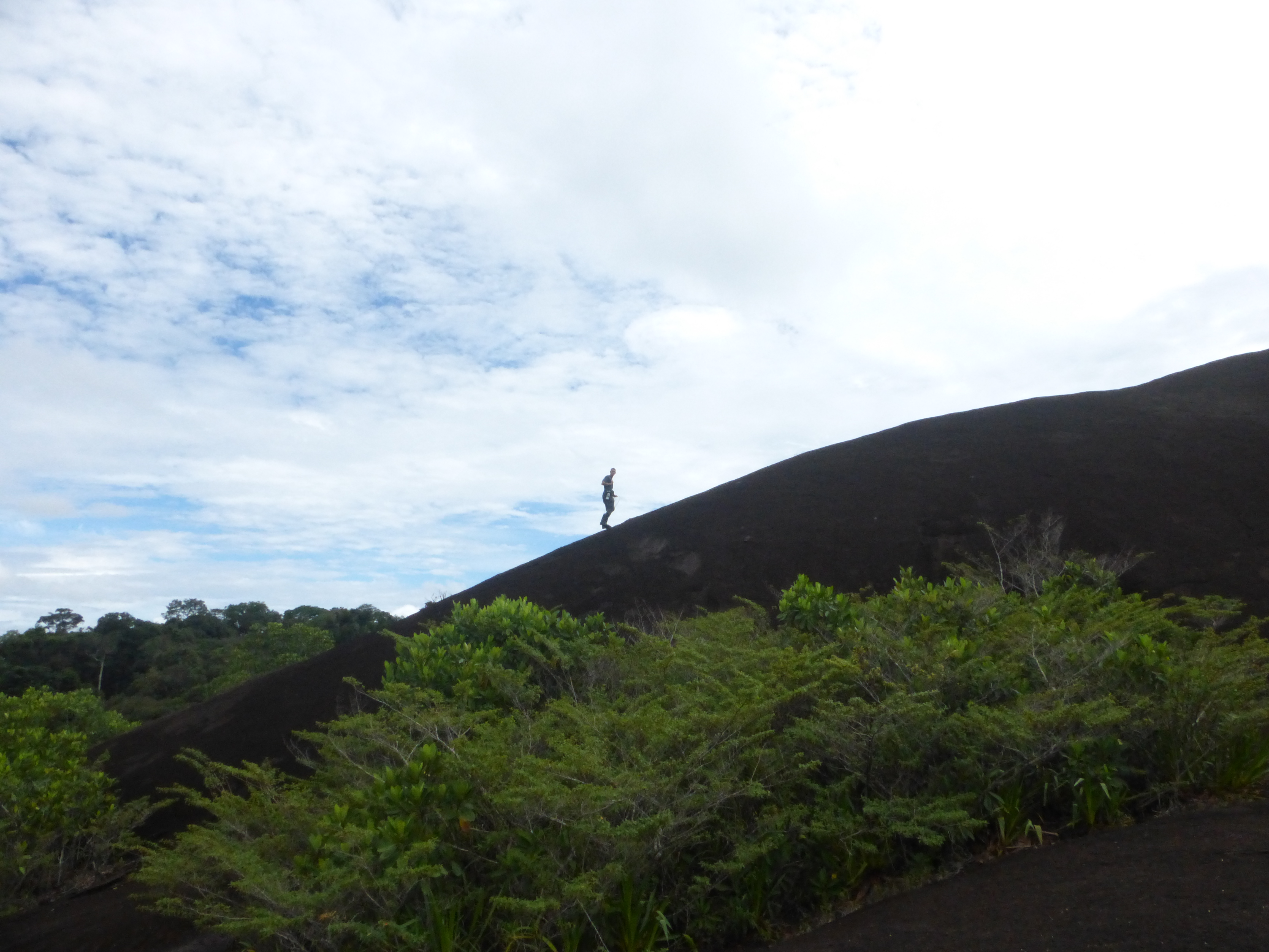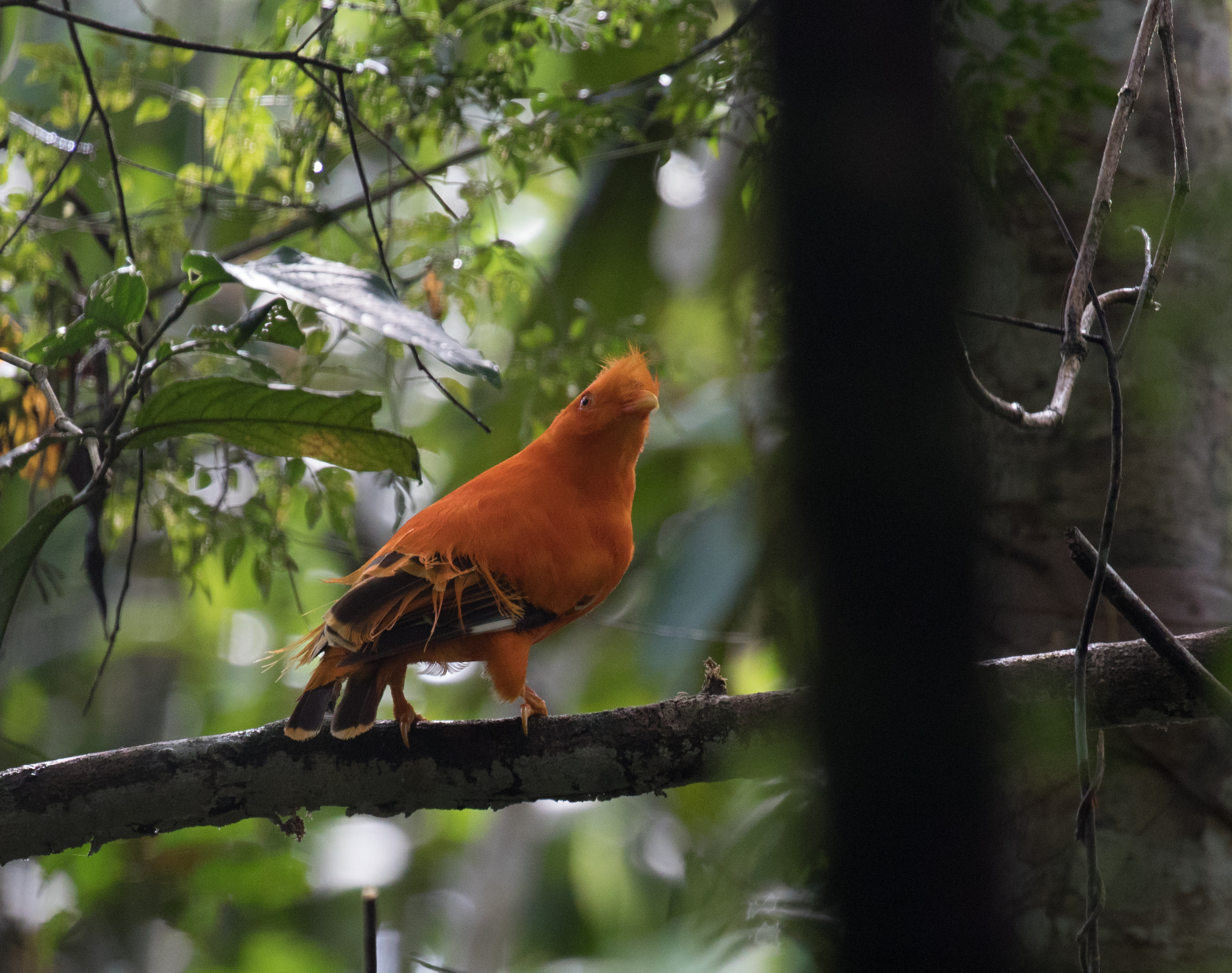 The following day, May 10th, we arranged for Nacho to pick us up outside of our hotel at 4:30AM and made our way to Ceima Cachivera, a known site for Guianan Cock-of-the-Rock at a lek. It was sprinkling when we arrived but the rain was light and didn’t prevent us from going out. Soon it stopped and we started along a different trail looking for the lek site. Either Nacho didn’t know the site or the birds weren’t around, the latter being what we presumed to be the case, as the two sites he said they were at were empty with not even a nest to be seen along the rocks. The only Guianan Cock-of-the-Rock that we saw for the day was a nice male who was flushed when Ross went into the forest to record a calling Western Striped Manakin. The stunning orange bird perched in the open allowing for great views and for Ross to get a few photos and recordings before he made his way off deeper into the jungle. This is a bird birders and non-birders alike could appreciate with the most vibrant orange plumage contrasted against the green surroundings. We continued along one of the trails looking for flocks as we made our way up to the first “Cerro” (hill) of the trip. It’s not often that you can stand on any kind of a peak in the Amazon and look out into the forest below but that’s where we found ourselves, standing on top of a large rock face looking out with green as far as the eye could see. We were a bit late in the day otherwise this would have been a great vantage point to scan for cotingas perched up on the trees. Ross and I hiked up to the very top and enjoyed the 360 degree views of the Amazon below. We did find a few birds including a Plumbeous Kite harassing an Ornate Hawk-Eagle before making our way back down. As always, returning is much faster but we did stop along the way when we ran into flocks. The afternoon was quite birdy and other highlights from the day included a large flock of birds containing White-fronted Nunbird, Grayish Mourner, Rufous-tailed Antwren, Olive-backed Foliage-gleaner, and Pink-throated Becard.