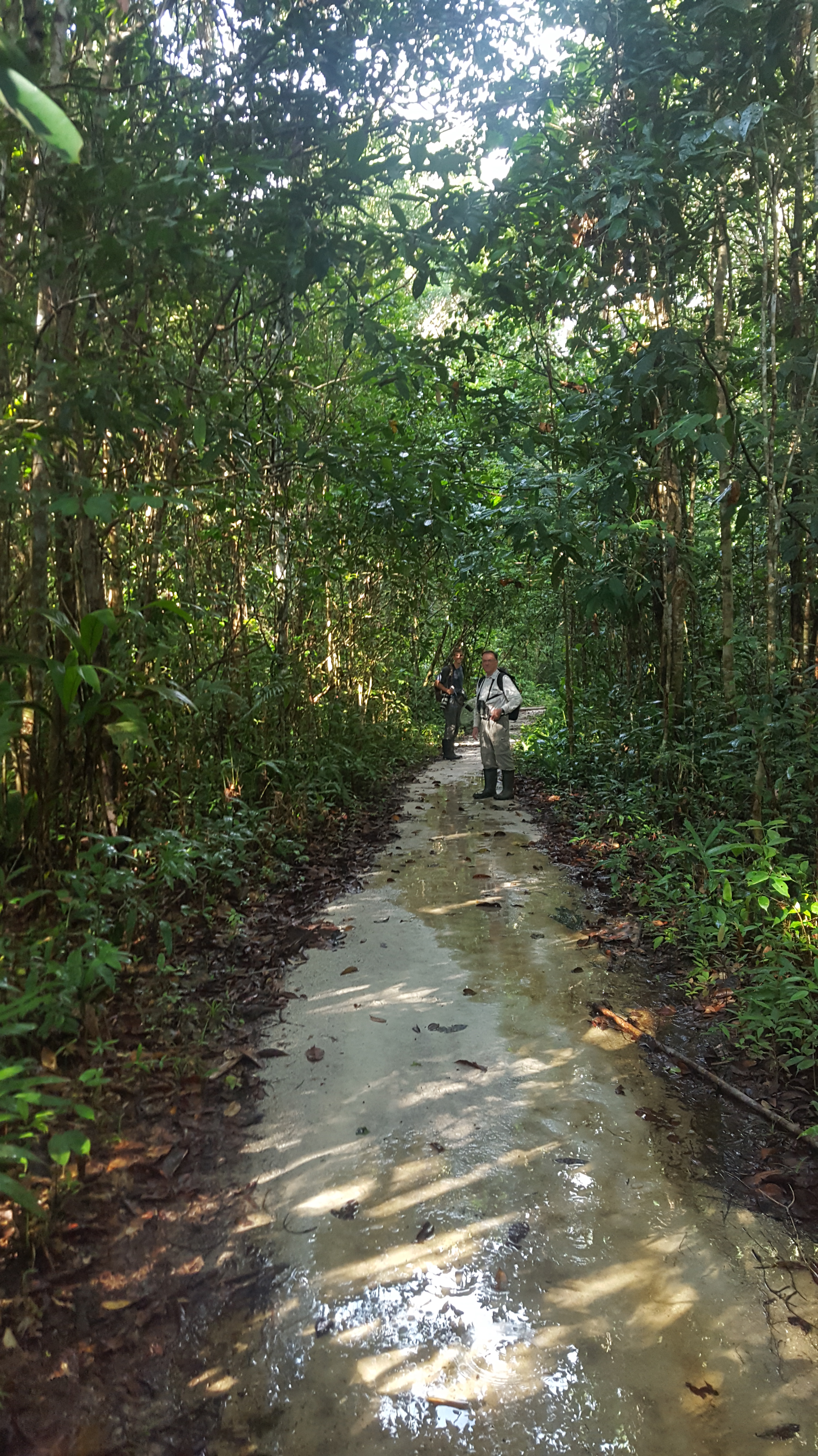 We arrived at 3pm to the bridge outside of Urania and had tracked down our first few targets in the form of Black-chinned Antbird, Amazonian Tyrannulet, and Cherrie’s Antwren. It was only a short day out but we didn’t mind as we needed to prepare for the long days that were to come. We walked the bridge and had several new birds, but the absolute highlight were views of a pair of one of the more difficult to see birds found in this region, Spotted Puffbird. At the same time we also had great views of a pair of Amazonian Unbrellabirds¸ a species we had surprisingly missed multiple times on previous visits to the Amazon. We went back to town, ate dinner and finished the night with a cold shower before bed with plans to spend all of the next day out in the field.