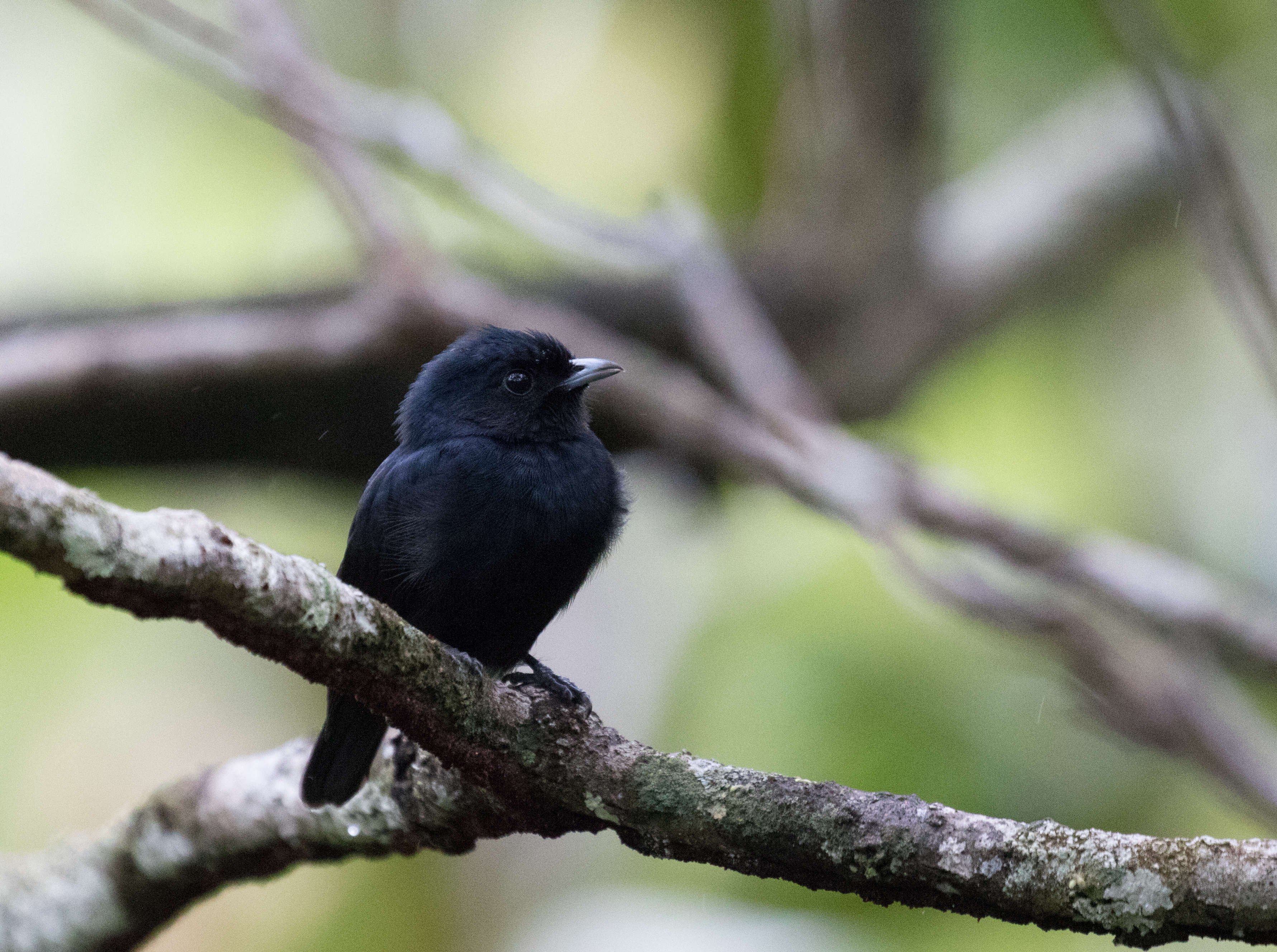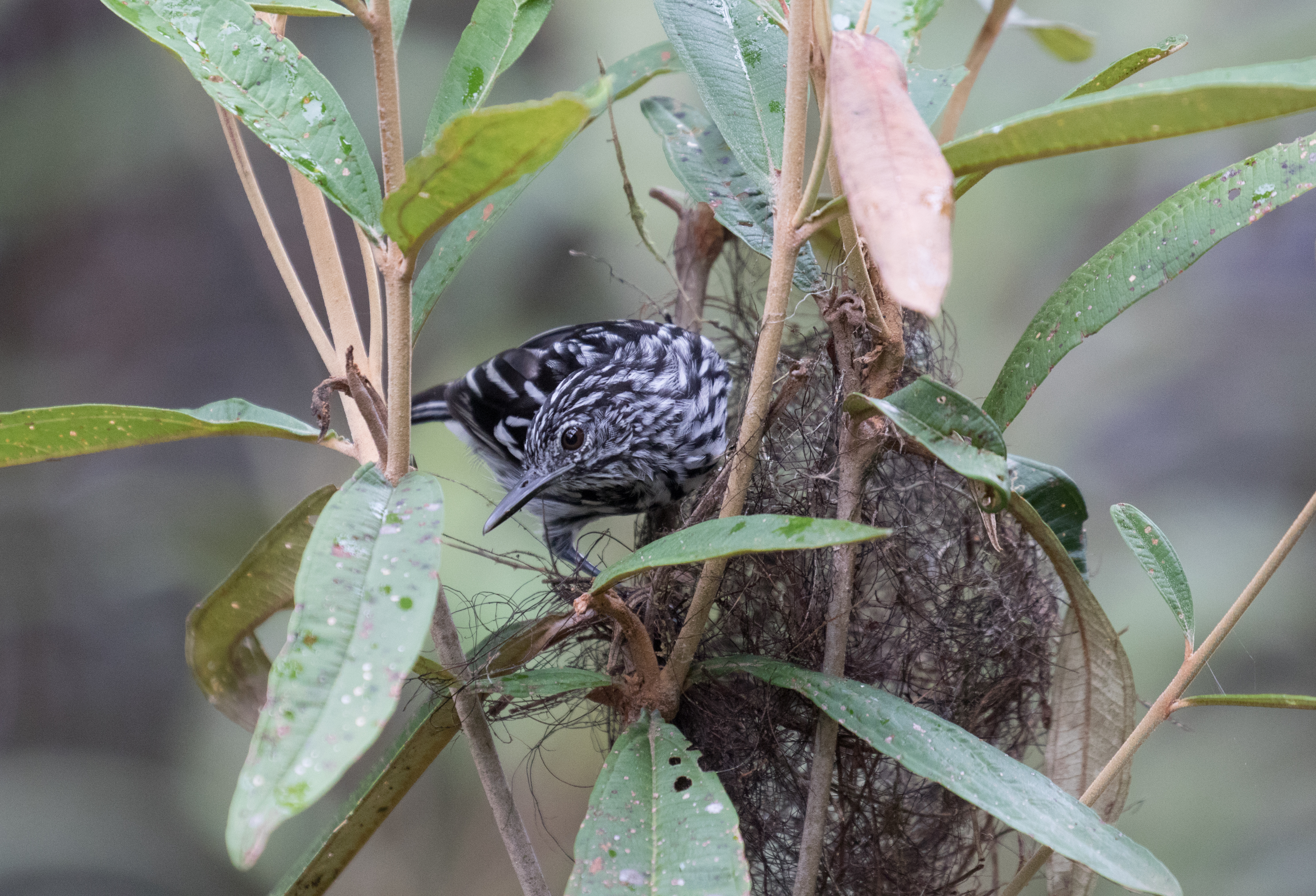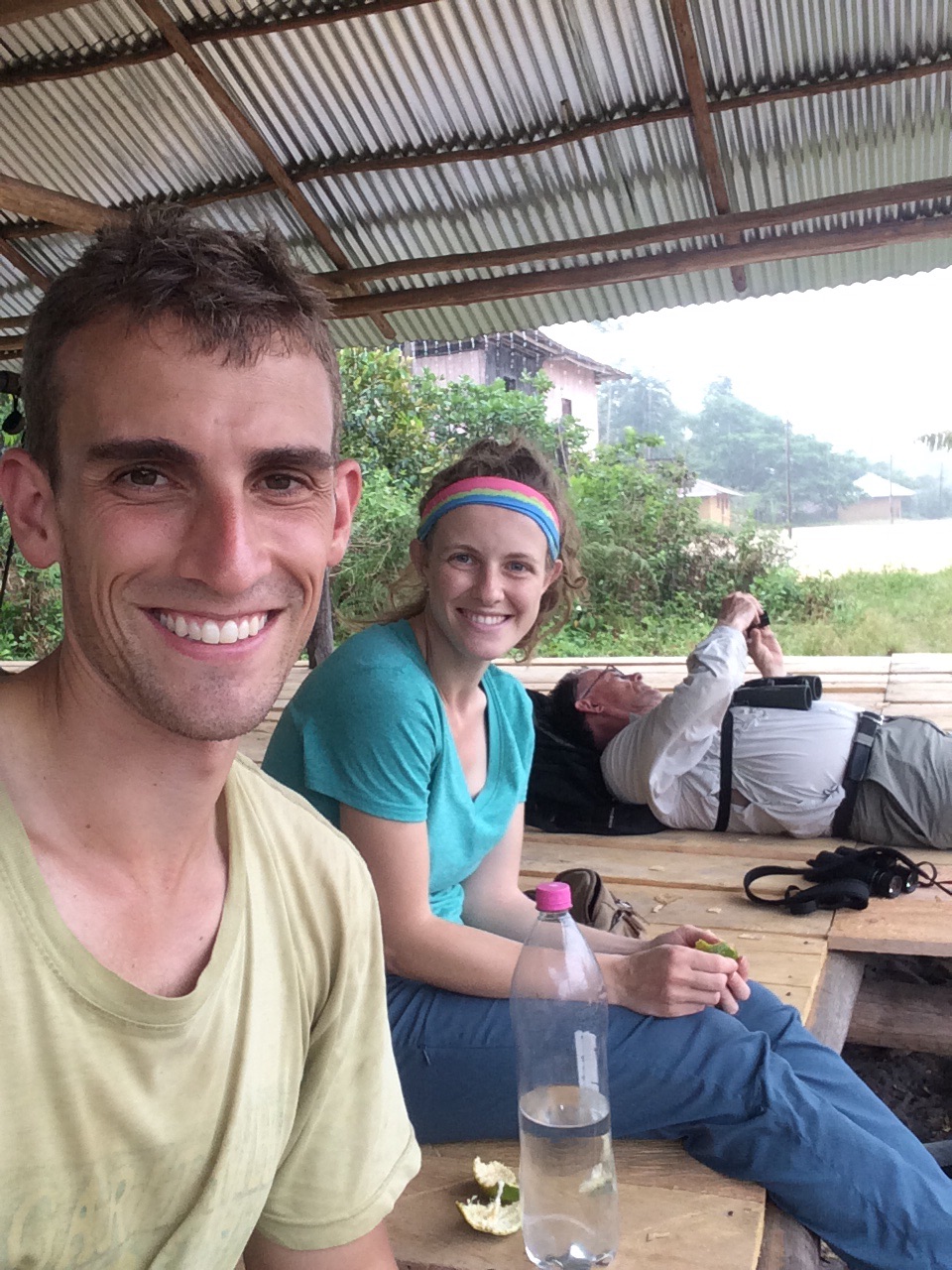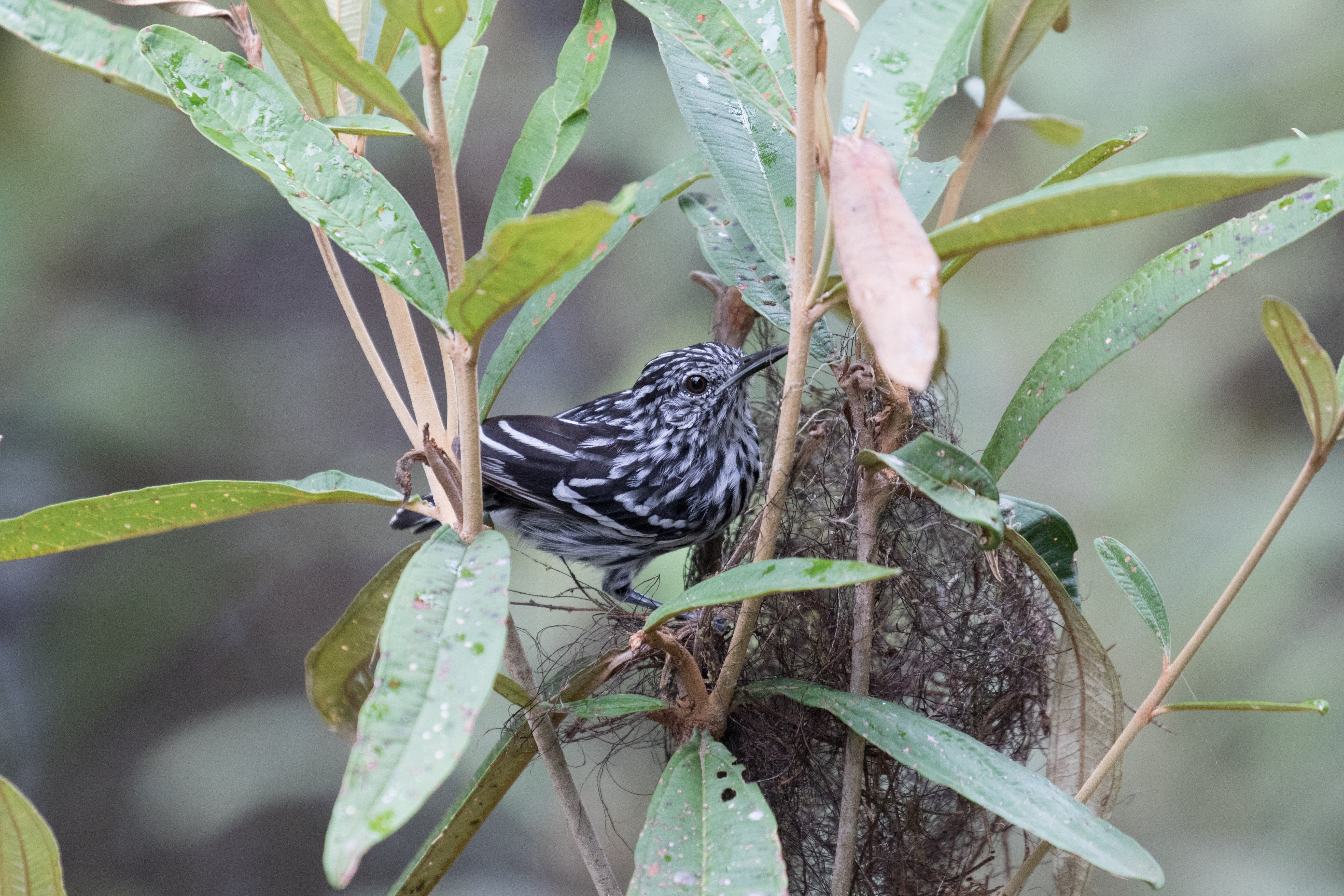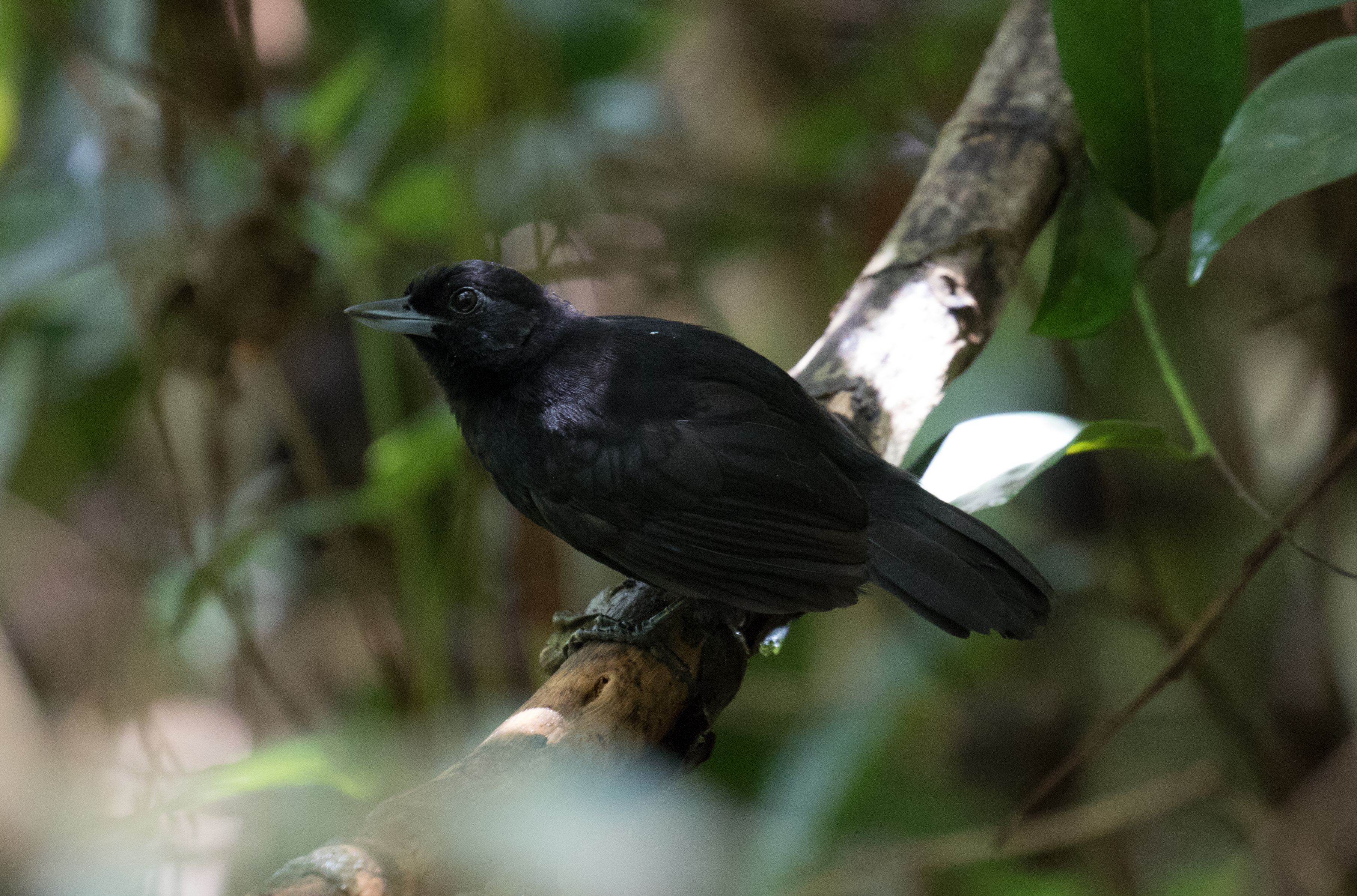 Afterwards is where the day got interesting. We thought we agreed to bird the trails but somewhere lost in translation we apparently agreed to visit a Cock-of-the-rock lek, only we didn’t realize that until we were bushwacking up a hillside and finally arrived at a cave system of sorts. It was some intense hiking that day and overall was essentially pointless as we were more focused on climbing through tangles than really appreciating what was around us. We didn’t hear much on this hour long trek but eventually we did end back up on a trail and what a reprieve it was to not have to crawl through tight spaces any longer! Just before we exited the forest we stumbled upon an antswarm and had views of White-cheeked Antbird and White-chinned Woodcreeper. As we were walking back out, we came to some secondary growth and Ross thought it might be a good spot to try for Black Bushbird. With one play of the song a pair of Black Bushbirds came in quickly to see what other bird dared to enter their territory. We had excellent looks of the all black male and rufous and black female, one species where the female looks more interesting than the male. We enjoyed our time with the bushbirds and thanked the local for his help and were on our way back out. We once again ran into a large flock on our walk out with the most interesting bird being a Curve-billed Scythebill that unfortunately I missed seeing. We spent a bit more time on the bridge but didn’t see the topaz again. Nacho asked that we leave the area by 2PM because he said he needed to get back to town to coordinate a boat because we told him we wanted to visit a place downriver. We headed home early and Ross and Jon took the opportunity to visit Urania while Nacho was out finding us a boat to take us down river, surely a task that isn’t too hard in a town with few roads!