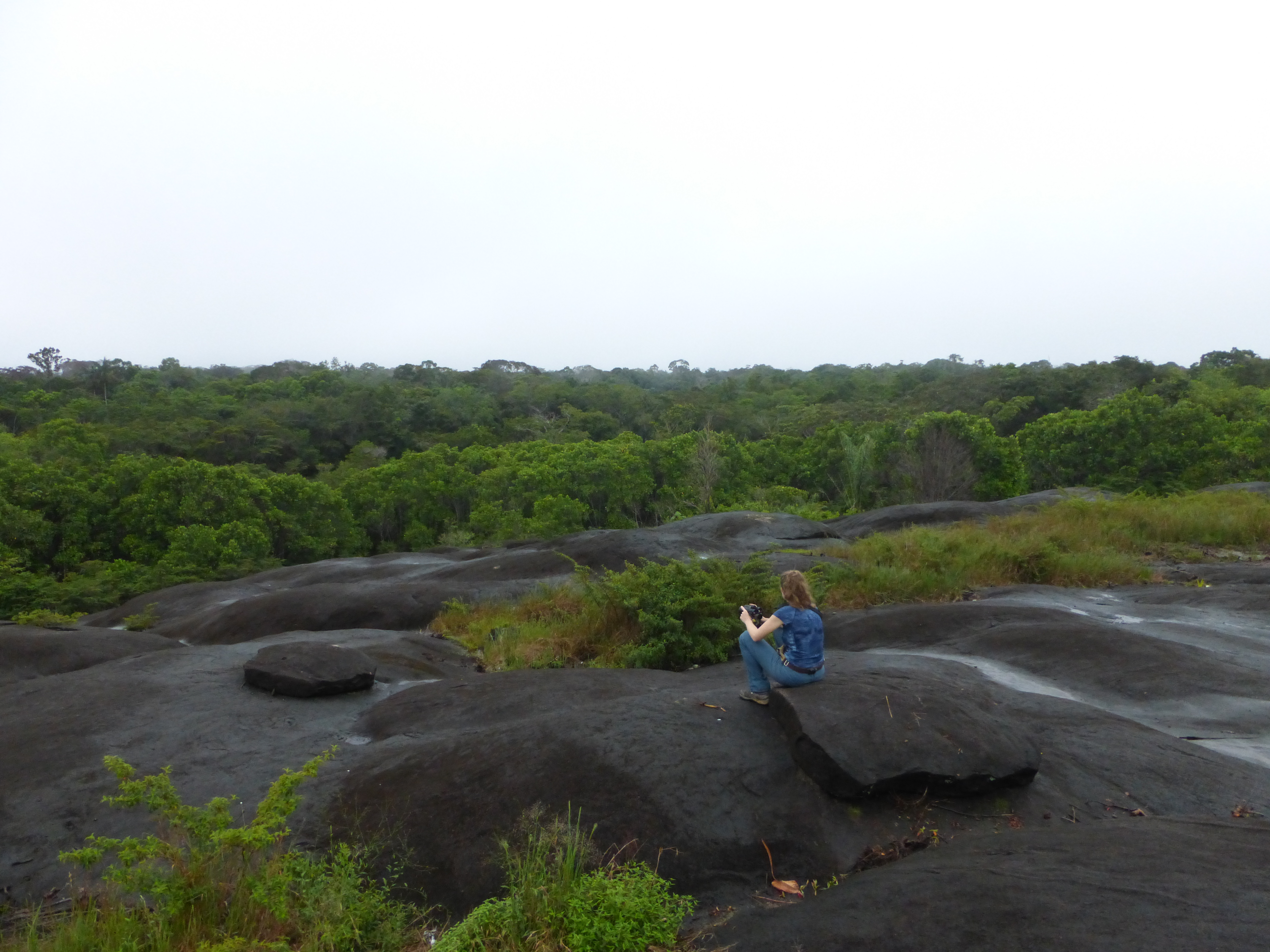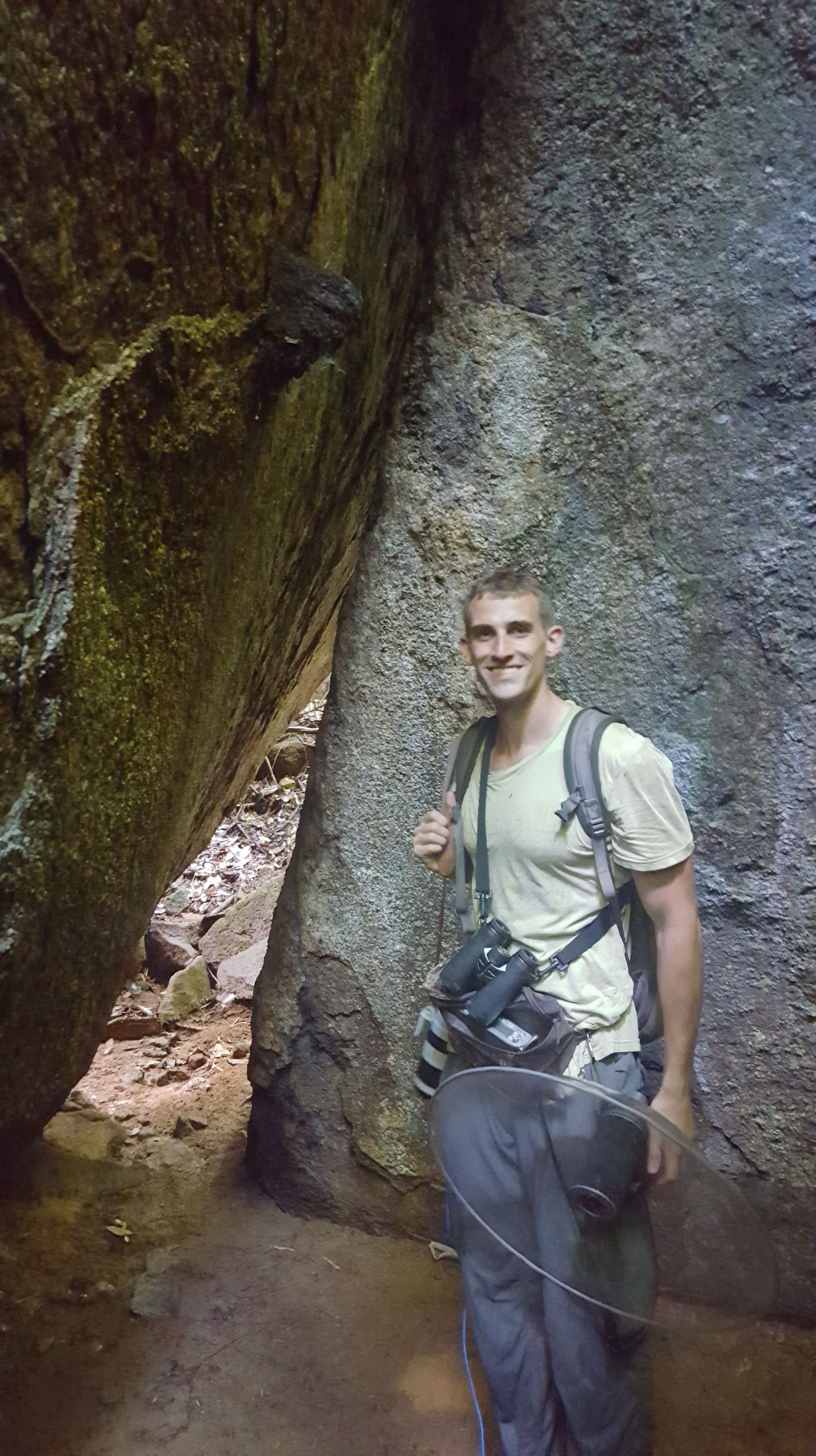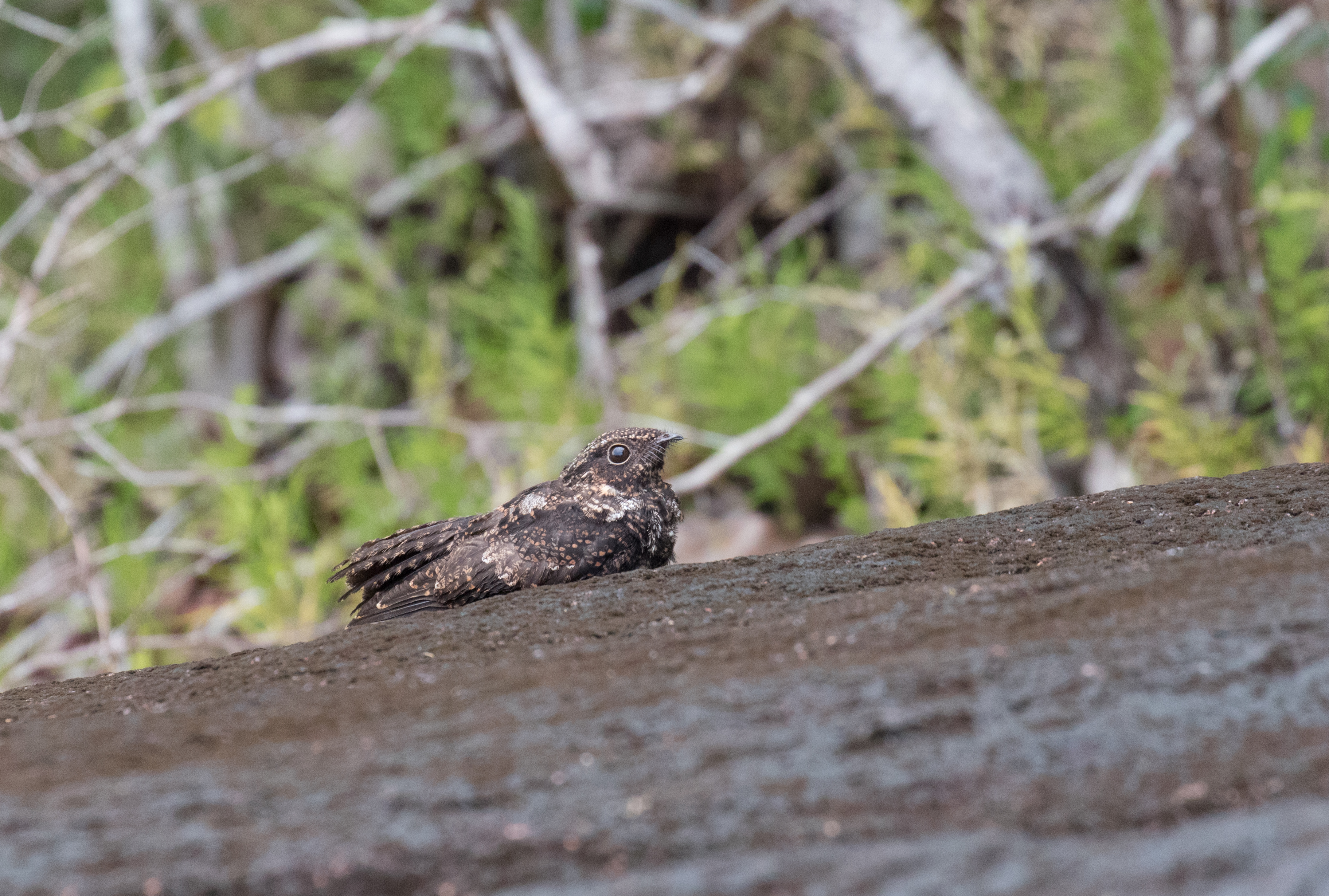 Monday May 15th was our last full day in Mitu and we had very few possible birds left. All three of us wanted to see Ivory-billed Aracari, but apart from that there wasn’t much more we needed. We started the morning at the covered bridge at Urania. It was raining slightly and still very dark so we didn’t see much from the bridge aside from a Green Kingfisher. We opted to continue walking forward and soon came to another covered bridge. Although it isn’t a known spot, it looked like as good a place as any to find Blackish-Gray Antshrike so Ross played tape and we soon heard it calling. Ross walked down in to the brush as far as he could and played tape once more. As soon as the tape finished the Blackish-Gray Antshrike landed less than 5 feet in front of him. It was nice to see that one and we kept walking until we once again came to one of those unique rock mountain hillsides. We walked out onto the surface and from here scanned the jungled horizon looking for anything of interest that would be perched up, particularly an aracari. We soon had several Many-banded Aracaris and great looks at more White-throated Toucans. It didn’t take long before we started to wonder if we would even get a trip bird for the day, let alone a lifer, not something you can say often when in the Amazon. Ross decided to take a walk in the forest while Jon and I spent some more time on the rockface. While he was gone, Ross got great looks at a Little Tinamou and also saw Great Jacamar, Western Striped Manakin, and a large flock of Azure-naped Jays. Upon his return we continued to scan for canopy birds and soon Ross found a nice male Spangled Cotinga sitting high in a tree. Soon afterwards Ross heard the dueting of a pair of Brown-banded Puffbirds and we got great looks at they perched high on a snag. After seven days of trying hard to find this species, we saw our first one yesterday and now we had another pair without even trying! Go figure! By this time it was late morning and things slowed down so we decided to head back out. Just as we were about to leave, we flushed a pair of Blackish Nightjars and were able to get great looks as they briefly perched on the open rocks.