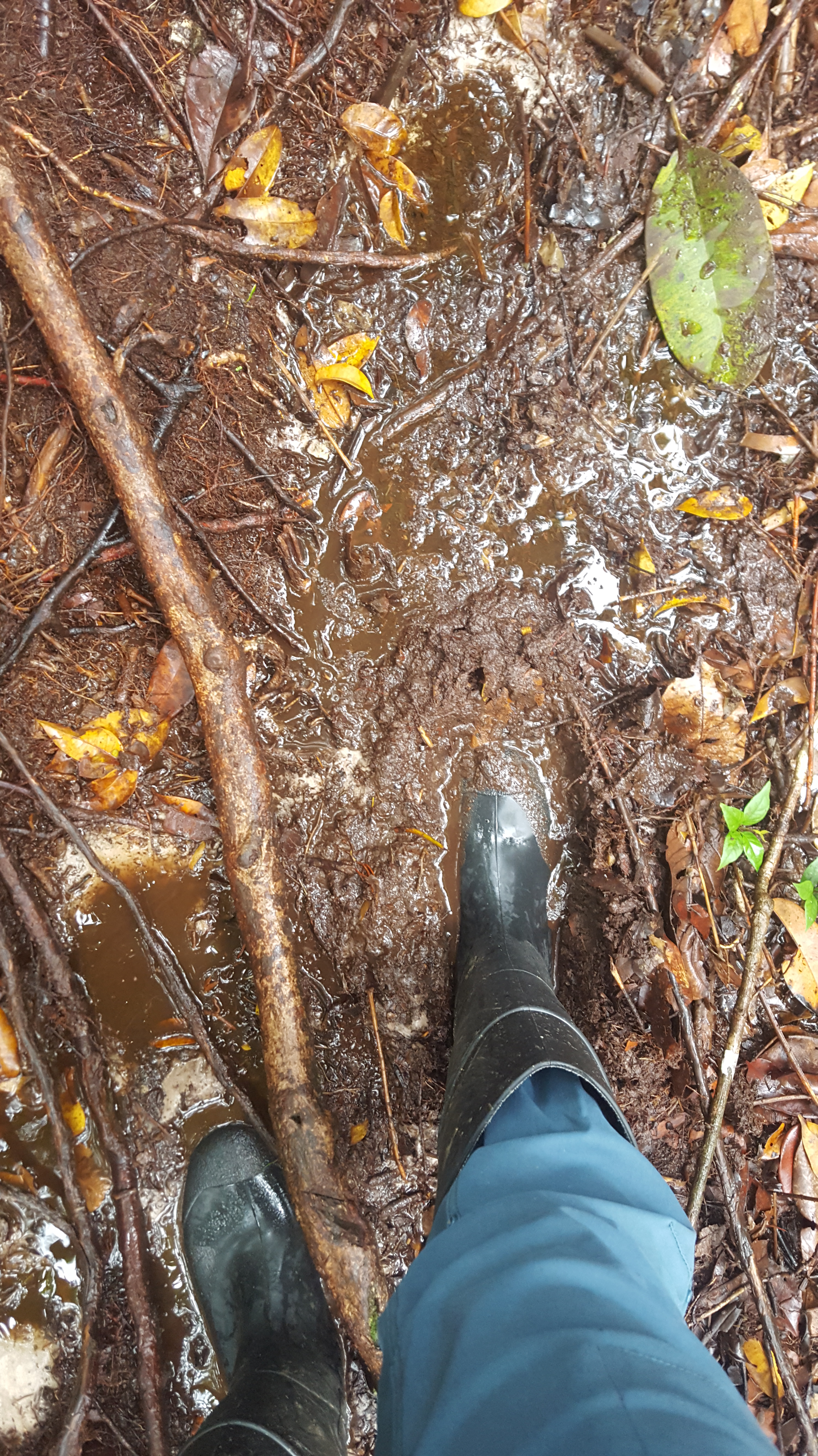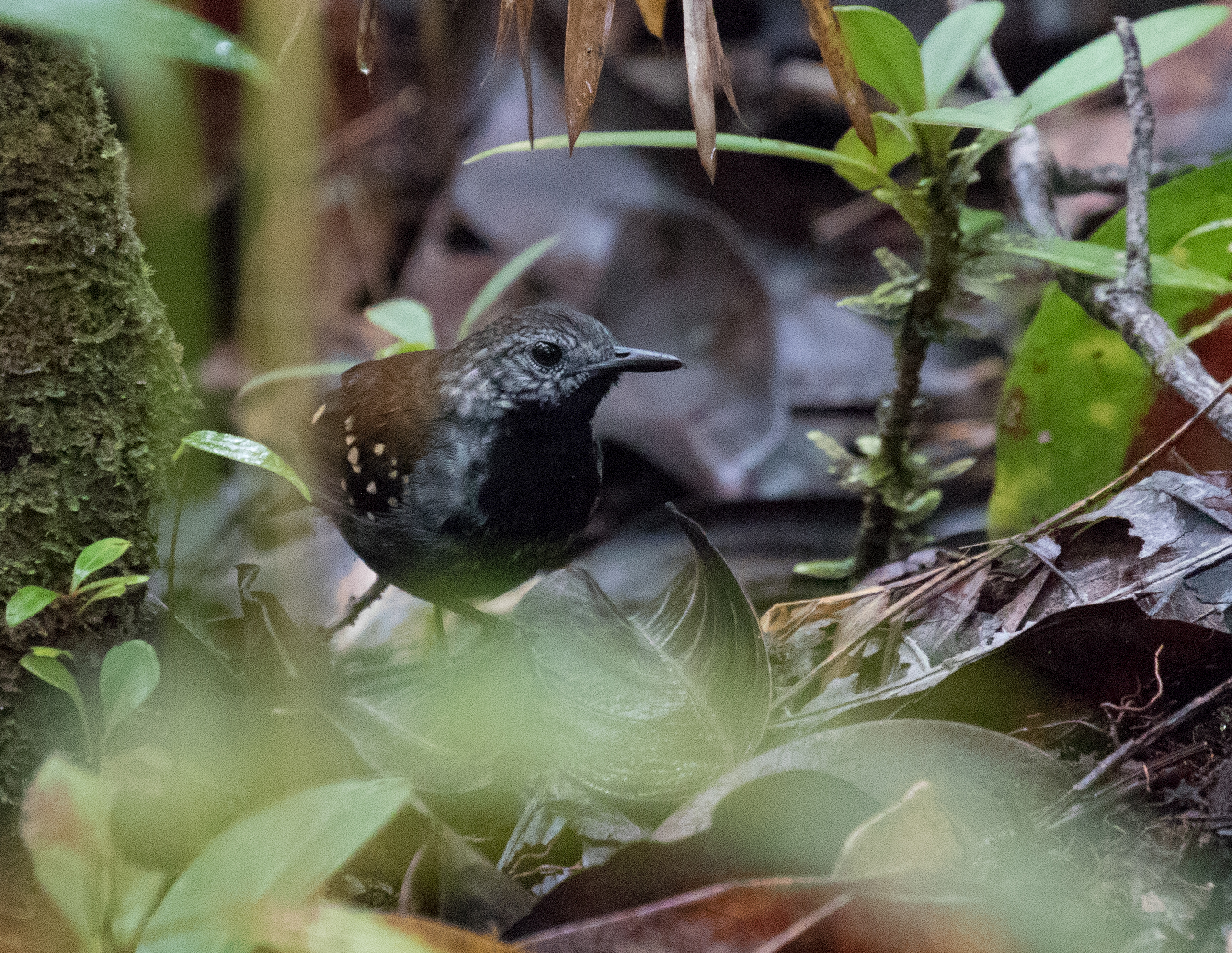 The habitat where we were looked promising so we asked Nacho if there were any trails nearby. He didn’t know of any as he doesn’t usually come here but there was a trail through the jungle leading to a nearby house. We decided that we would just bird this instead of paying the fee to enter Pueblo Nuevo and see what we could find. Before I mention our day, let me first mention that before we came to Colombia we were warned to bring rubber boots as the trails were going to be really muddy. So for the last four days that we were here, we wore our rubber boots to all of the trails we visited and never truly needed them as the trails were in decent shape for regular hiking boots. Wanting to finally give our sore feet a rest from wearing those terribly uncomfortable rubber boots, Ross and I donned our hikers knowing that the trail we were supposedly visiting for the day was perfectly fine as we were there only 2 days before. Obviously plans had evolved and we were no longer going to the trail we had thought. Ross and I both joked that this was going to be the muddiest trail we’ve been on yet… and we were right. The trail was muddy but definitely manageable and we were happy to be walking through nice forest. Not more than 10 minutes on this trail and we had already caught up with a Fulvous-throated Antwren in a mixed antbird flock, another one of our biggest targets in the bag.