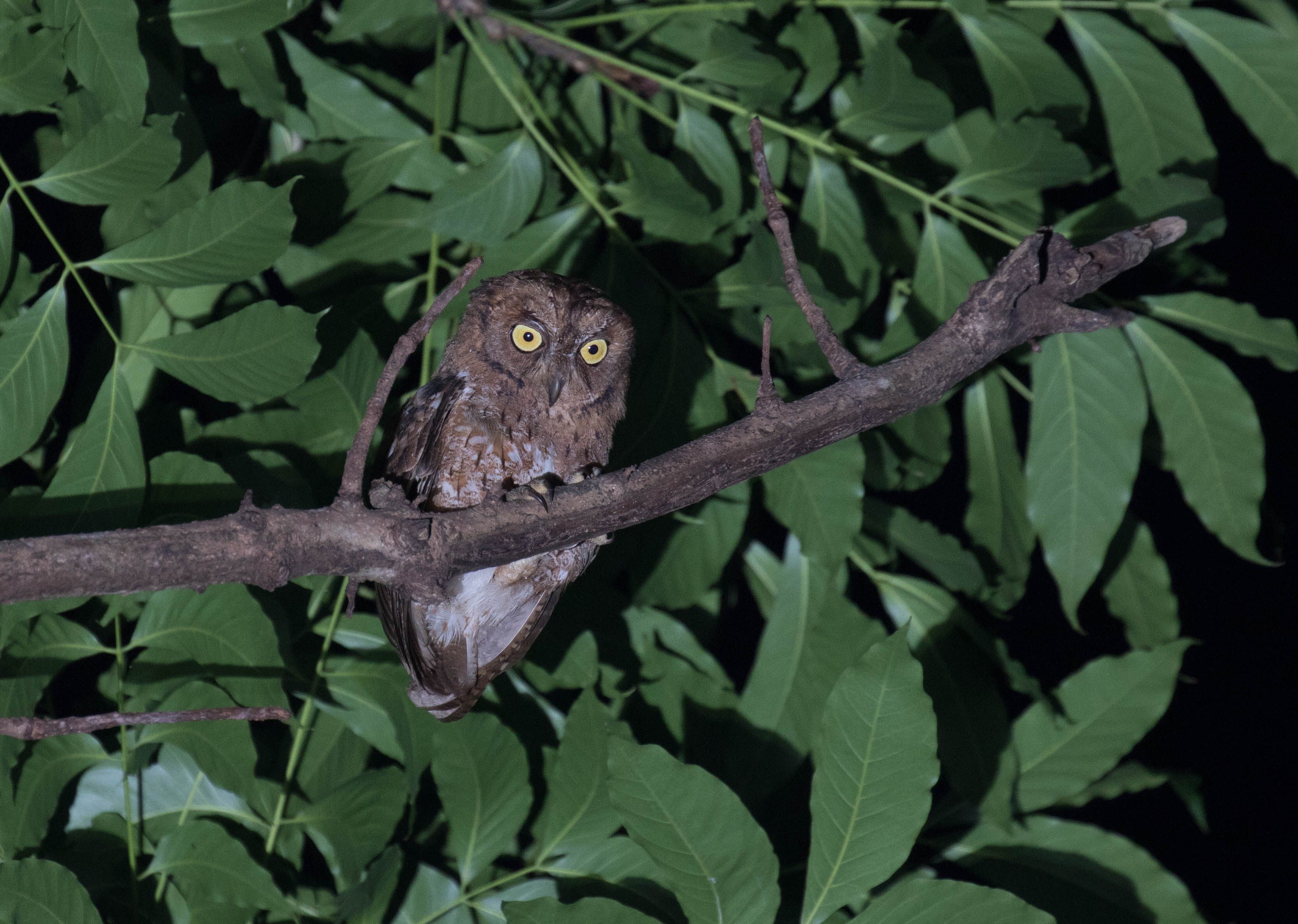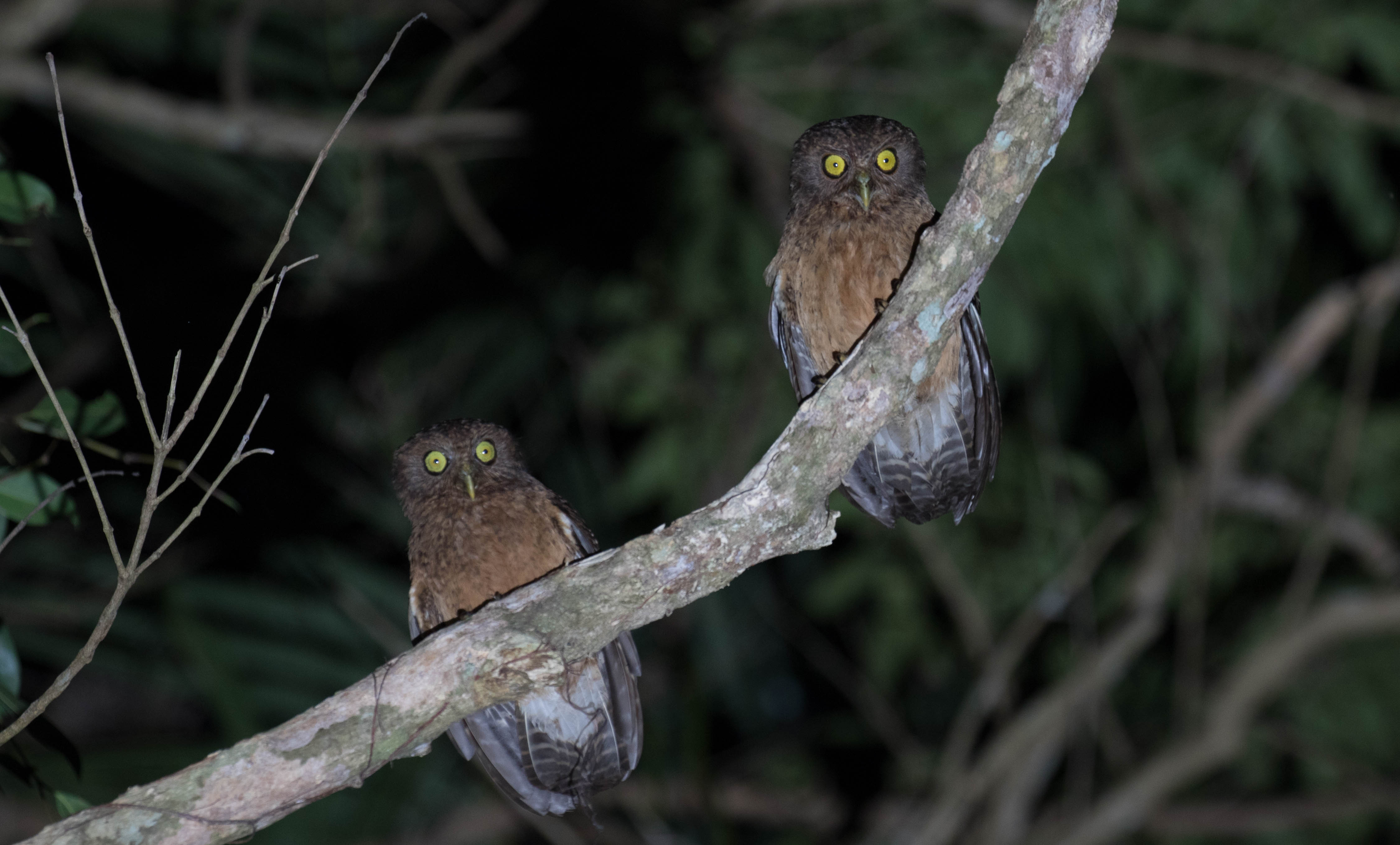 From the viewing platform of the petroglyphs, we had excellent views of Scale-feathered Malkoha and Brown-breasted Kingfisher while we were scanning the trees. After dark we began our search for the owl but got a bit worried when we couldn’t spotlight it right away. Since it is such a rare owl only often seen from this location we wanted to avoid the use of playback as much as possible. We scanned the trees for a bit but with no success we eventually decided to just play the sound and see what would happen. As soon as we played the tape, a massive Philippine Eagle-Owl flew in and landed in the tree right next to us! Seeing the gigantic talons on this creature was enough to prove how dominant this night hunter must be. We enjoyed our views, snagged a few photos and recordings and went on our way to our next spot, hoping that by driving in the night we could avoid some of that terrible traffic!