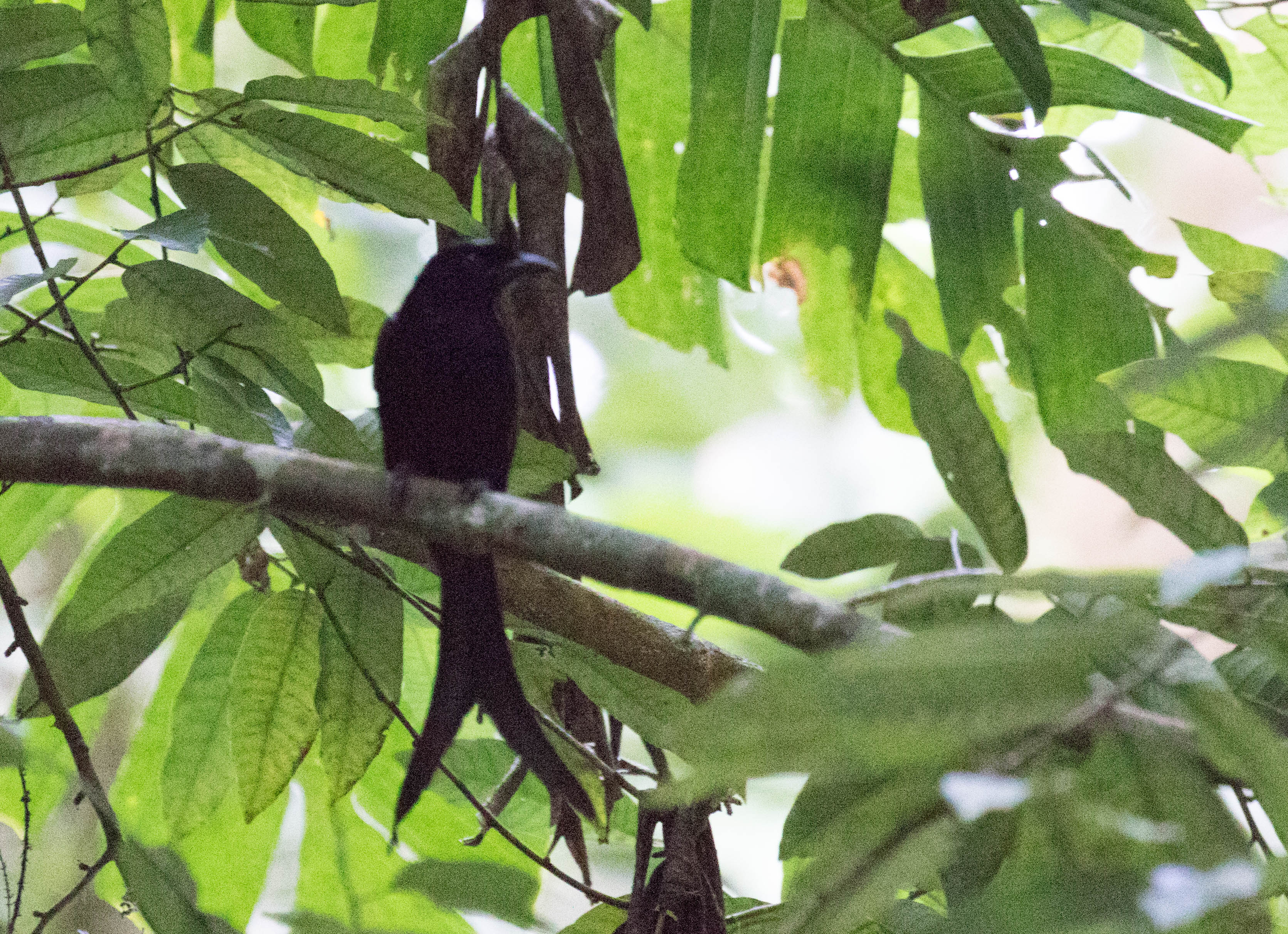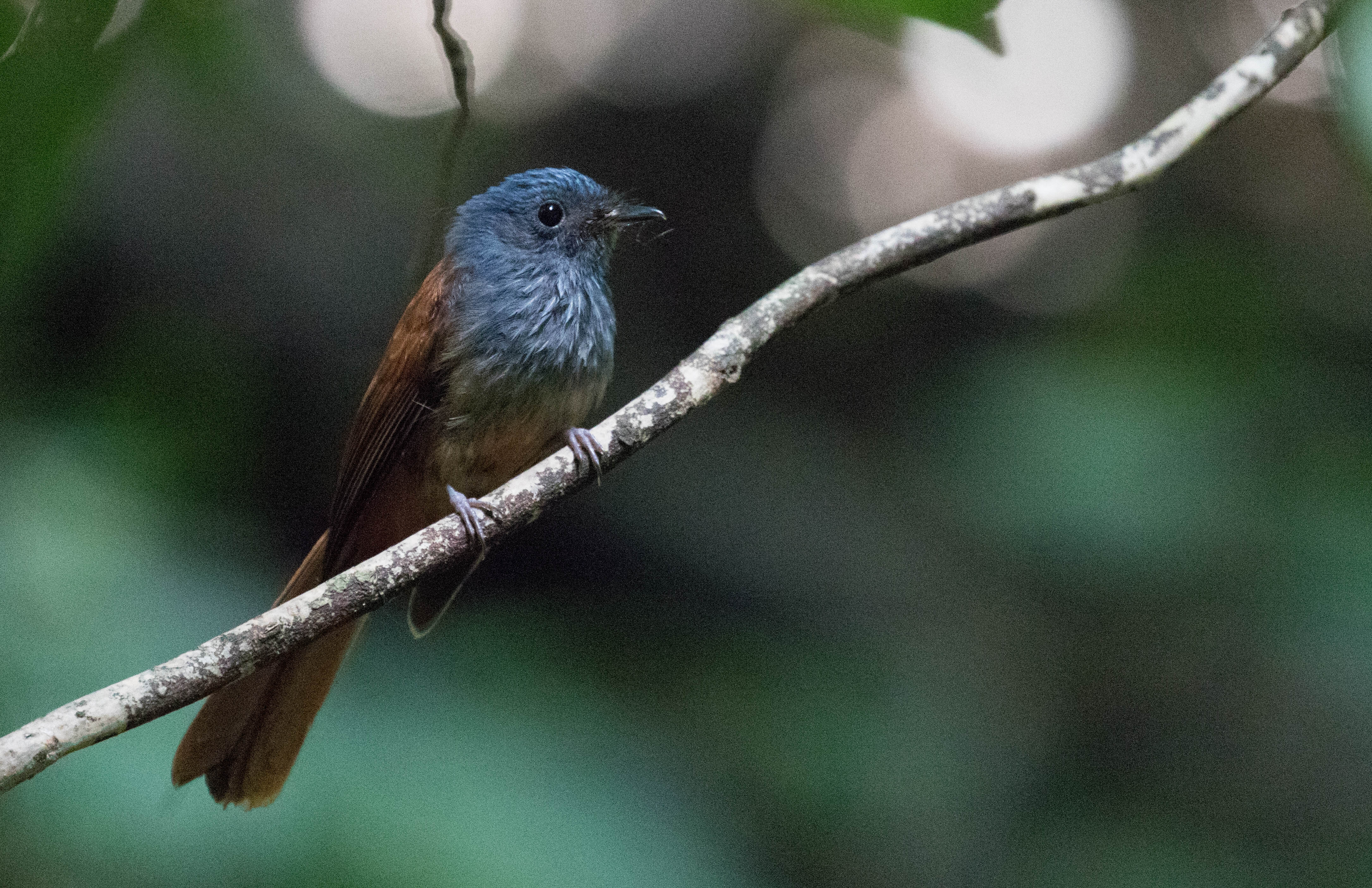 We heard several Dimorphic Kingfishers along the stream but as usual, seeing them was the tricky part as none were responding to tape. Rodell ended up flushing one from a perch but neither Ross nor I saw it, but we could hear the high pitched call as it flew away. Darn. Thankfully Rodell saw the perch it was on and we hoped it might come back to this perch so we hid in the woods nearby and waited. While waiting we had close views of a flock of Tablas Drongos, but with no views of the kingfisher we decided to walk up the stream a bit further and it was here that we saw our penultimate target, Tablas Fantail. With views of the kingfisher still to be had, we walked back to the perch and waited a bit longer. Luckily, the Dimorphic Dwarf-kingfisher flew in and landed on his preferred perch providing us with excellent views. Unfortunately Ross fogged up his camera and was unable to get a photo. We figured that if we waited here long enough the bird would eventually return. And he did. But Ross had gotten distracted while waiting by the sounds of the drongos and fantails so he was somewhere up the other branch of the stream recording other birds when the kingfisher returned. Lucky for you, dear readers, I managed this amazing photo using my binoculars and cell phone camera pressed up to each other. Digiscoping at its finest. Ha!
