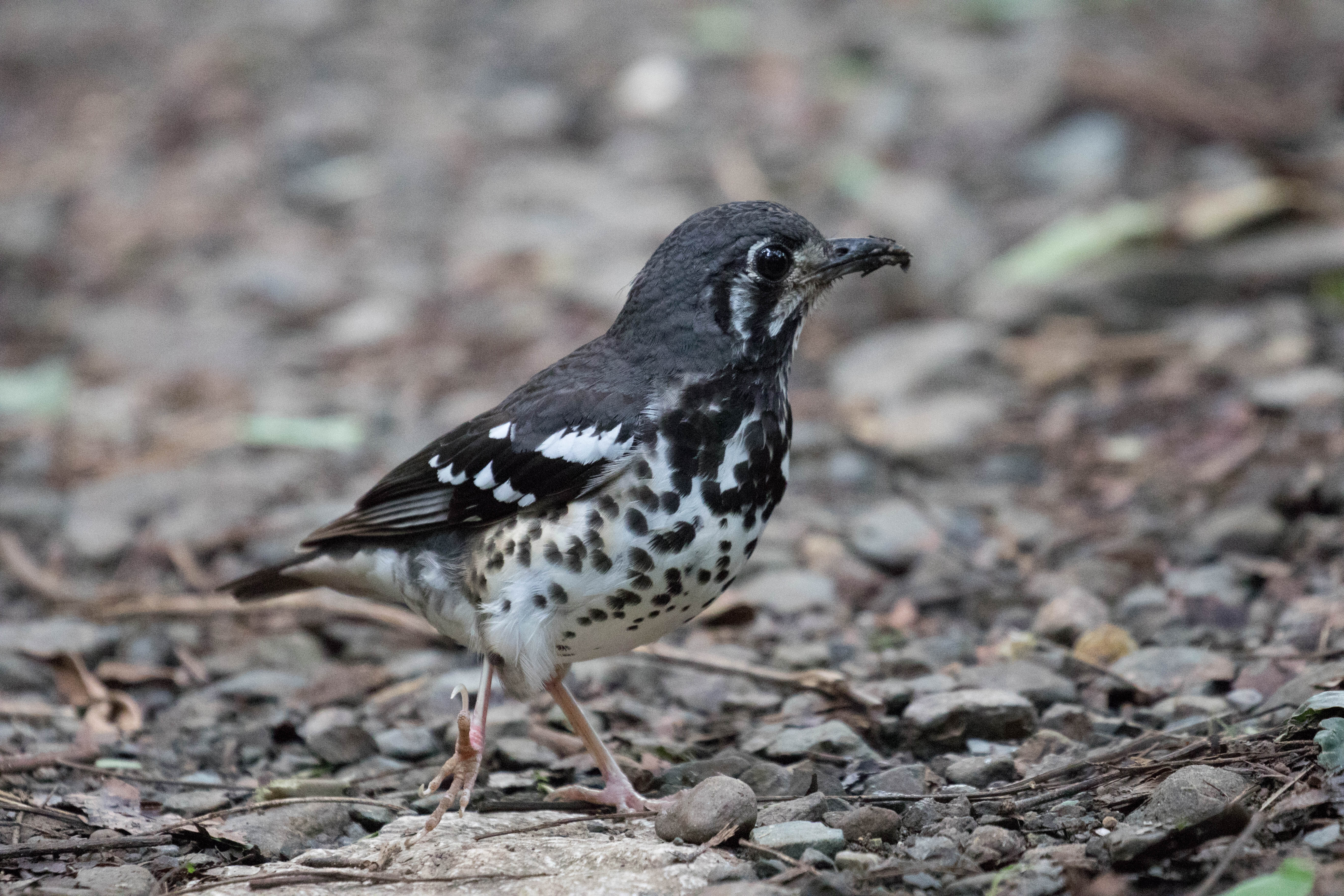 Eventually we arrived at our next destination, La Mesa Eco Park, an eco-park on the outskirts of town and some of the only forest to be found in metro Manila. We found a hotel that night just outside of the eco-park and joked that it was the dirtiest hotel room we had ever slept in. We didn’t want to come in contact with the sheets so we just slept in our sleeping bags that night and opted to avoid using the bathroom as much as possible. It was THAT bad. But at least it was super cheap right? Ha! From where we stayed, we were only about a mile to our birding location and we arrived at the gates just as they were being opened (5AM.) We wanted to get on the trail early so we could see Ashy Thrush on the trails before the trails were inundated with people wanting to run and workout in the area. We soon found a pair of Ashy Thrushes, another bird that outside of this known location is impossible to get. The thrushes were seen collecting worms in the trail and we soon discovered that they were building a nest nearby. Ross managed to get some very interesting recordings of 4 different call types as the two birds built their nest!