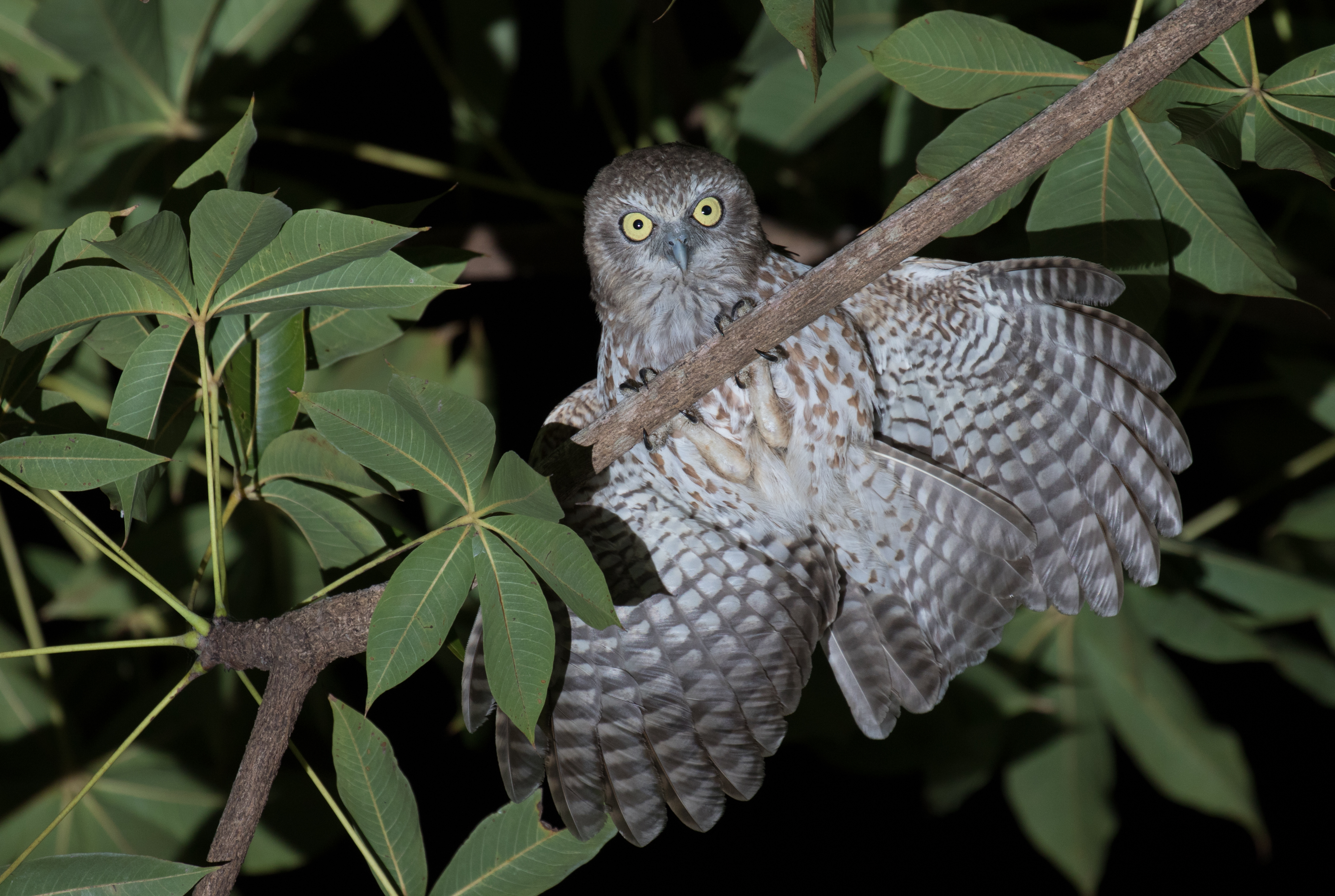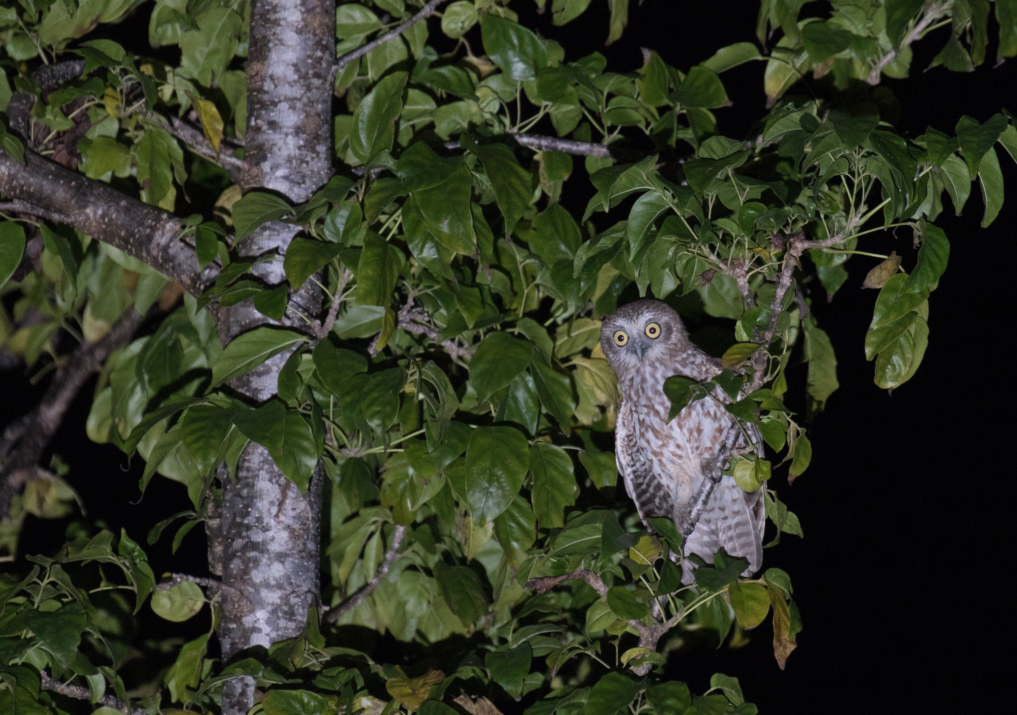 At dark, Ren took us to search for our #1 target, “Rote” Southern Boobook. This particular owl was re-discovered in 2010 and has already been proposed to be elevated to species status. We arrived at the edge of a clearing and heard some frogs calling nearby. We played the sound of the owl and waited. Thankfully looking up and seeing the brightly colored sky with thousands of white lights was a beautiful distraction as we stood there not hearing anything besides the frogs. Looking at the southern hemisphere’s pool of stars in an area with almost no light pollution is indescribable and I was immediately thankful that this owl brought me to stand in this clearing with an incredible view of the purple-hued Milkyway. After about 15 minutes and asking Ren if we should move, I think Ross and I both came to the same epiphany at the same time – the frogs weren’t frogs, it was the “Rote” Southern Boobook! The bird had been doing a different call than the recording we had, a very low soft almost continuous croaking compared to the typically two note croak (it really sounded like a group of frogs!). We walked about 100m closer to the sound and played tape one more time and soon the owl was sitting right above our heads. This particular fellow was so cooperative that Ross managed one of his best owl photos ever! A 5-star photo and a great recording were more than enough to satisfy and we went back to the homestay to eat and get some sleep with only three target birds left to see. Unfortunately, dinner was nothing more than a plate of plain, white rice with a single egg on top. Who needs food when there’s good birds?