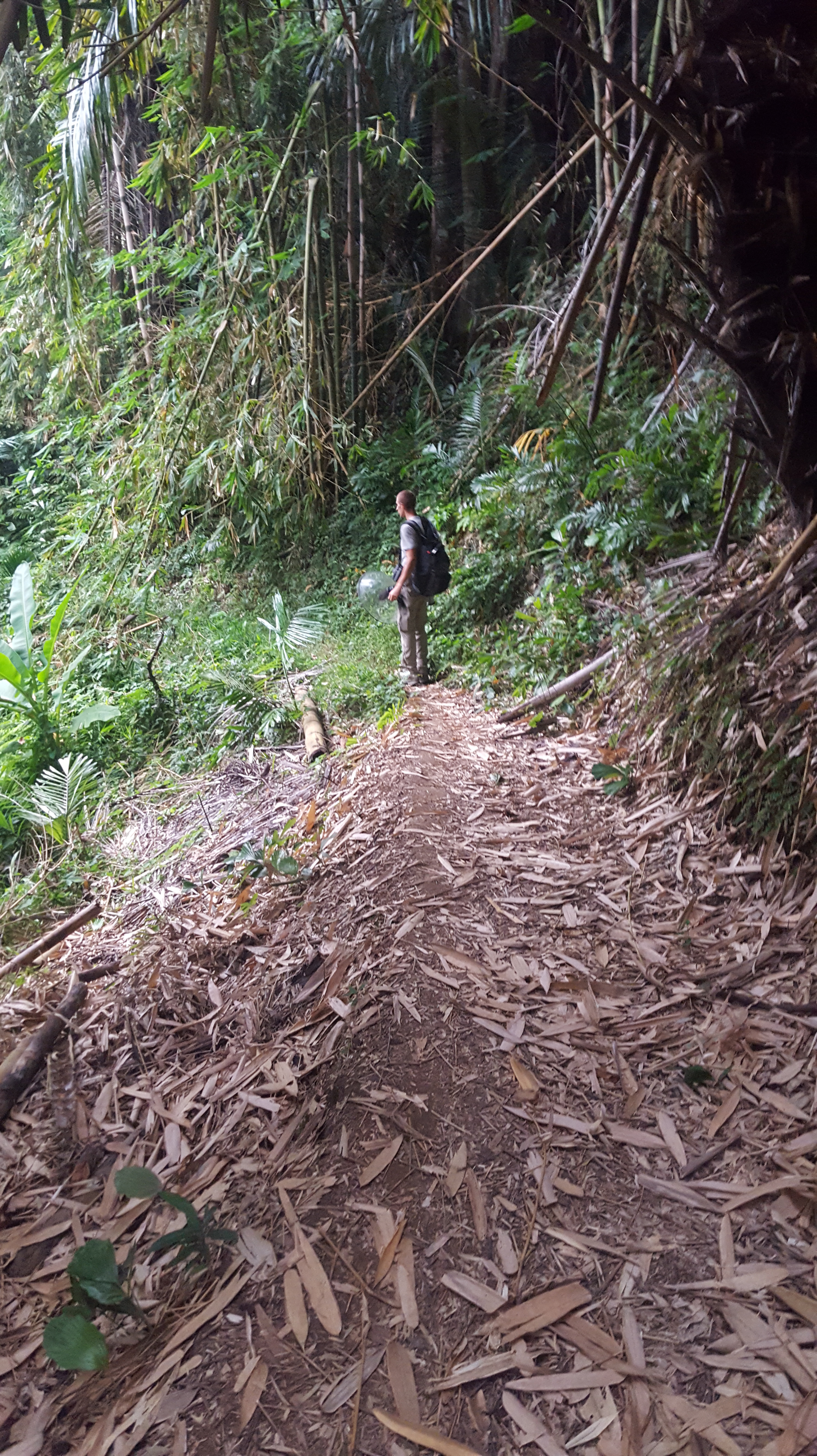 The following morning, our last morning, we opted to repeat the walk back up the trail and search for our last remaining target, Alor Cuckooshrike. We were mid-way up the trail looking for the eagles again when we decided that the birds simply were not in the valley of the trail we had been walking. We opted to climb all the way to the top of the trail, out to the telecom road and see what we could see. We found that we had a view into the neighboring valley and started to scan the area. Because we were on the road, it didn’t take long before the people of the even smaller village up here spotted us as they were walking. They stopped and asked us to take a picture. Again, this was not new to us, by this point in the trip I’ve lost count of how many people have come up and asked to take a photo with me or of me, again we were simply the first white people these people had ever seen. I agree to take a photo with them except they tell me they do not have a camera. So they stand there next to us watching us scan and ask every single person who comes walking up the road until finally someone has a camera. Naturally every person they ask who didn’t have one, stood with them until we’d gained a small audience before finally a girl comes along with a cellphone camera. I proceed to take photos with each of them while Ross looks for the birds. Satisfied they walk away. Ross and I also make our way up the hillside to scan from a different vantage point. After maybe only 10 minutes of solitude, one of the girls from our previous encounter returns. Only this time she does not want a picture, she just wants to watch us. At first we were confused as to what she wanted, we smiled and said hello but she didn’t speak any English so it wasn’t that she was trying to have a conversation. Eventually we just decided to ignore her and continue doing what we were doing, despite feeling slightly awkward that we were being watched. Soon some schoolboys come walking down the hill. We assumed they were on their way somewhere but they see us and stop. We stood there scanning for the next 30 minutes with an audience of 20 people. Then a man comes and yells at the kids to get back to school so they walk back up the hill. Turns out the kids weren’t going somewhere, they literally only came to see us. I talked about selfieing with them to Ross while scanning just so you could see, but I just couldn’t bring myself to do it. In hindsight, I really, really should have. It was both adorable that they were so intrigued by us and also annoying as they were talking to each other preventing us from hearing any more cuckooshrikes calling. Eventually we had to just give up birding the road and go hide ourselves back on the trail where less people were likely to find us. In case you were wondering, during all of this, at one point Ross did manage to find two Alor Cuckooshrikes as they were chasing each other low through the valley, but unfortunately, they flew into the close hillside before I was able to get on them.