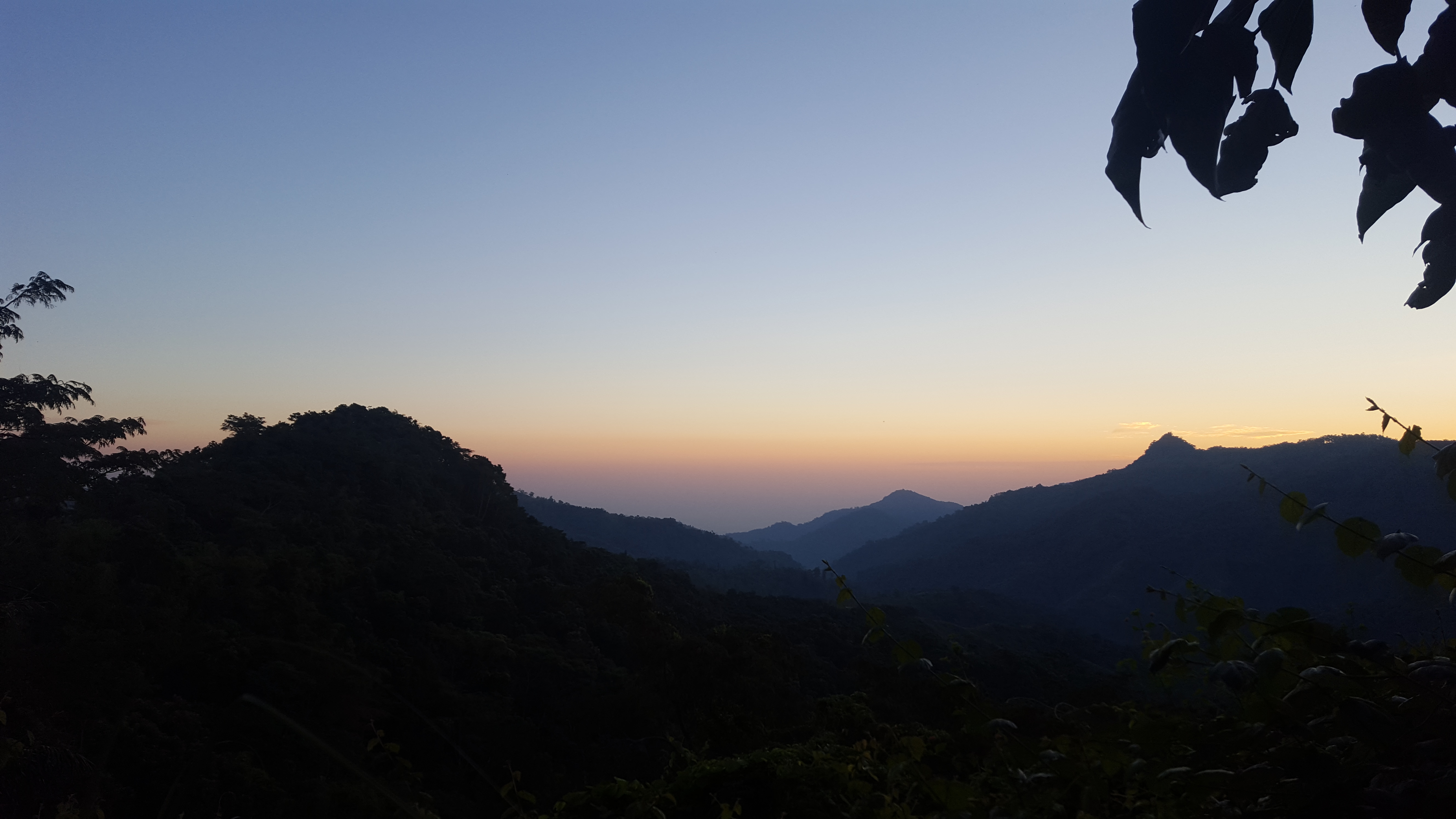 The following morning we opted to just walk up the steep trail to avoid having to go through the trouble of finding two motorbike drivers willing to wake up early. Truth be told, the trail isn’t that steep, we were honestly expecting much worse when we came down it the day before. As Ross always likes to say to me “it’s amazing how much you can gain in elevation just by walking.” Actually, I think we say that phrase to each other a lot, and it’s true. Before long we had climbed up the steepest section of the trail and as the sun was cresting the other side of the mountain we stopped to scan the trees just as light was beginning to hit them.