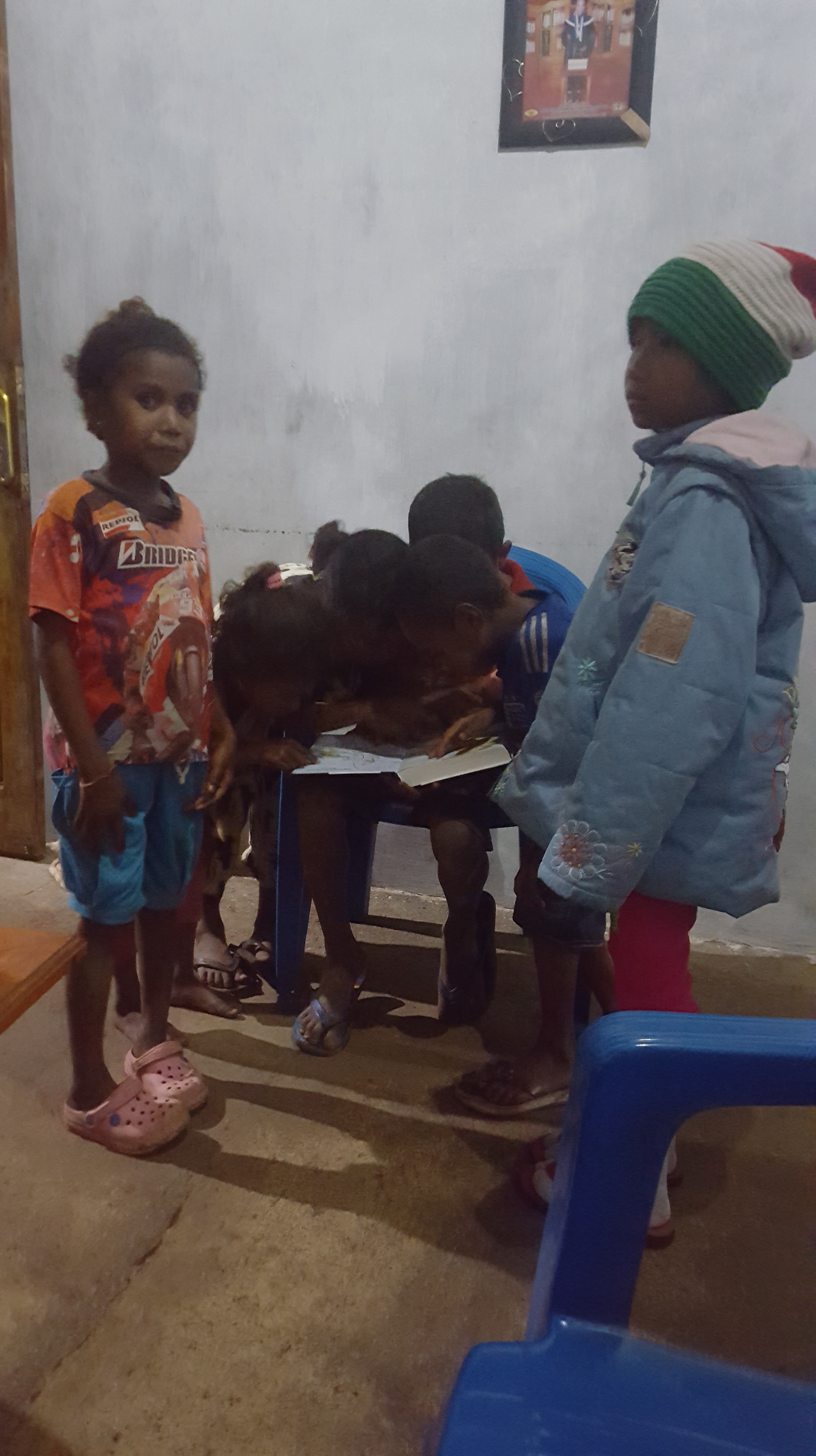 We went back to our homestay just at dusk, grabbed our flashlight and walked across town to a known site of our main night target, Alor Boobok. We made sure to smile at everyone in town and say hello whenever they would come up to us. We wanted to be sure they had a good first impression of American birders because surely we were some of the very first white people they had ever seen. Anyway, we finally reached the site and I think it took less than 5 minutes before we had an extremely responsive pair of Alor Booboks come and perch above our heads. Easy! We took a few photos and headed back to the homestay so they wouldn’t wonder where we were. The children and adults alike were thrilled when we arrived back and Ross showed them the picture of the owl we had just seen! If the newest Indonesian bird guide didn’t weigh 3lbs, we kept thinking about how great it would be to bring extra and give people like this a copy! If the forests are to be saved, the children need to know how special they are! And what better way to teach them to save the bird than to show them how many different types live there and call the forests of Indonesia home? The children at the homestay wouldn’t set our bird book down and were pouring over each and every page. We let them look at our bird book and they all gathered around while Ross and I feasted on a meal of you guessed it, plain ramen noodles over white rice.