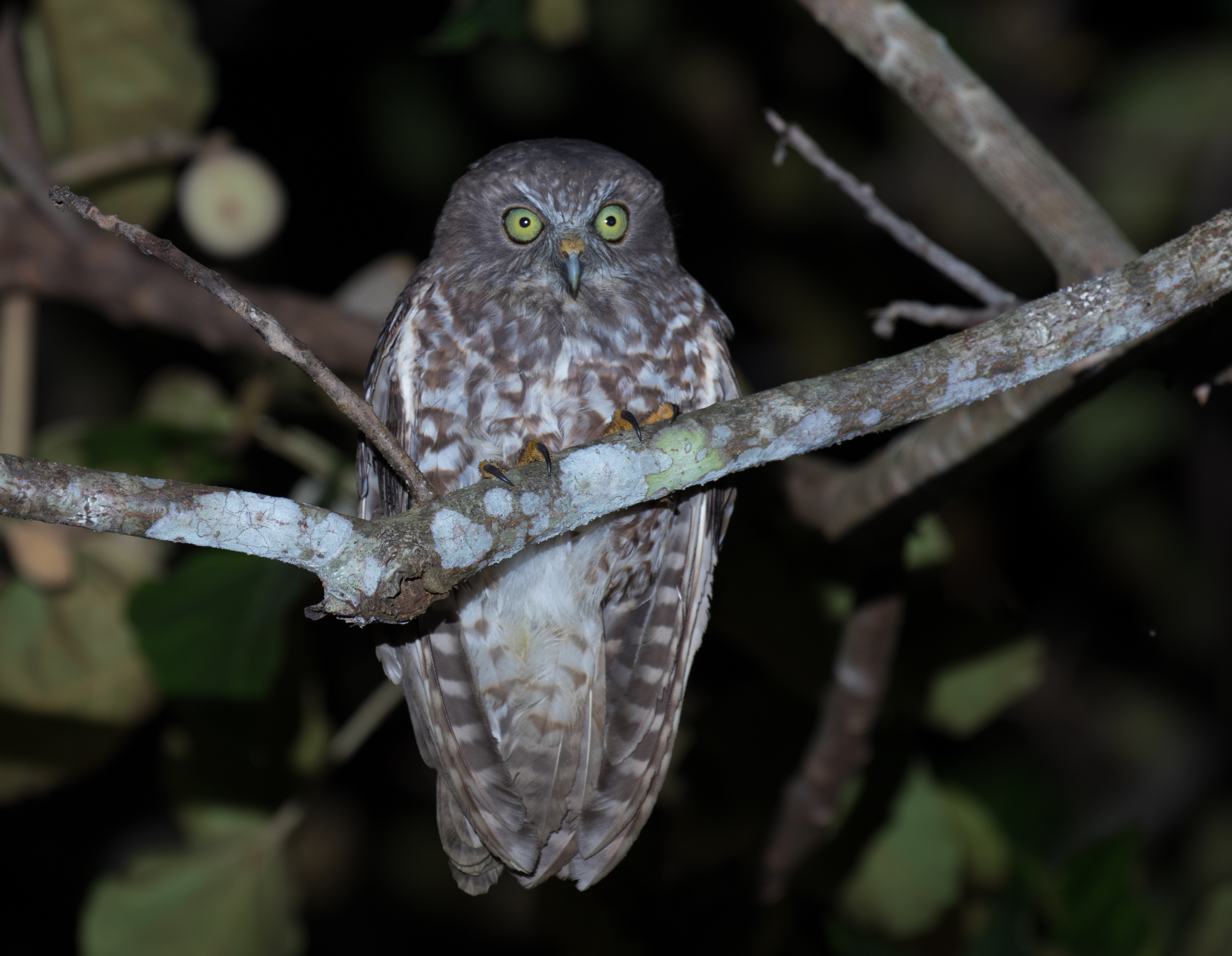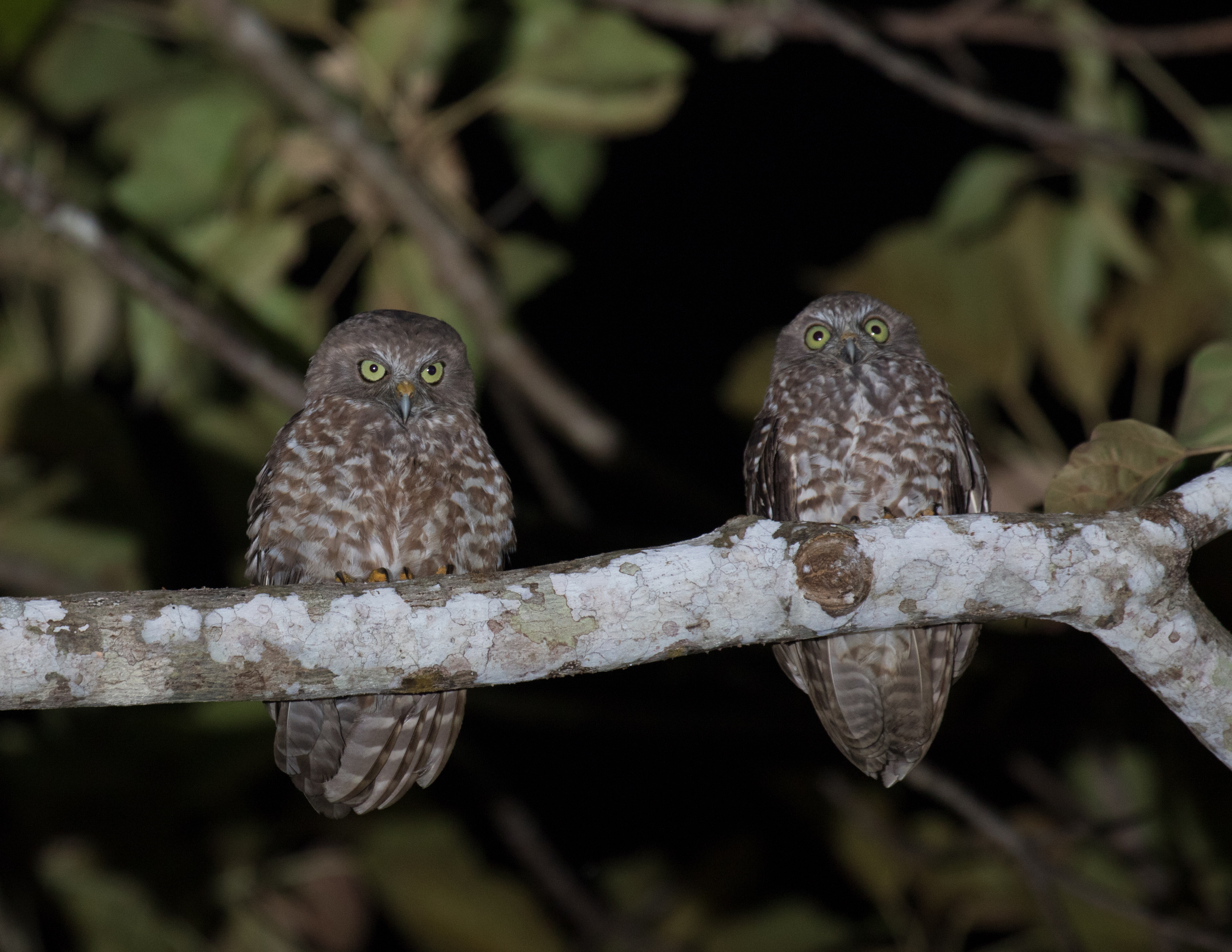 We continued trolling for the cuckooshrike but it remained elusive. Throughout the entire day we heard the call on two occasions, once when we were further down the mountain and again in the early evening. Neither time did the birds respond to playback. We were perplexed. This was not supposed to be the hard bird. We thought it was common and easy! On our walk back to the homestay we had views of Elegant Pitta before arriving back down at the homestay at nearly the exact same time as the day prior. It was Deja-vu, as we again quickly grabbed the flashlight and walked back over to the owls, this time hoping to record their calls. The bugs started up much quicker tonight but Ross still managed a decent recording and another photograph of Alor Boobok.