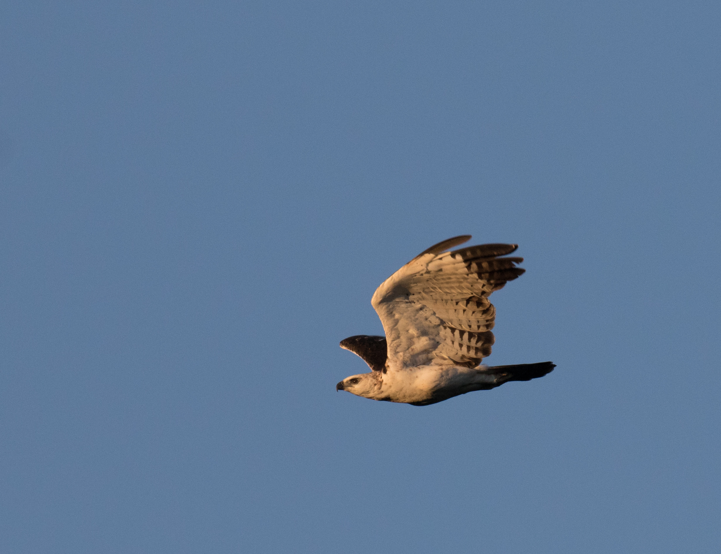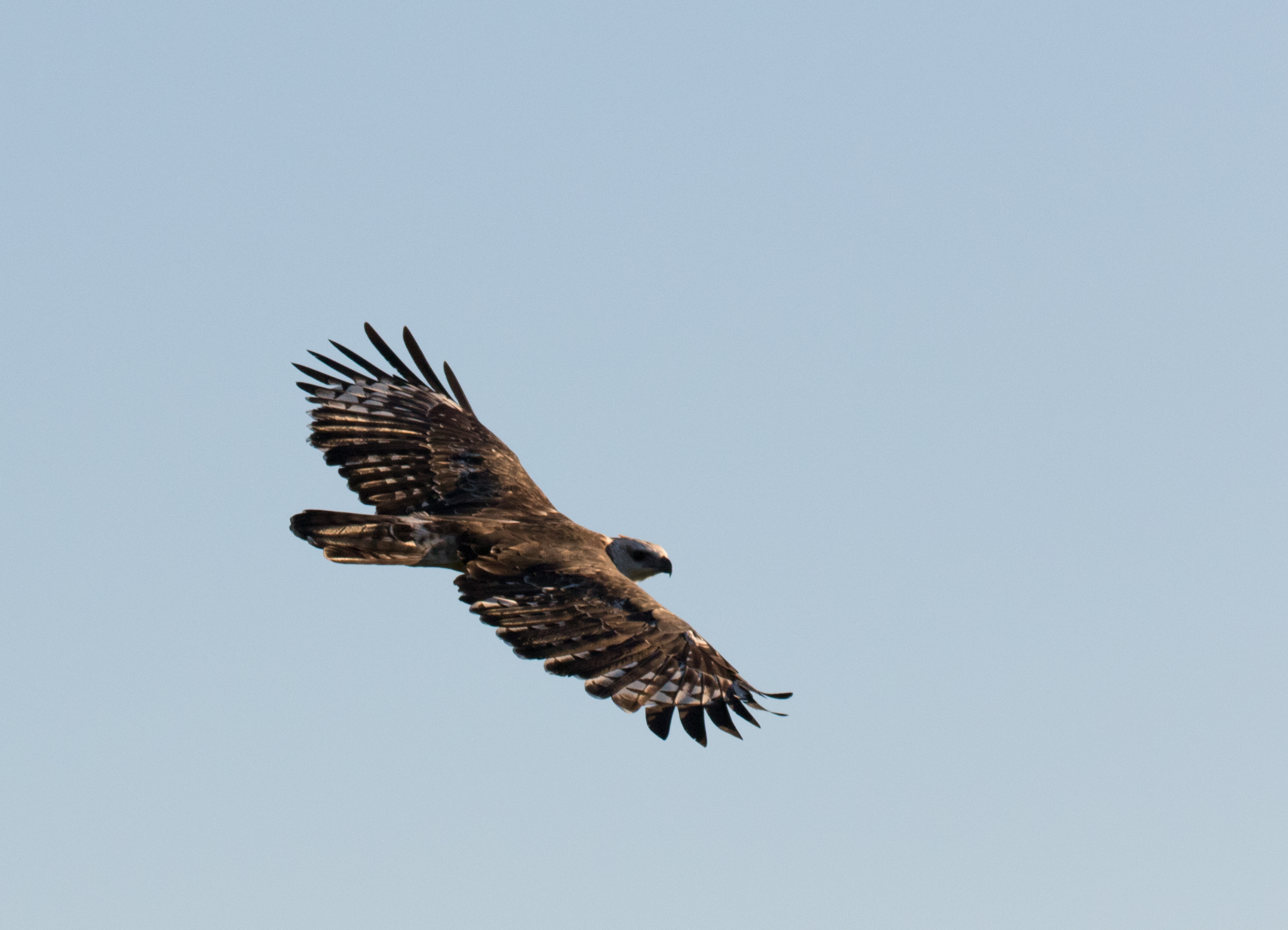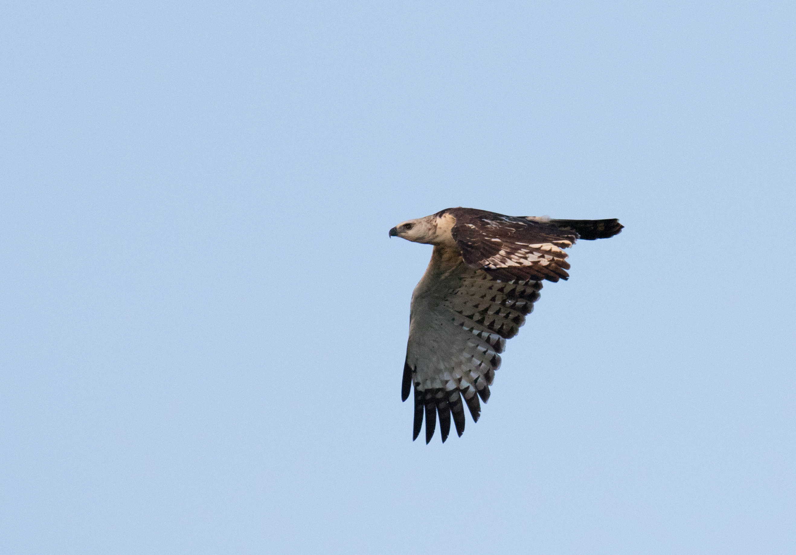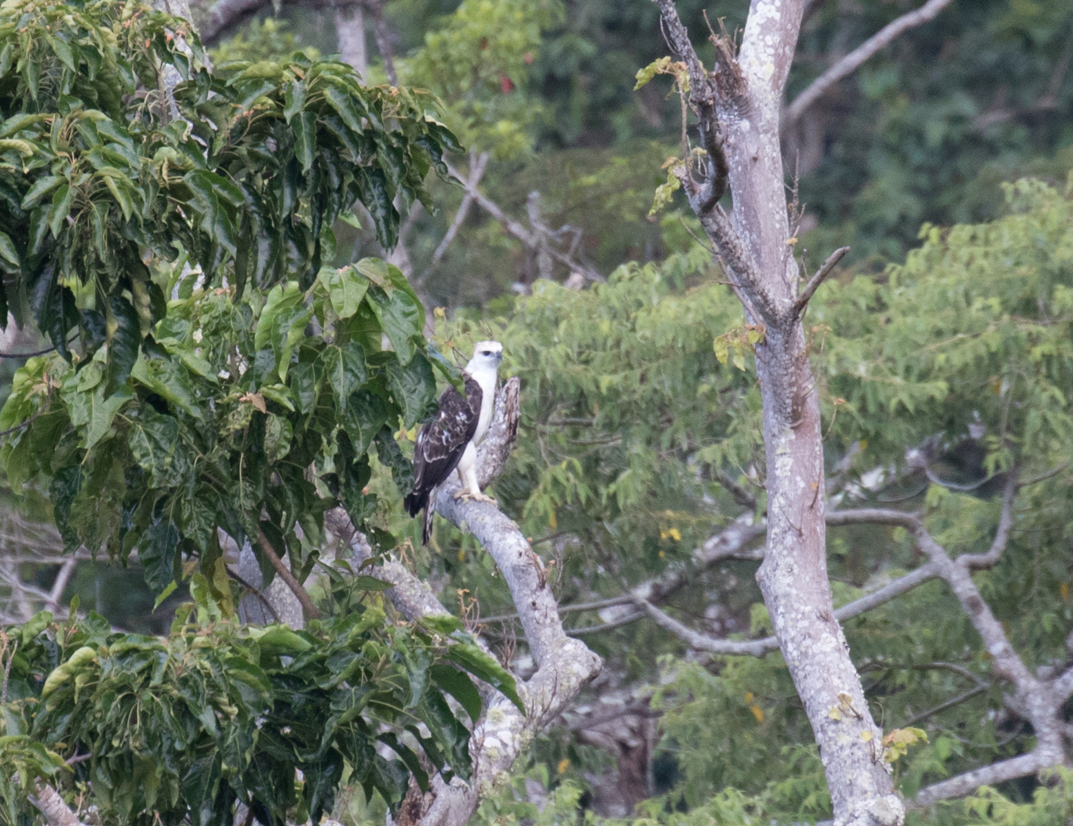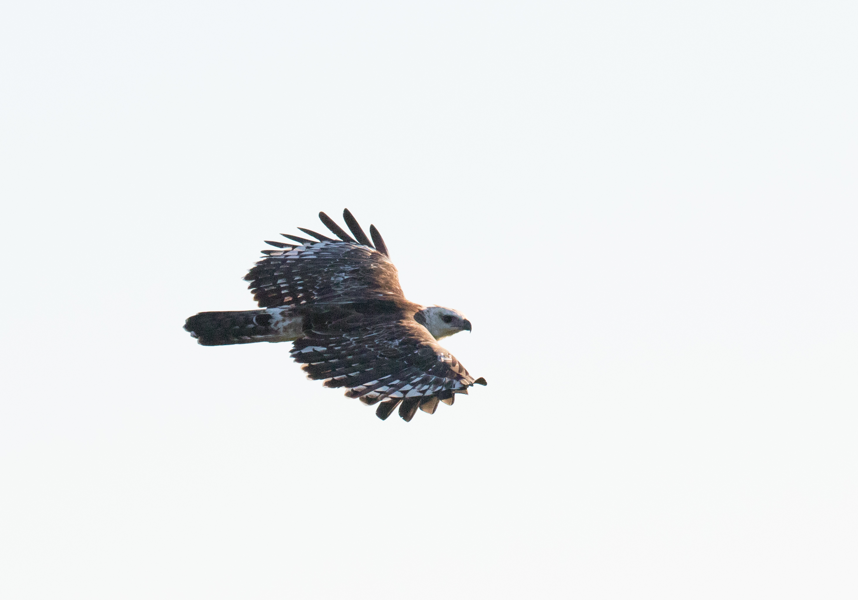 As we stood still looking off in the distance we began to hear movement nearby. We waited like statues to see what could be making this much noise because it sounded like a bigger bird. One began to call and Ross was ready with his recorder to tape the sounds. Clearly the bird didn’t know we were there. As we were waiting to see if the birds nearby would show themselves, we spotted a Flores Hawk Eagle flying in and watched as it landed in a distant tree. Suddenly seeing what we presumed to be Green Jungle Fowl in the close grass became an afterthought. One of our last remaining targets was now sitting in perfect sunlight! One quick play of the bird’s song and we had two Flores Hawk Eagles flying towards us. Ross managed at least one or two passable photographs and we were thrilled. Over the course of the day we would see three birds extremely well, likely a pair with a juvenile bird circling over the territory.