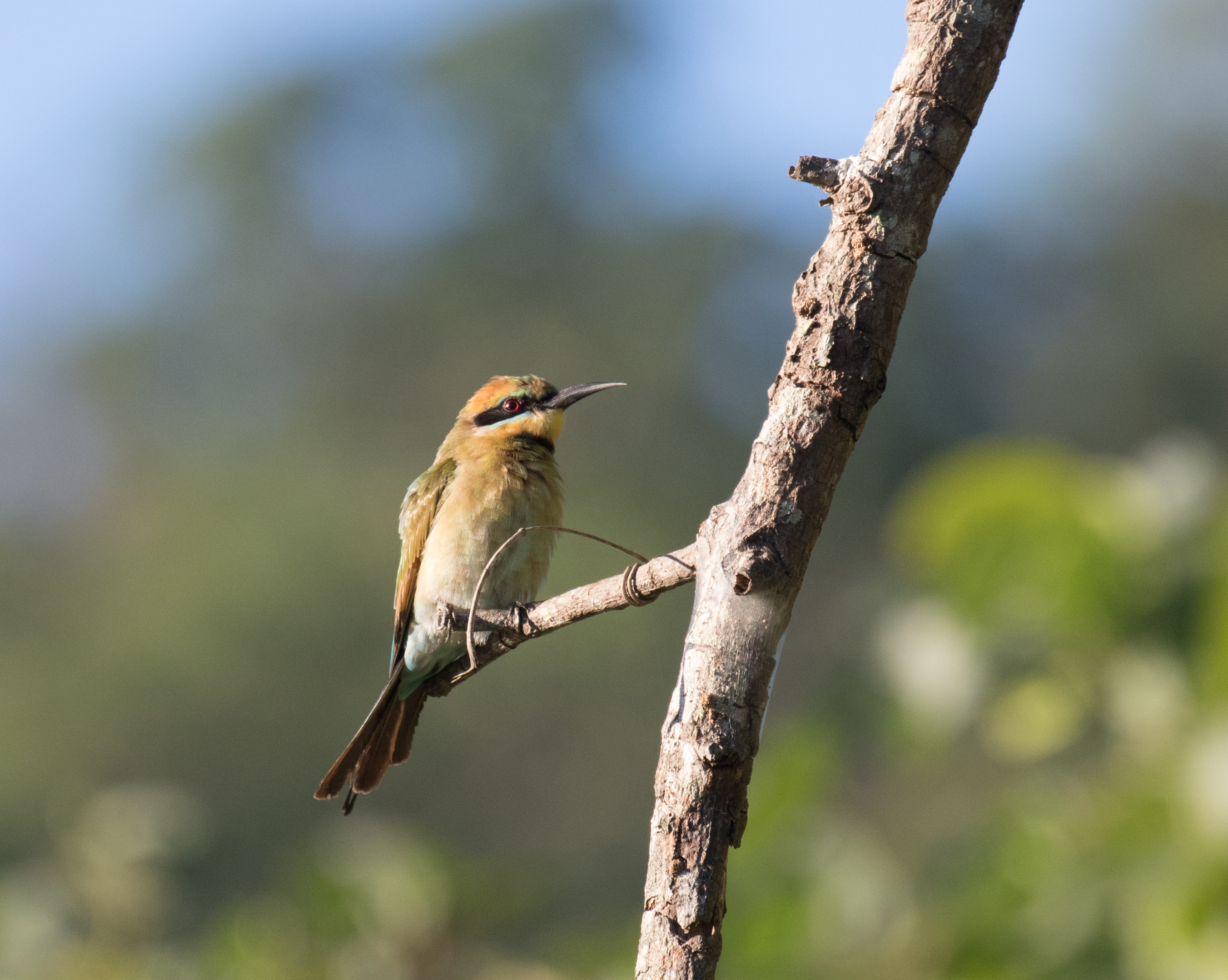 We made it back up the hillside in the heat of the day, but it wasn’t until much later in the afternoon, as we were scanning a different part of a close hillside, that I spotted a male Alor Myzomela at the top of snag. The unsatisfying glimpse of this bird Ross had earlier was made up for with some excellent scope views of a bird not too far away! He’s kicking himself now for enjoying it in the scope instead of taking a picture, but seeing the bird is the goal, photographing it is just a bonus.