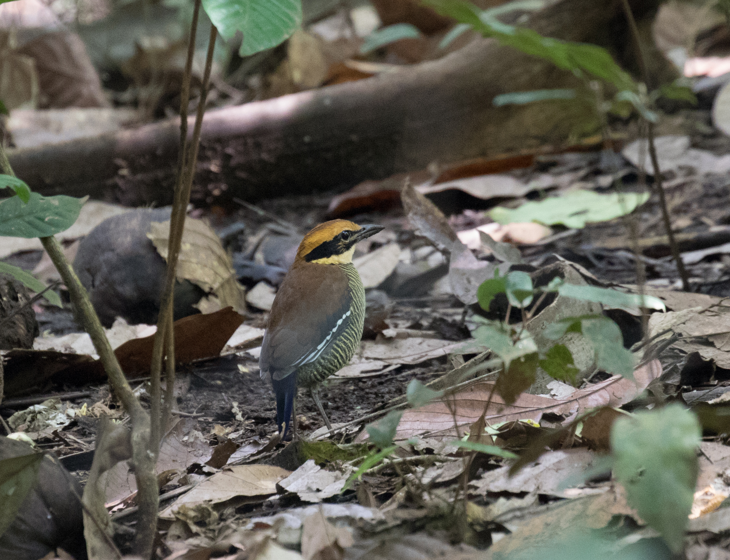 Not wanting to disrupt their sleep too much, we moved along to where Made also knows of a pair of Javan Banded Pittas that come frequently to feed. Not long after we again had great views of Javan Banded Pitta but we were sure to tell the man to shoot the cat that we saw stalking the area. (Sorry not sorry, cats are terrible for the wild bird population and often feast on native birds. Neither Ross nor I are proponents of outdoor cats roaming around.) It was midday while we were here but that didn’t stop us from having a slew of birds present. We had looks at Freckle-breasted Woodpecker, Javan Flameback, and Javan Cuckooshrike. We could have eaten lunch here at the man’s restaurant but we rarely take time out of a day to eat lunch, especially one where we were paying for a guide. We opted to skip out on lunch and continued on our way. The afternoon was a fairly typical birding afternoon, slow going but with a few birds. We headed to a nearby spot where Yellow-throated Hanging-parrot has occurred, and while we never found a parrot (as I’ve said before you can’t really do anything about this, parrots more often than not find you if you don’t have an exact spot for them), we did still have a few new birds for the day with the best being Black Drongo.