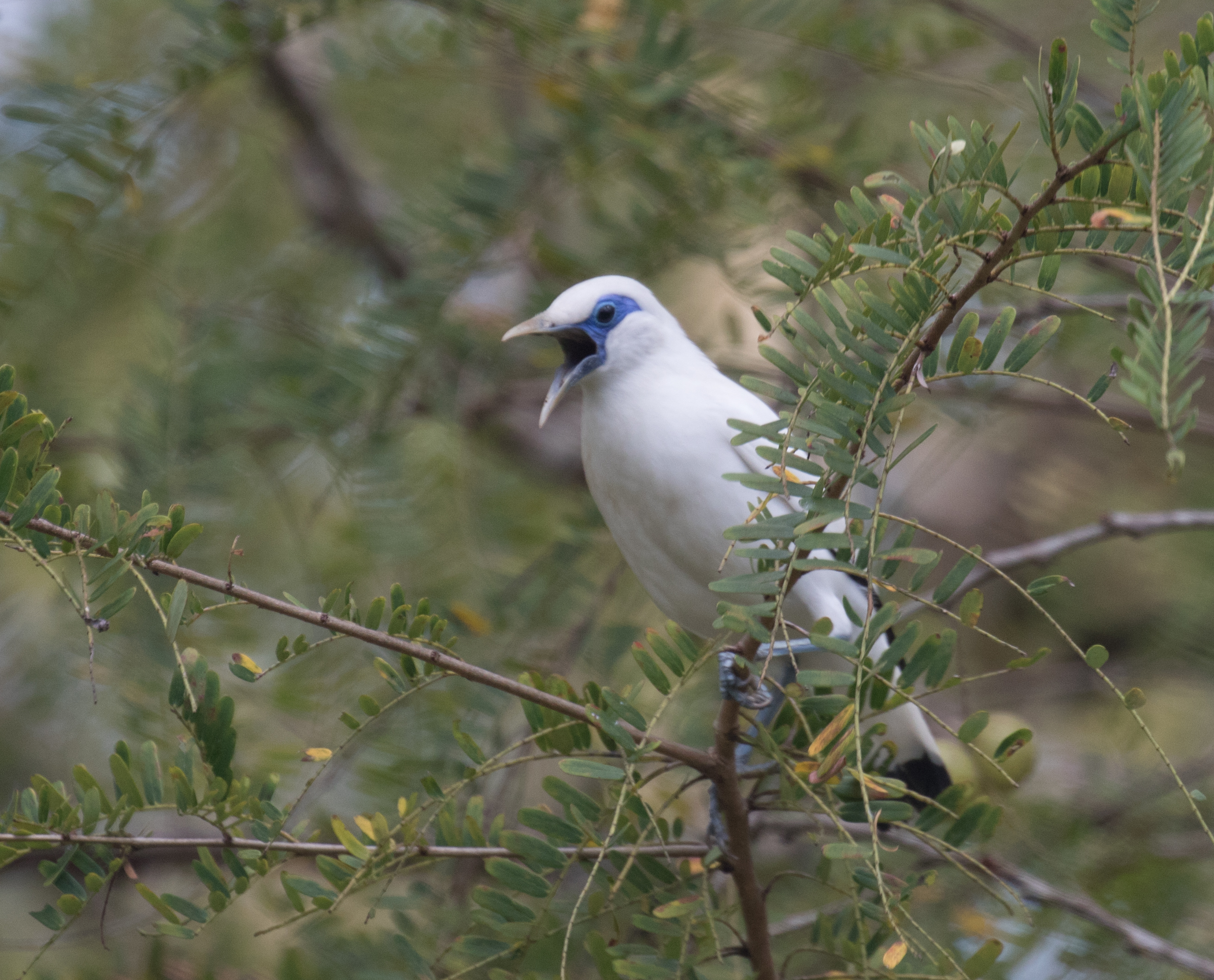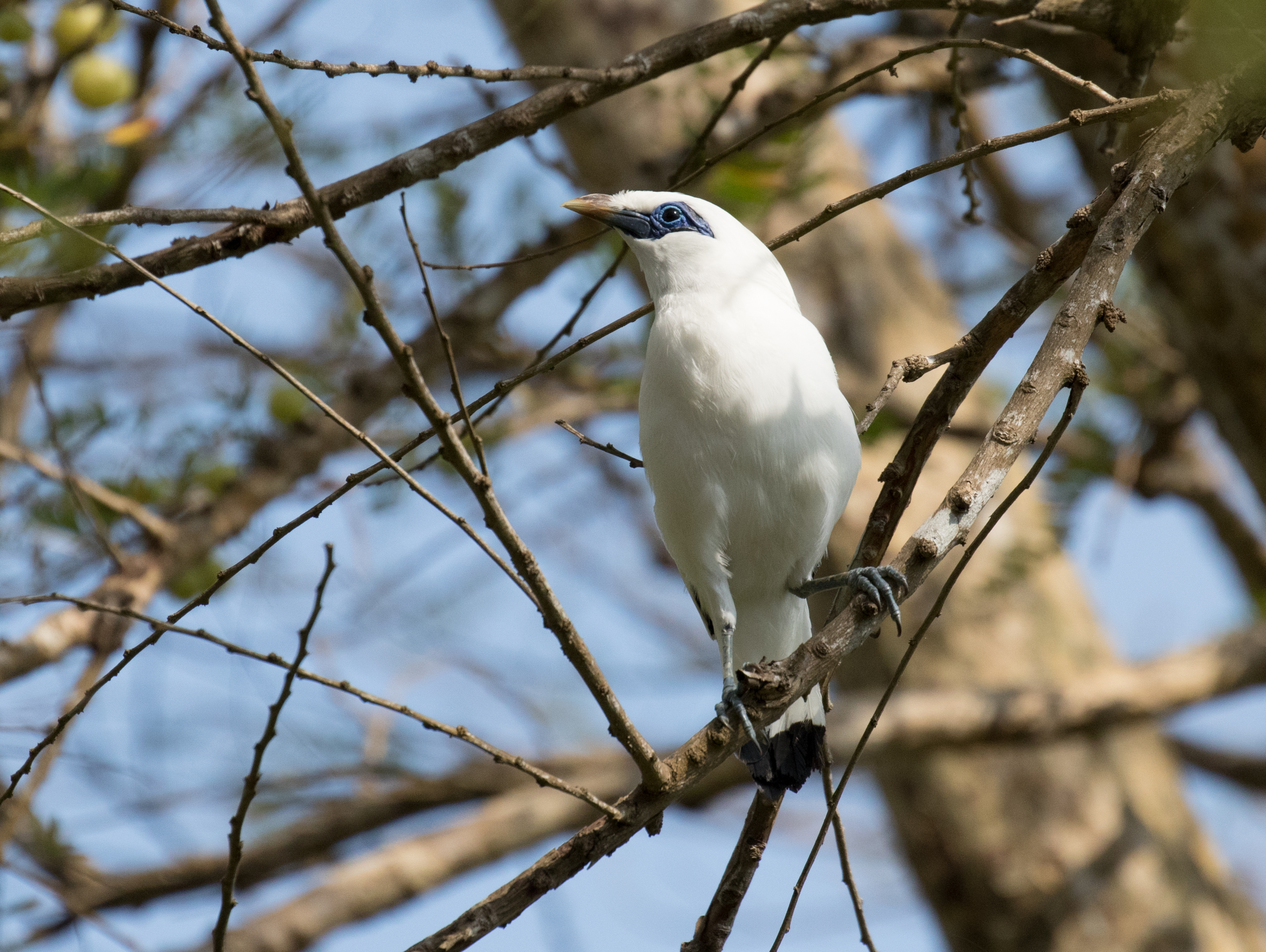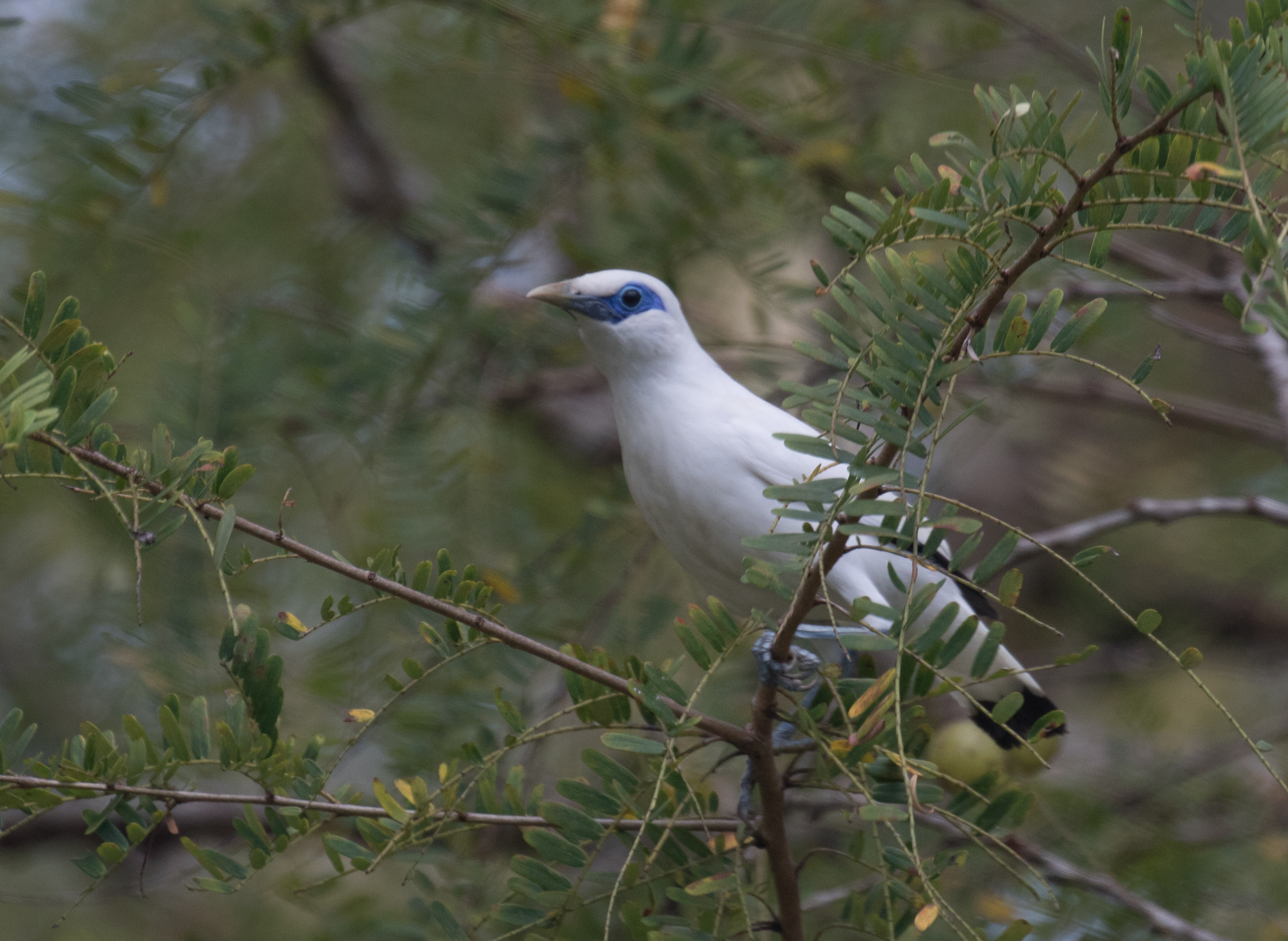 Well, now that you know that our day on Bali went well, let me start from where I left off after finishing in Lombok. Our night prior to this blended directly into morning as we were up travelling for the majority of the night. We came directly from Lombok via an overnight bus ride so we only had about 2 hours of decent sleep in a hotel when we arrived. Our morning started very early when Yudi arrived at 5am to pick us up. We hopped in the backseat of a Toyota 4×4 and headed directly to the Menjangan Resort area located within Bali Barat National Park, the site where we were to find our two main targets Bali Myna and Black-wing Starling. The starling is on the brink of extinction so we knew it would be difficult to find. The Bali Myna already went extinct in the wild, (largely due to wild poaching for the pet trade) but the species has been preserved with birds bred in captivity re-released into the wild. The morning walking though the trails of the park was very birdy and very productive. We immediately had looks at Green Junglefowl, Pink-necked Green-Pigeon, Black-winged Flycatcher-shrike, and Scarlet-headed Flowerpecker when we suddenly had two Bali Mynas come and perch at the top of a nearby tree. We enjoyed scope views of this exceptionally beautiful bird with stark white feathering and a bright blue eye ring. As we continued on to a canopy tower, we had two Black-wing Starlings fly over! Just like that our two biggest targets were accounted for! Excuse the poor photo quality, but sometimes that’s all you get!