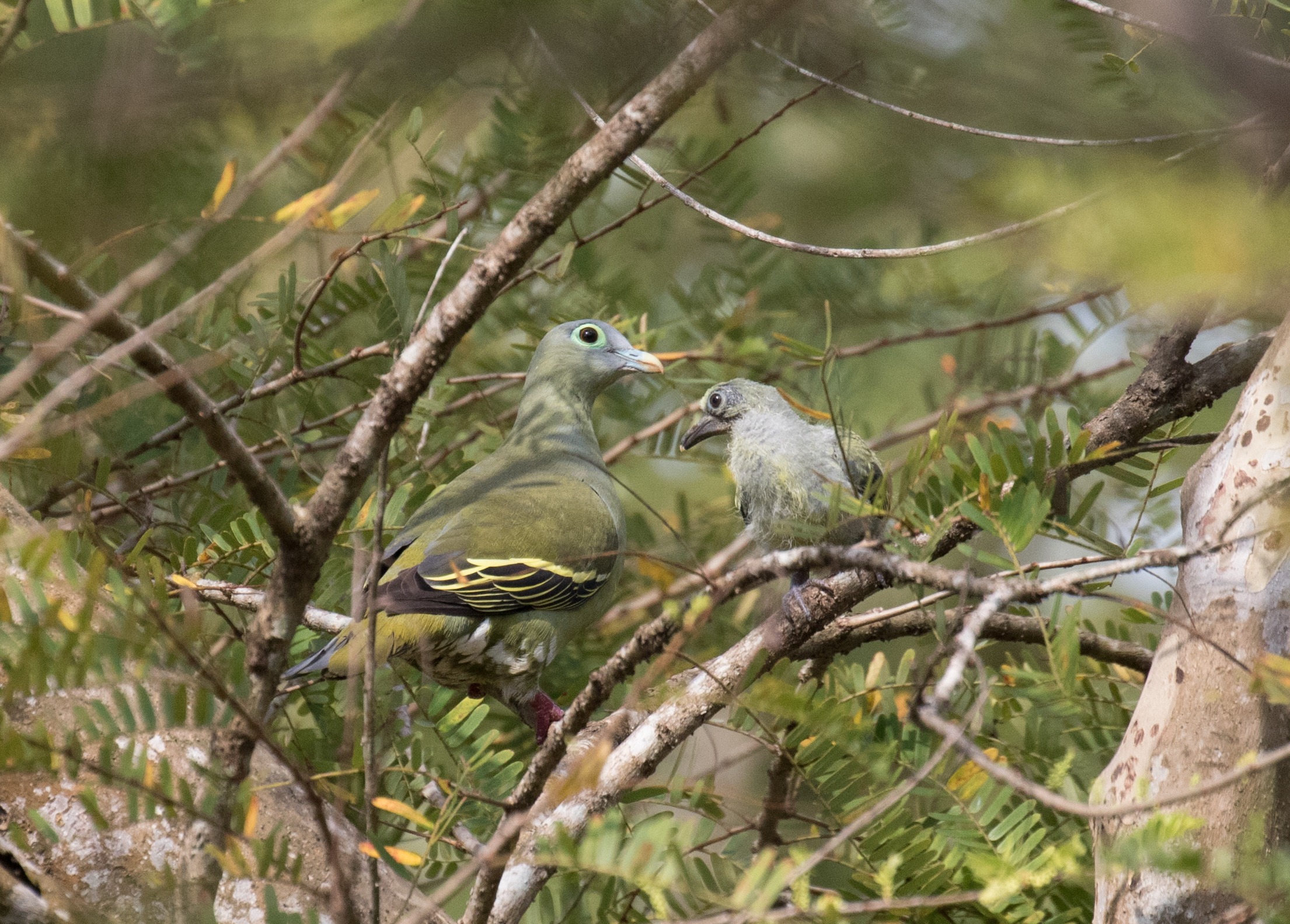 Being the middle of day, we had some time to kill before heading back into the forest to find our last remaining targets. On the way back towards our final birding destination, we made a stop at another part of Bali Barat National Park where they are currently raising Bali Mynas. Upon our arrival we not only saw a group of young mynas inside of a large cage, but also around ten Bali Mynas enjoying some free handouts near the large enclosure. As stated before, the Bali Myna has been subjected to extreme pressure from illegal wildlife trade and would be extinct if conservationists hadn’t stepped in to protect this rare bird. Nowadays, there are a few hundred Bali Mynas flying in the wild with new birds still being reared in captivity to help increase the wild population. We enjoyed spending an hour in the area photographing the mynas as well as Javan Myna, Sooty-headed Bulbul, and Grey-cheeked Green-pigeon.