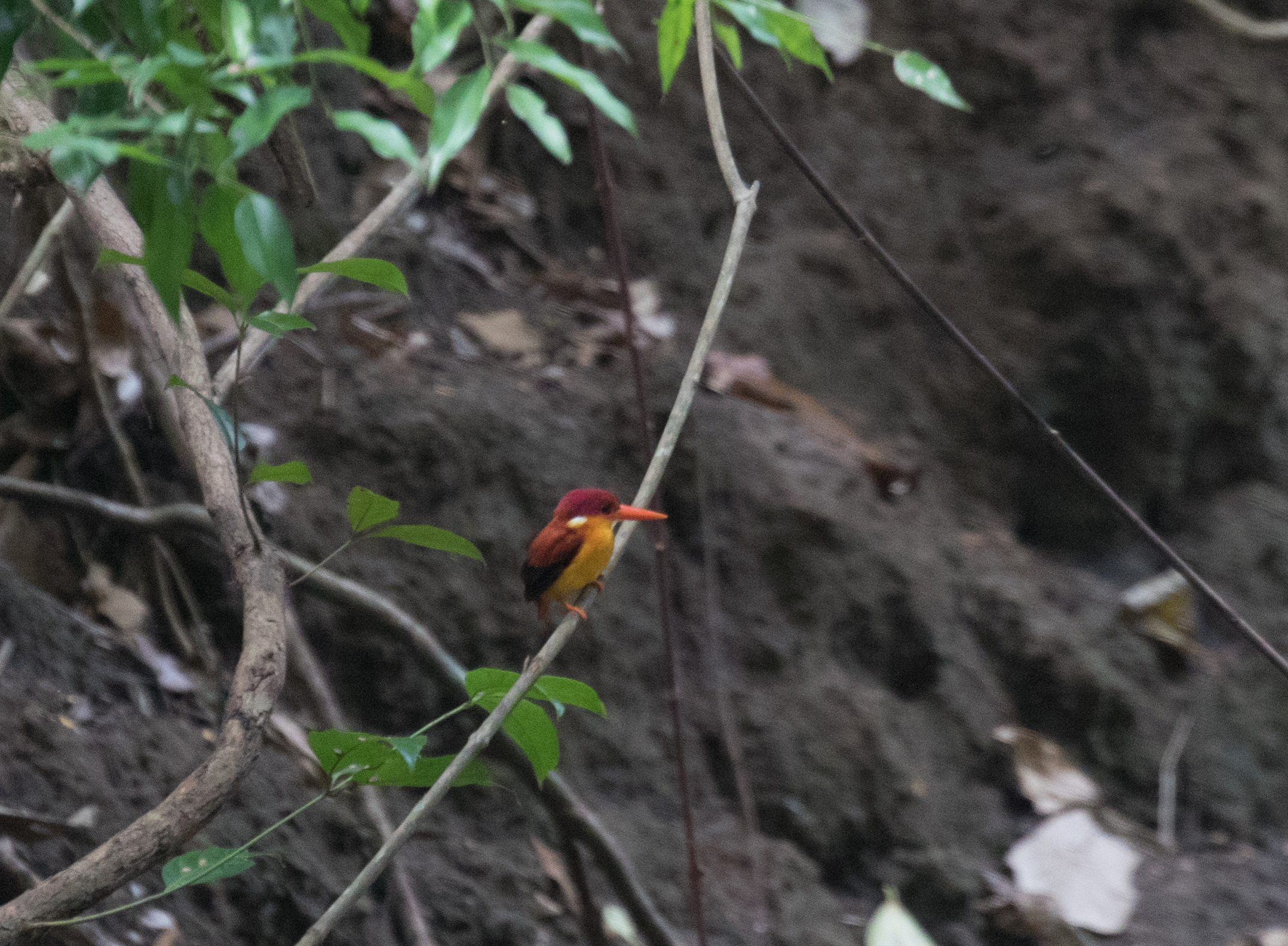By this point it was starting to cool off and we only really had two realistic targets left, Fulvous-breasted Jungle-Flycatcher and the hanging-parrot. The jungle-flycatcher has a fairly wide range, but is easy to overlook when you see it has a wide range and don’t realize there are a few spots much better than others to get it, one being here on Java. It was while we were looking at potential targets that we even realized this is one we needed to get here. We told Yudi to take us back to the trail where we had Rufous-backed Dwarf-Kingfisher as after looking at eBird, Ross knew that this trail was a good place to find the jungle-flycatcher. It was pretty late in the day so we opted for this to be our last stop before we went out to scan for the hanging-parrot at dusk. We walked along the trail and had no shortage of Rufous-backed Dwarf-Kingfishers. Without using playback even once, we easily saw over 6 different dwarf-kingfishers! Our earlier trip to this location would have been spent a little differently if we had known that just walking the length of the trail would be so good for the kingfisher! The Fulvous-breasted Jungle-Flycatcher was a bit trickier to find but eventually we had a single bird come into a tree above our heads!