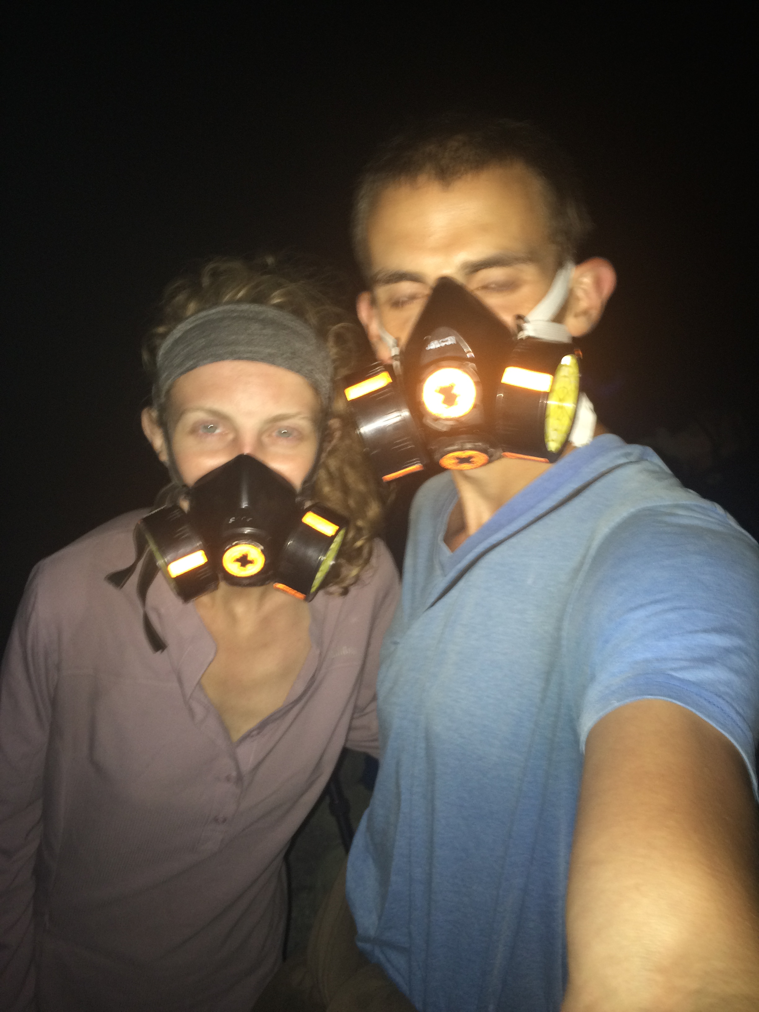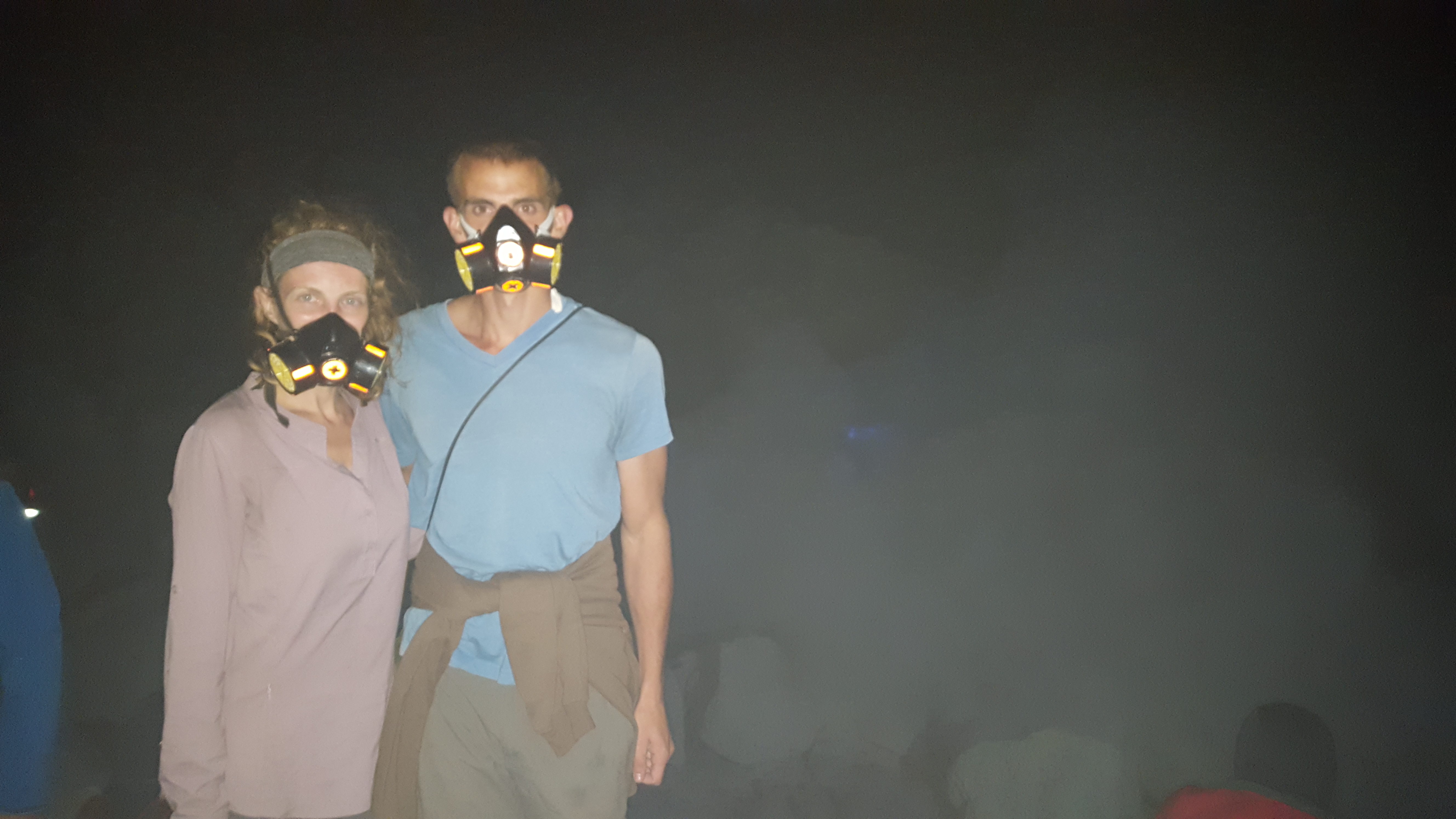 In our research on where to visit when coming to the eastern side of Java, we found that an excellent birding site also happened to have a volcano that erupts with blue fire (well something like that). Technically sulfuric gas is emitted from the volcano of Mount Ijen and the blue flames are a result of the gases combusting when they come in contact with the air. The result, they ignite and burn blue. Pretty neat right? If Ross were alone on this trip I can say with certainty that he would have bypassed this tourist spot in favor of more time spent birding, but I convinced him that we should check it out since we would already be there and all. We had planned to do this trip up to the crater independently because usually tours up to tourist destinations are way overpriced and doing it yourself is cheaper, but when we arrived at the ferry terminal, we met a tour guide with surprisingly reasonable prices. We were pretty surprised that his fee included transportation up to the start of the hike, our 100,000 rupiah entrance fee, gas mask rental, and a crater guide all for the price of 250,000 rupiah! Honestly, I don’t think you could do it much cheaper than that if you wanted to. And to save ourselves the headache, we just went with it. To visit Mount Ijen and see the blue flames, one must visit at night. Obviously the sulfuric gases emitted from the volcano continue 24/7, but to see the blue fire that makes this volcano unique can only be viewed in the dark. We arrived in Java late that night and were waking up at midnight to be taken up to the mountain. We only got 2 hours of sleep before we had to get up and go. Thankfully the group of people we met that were on the same tour as us were very nice. We were looking forward to visiting Mt Ijen but did not realize how big of a tourist attraction it had become until we arrived and saw at least a hundred vehicles similar to ours in the parking area. Something neat to see demands viewers right?