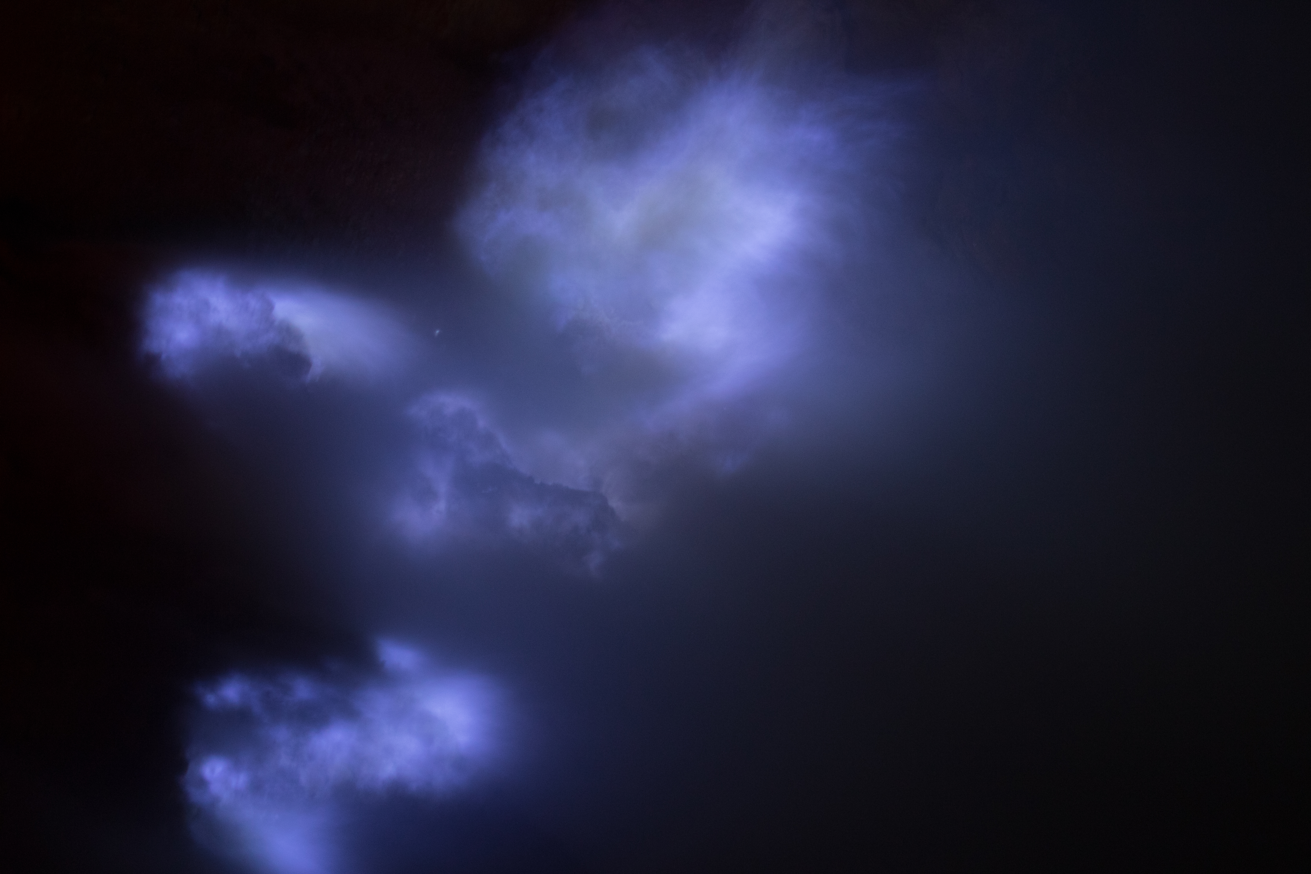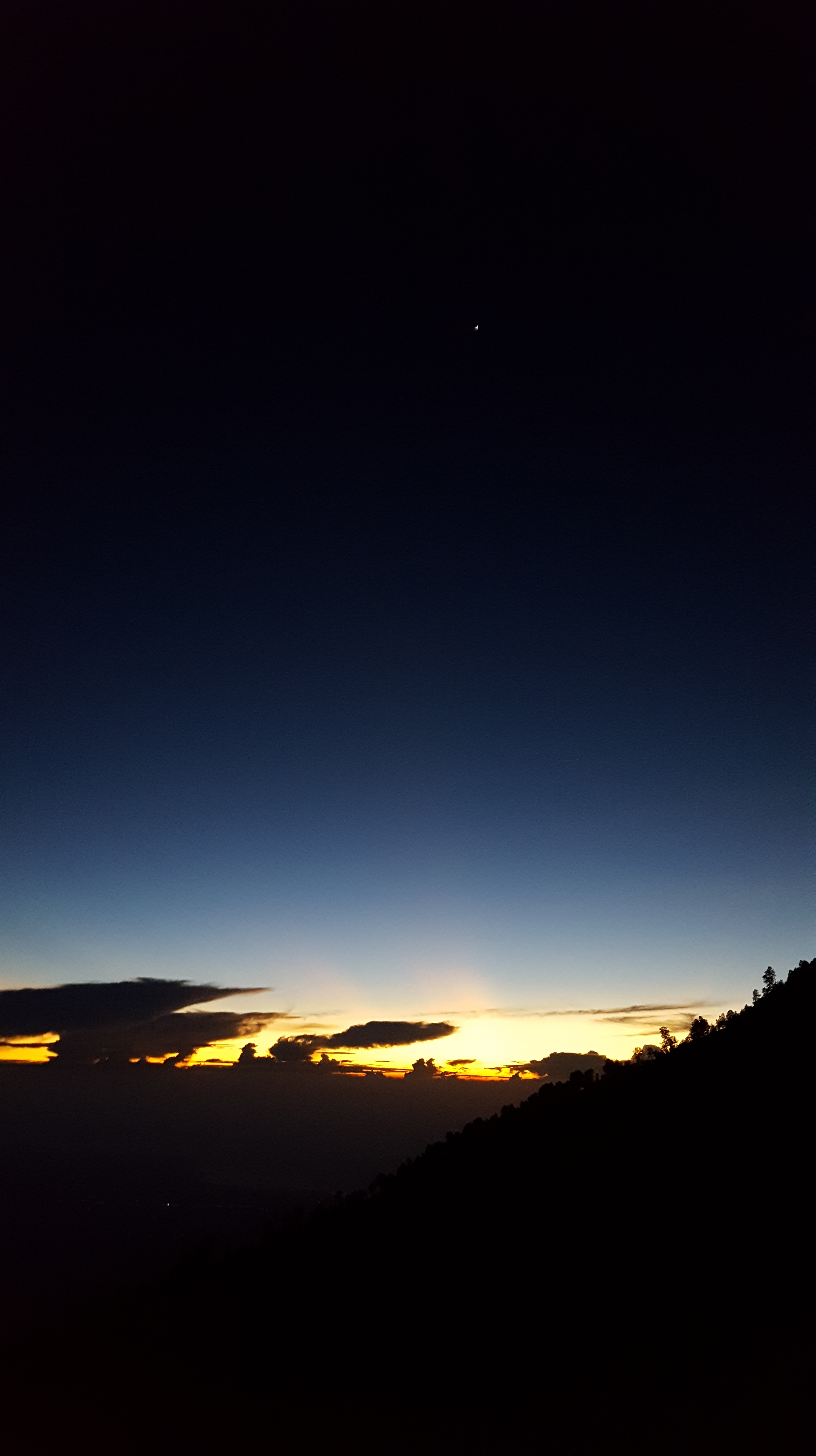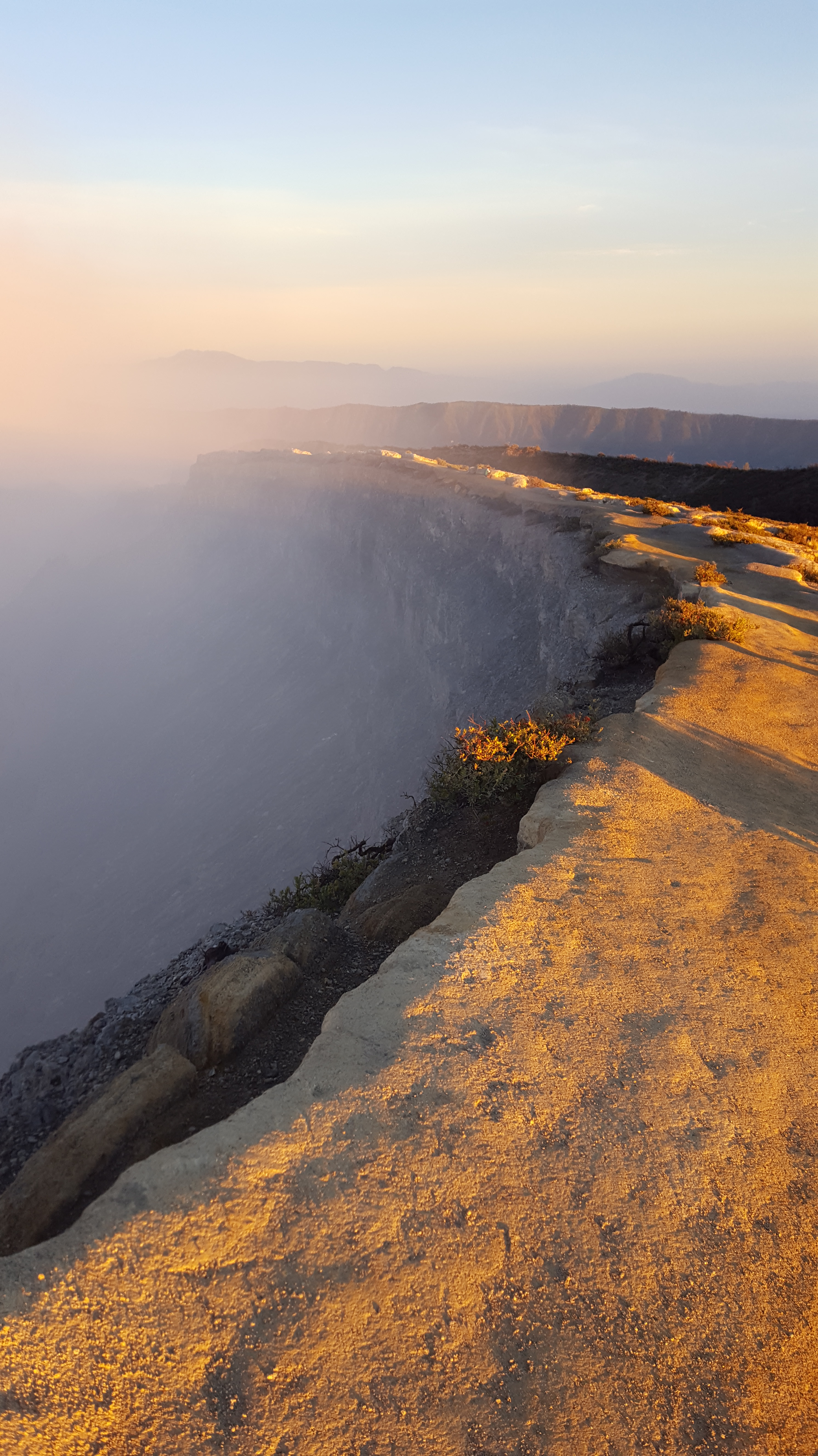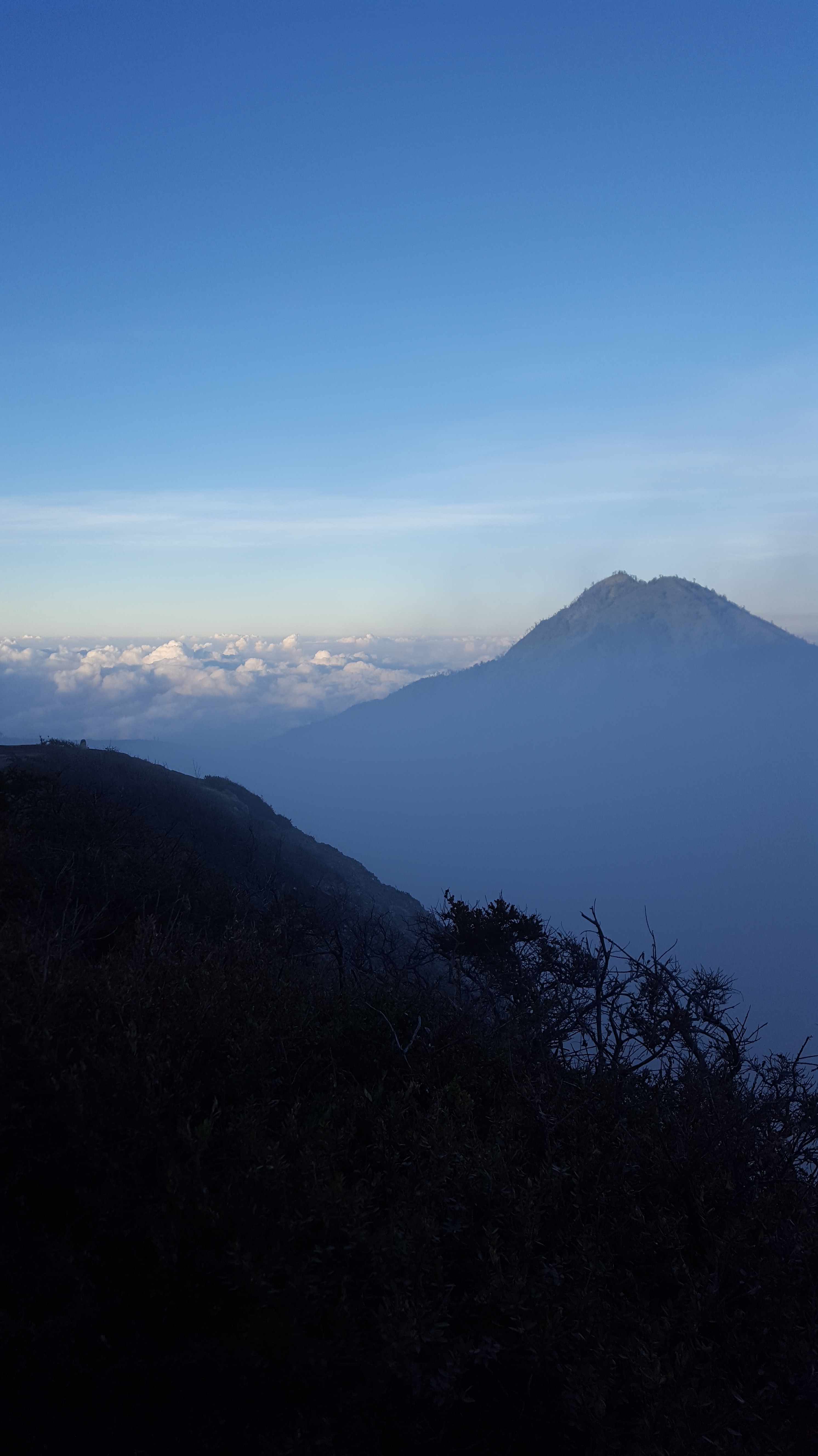 The hike up to the crater usually takes about 2 hours, but Ross and I hike pretty quickly and did it in just over an hour leaving our group way behind, despite the fact that our backpacks were filled with pounds of birding equipment. Instead we hiked up following the streams of people until we reached the top of the crater and had to begin the decent down to the blue flames. The hike is very steep but the trail is wide and road-like making the walking easy. (Relative to some of the other hikes we do we thought it was easy anyway considering some of the trails we do are not only steep but also very narrow and uneven.) Perhaps some people were not aware how strenuous of a hike this would be and were very apparently struggling to walk up. Locals were capitalizing on this and had rigged up wheel-barrow devices allowing for people to sit down and be wheeled up to the top. I am sure that these rides came at a pretty penny, along with the hefty price of one’s self-esteem. Eventually we made it to the top of the crater where we would begin our descent down to the blue flames. At this point the gas masks we were given came in handy as the sulfuric fumes were permeating the air. The trail down to the blue fire is only wide enough for a single lane of hikers so unfortunately we could only hike as fast as those in front of us. Eventually we arrived at a viewing point where we stopped and were able to enjoy this crazy phenomenon along with the hundreds of other people there with us. We photographed the fire to our heart’s content and started on the walk back out of the crater. I think we were mid-way up on our walk out that we ran into our tour group who had just started the hike down – we were that far ahead. I opted to continue on to the summit to view the sunrise while Ross raced down the mountain to make it into some good habitat by daybreak.