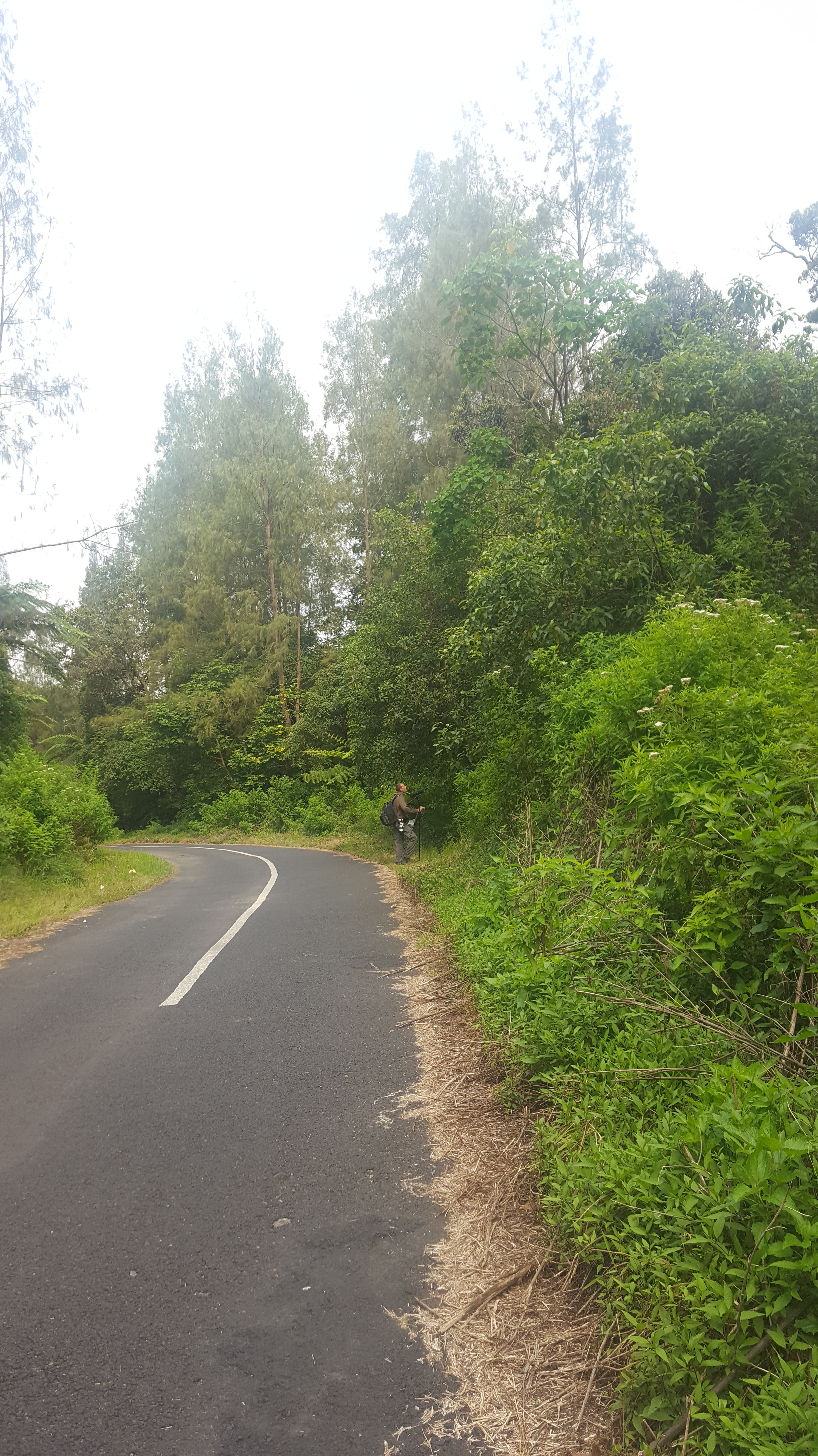 Ross continued down the mountain and eventually we reconvened around 8AM. We spent the next several hours walking up and down the road with highlights for the morning and afternoon being Javan Bush-Warbler, Indigo Flycatcher, Flame-fronted Barbet, Black-banded Barbet, Orange-breasted Trogon, Sunda Minivet, Sunda Cuckooshrike, Blue Nuthatch, and one of our main targets, the range restricted White-bellied Fantail. We ended up staying late in the day to see if activity would pick up again at dusk as we scanned the trees searching for Dark-backed Imperial Pigeon, but only came as close as seeing Green Imperial Pigeon instead. The road was frequented by vehicles throughout the day but not so many that it was annoying to walk but with enough that we thought we wouldn’t have a problem hitching a ride back to town. How wrong we were. I think it was just after we finally put away all of the birding gear and decided that we would get on the next ride that traffic completely shut off for the night. It wasn’t even dark when we committed to stopping birding for the evening, but darkness came quickly and it was at least an hour of walking before we finally had a vehicle stop to pick us up. We had no cell phone service up there to call for a ride either, so we figured we might be walking the 8 kilometers to the next town if it came to it. Luckily it didn’t! We made it back to town to find that all of the restaurants and shops were closed for the holiday. We weren’t sure where we would be eating! We did manage to find a single establishment owned by a Swedish ex-pat selling burgers and hotdogs. Typically we tend to avoid eating Western food while traveling because it’s never as good as it is in the US, but we were just thankful to have a meal. We planned to go back up the mountain again in the morning but found that coordinating transportation up was very difficult with it being the Muslim equivalent of Christmas.