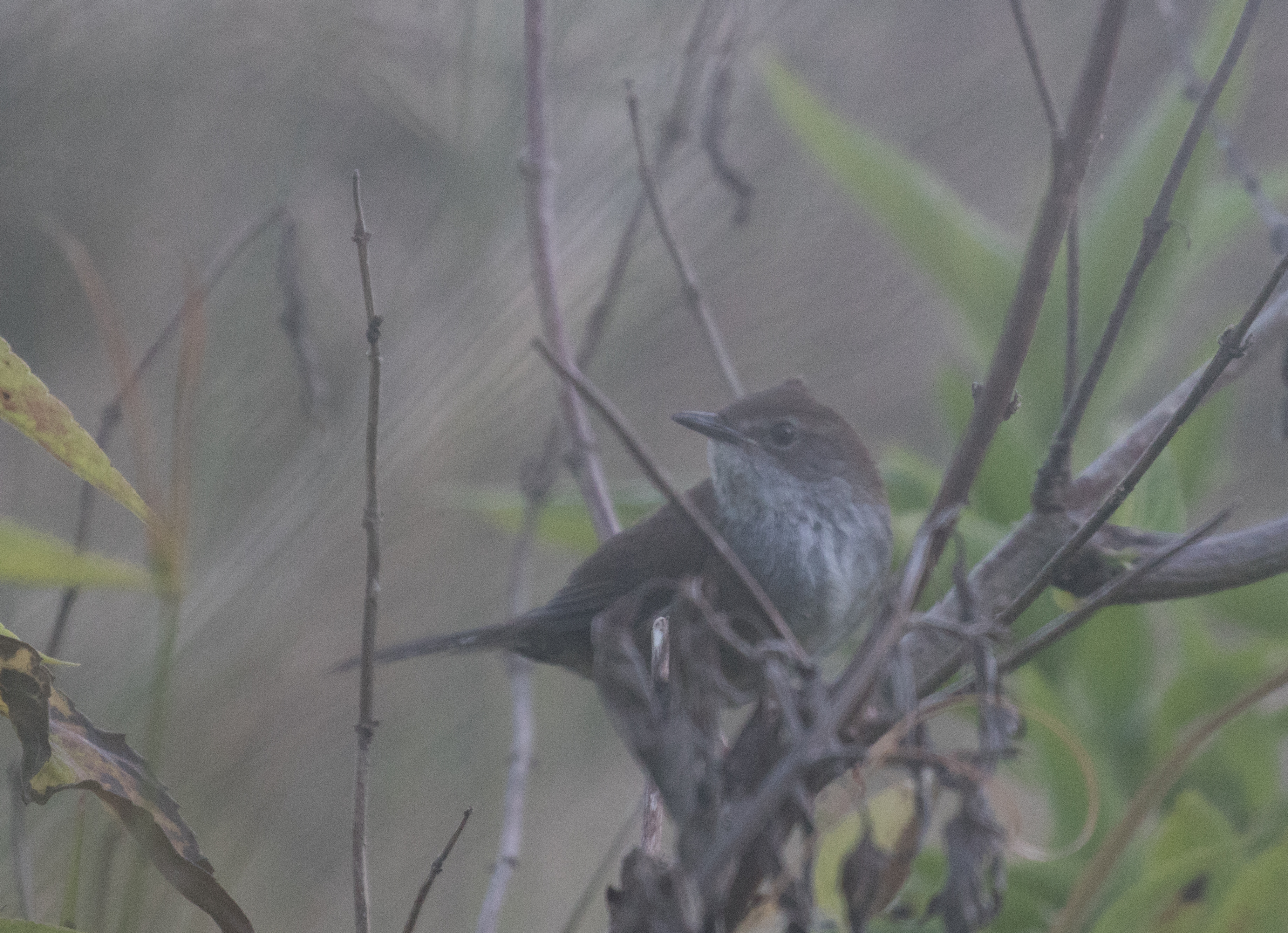 The Horsfields Thrush that Ross had while on the trail at the bottom is a significantly better bird than the Green Junglefowl I had at the top. In fact, this endemic subspecies of Scaly Thrush can be rather difficult to find let alone see well and Ross had it right in the middle of the once-crowded trail while everyone who came to see the blue flames were up the mountain somewhere. Unfortunately two hikers came by and flushed the bird from the trail before he could manage a better photograph. Nonetheless, I’ll include this photo here and see if you can find the thrush in it.