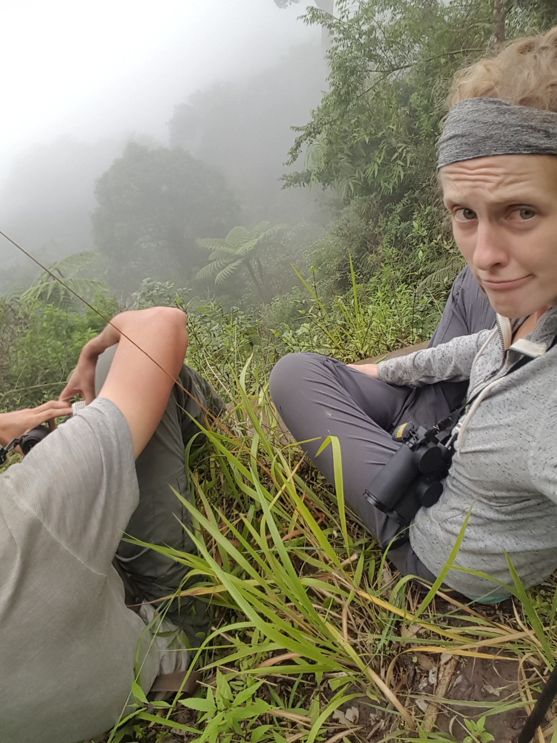 We arrived back in Ruteng by 9AM which really wasn’t too bad. We went back to the same hotel we stayed in prior, dropped our bags and opted to head back to Golo Lusang to try again for the lorikeet that we missed earlier due to the weather. Luckily this time the mountains were in the clear and the sun was shining! This is where it just gets funny. We took motorbikes to the site and just as we crested the hill to look down into the valley, we watched as clouds came rolling in. No joke. We stood on the hillside getting our gear ready and saw the blue sky clear as day on one side of the mountain and watched as the other side, the area we planned to walk, went from blue to being engulfed in white. We just had to laugh. This time we weren’t going to let a cloud ruin our day. (Not to mention we really didn’t have a choice.) We started walking the road and really saw very little. Another group of Red-Cheeked Parrots flew over and we did manage views of Short-tailed Starlings and Eye-browed Heleia, but it wasn’t until we had been in the area for a few hours and stopped at a small clearing that we FINALLY heard our target calling in the distance. Unfortunately the area we were scanning was quite small and you couldn’t see very far out. Even if the birds were close, we weren’t going to see them through the fog. We were exceptionally lucky however and the birds pretty much did exactly what we needed them to do – fly super close during a brief reprieve in the fog. It was just after 2PM when we had views of two bright green Leaf Lorikeets fly by. We decided we better leave while we still could and hopped in the next available vehicle. This time we road in the back of a truck where half of the truck bed was full of gasoline cans and the other half was piled up with sticks. There was just enough room that we could sit on top of the sticks, somewhat comfortably I might add!