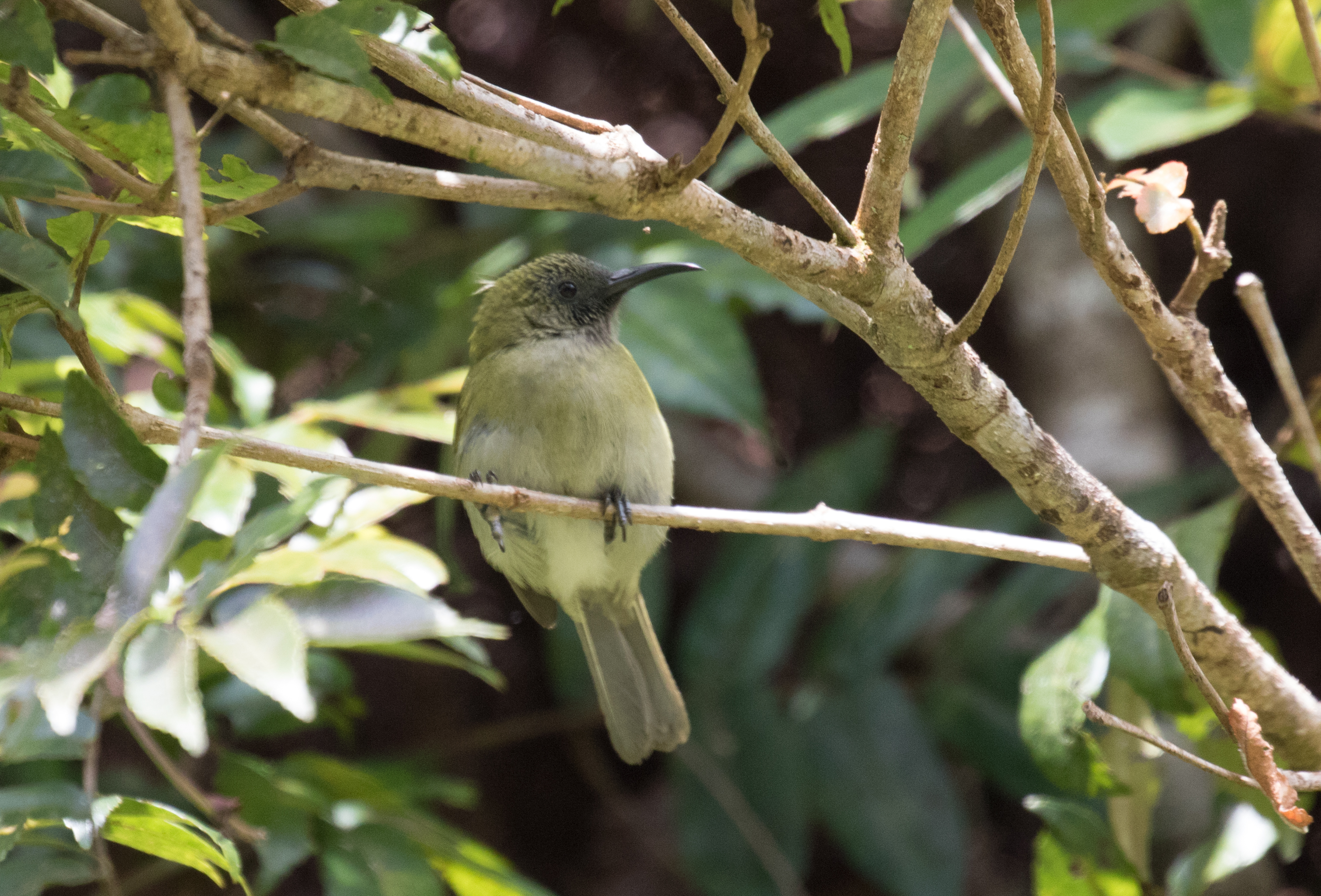 There are a few areas birders visit when coming to Flores and we planned to visit four of them in the central part of the island, Poco Ranaka, Golo Lusang, Pagal Road, and Kisol. We arrived in Ruteng, a small town in the middle of the island, and were initially surprised to see other tourists in the area. We didn’t realize that people outside of birdwatching had a reason to visit this mountain town! We immediately dropped our bags at a hostel and proceeded to hitch a ride 8km down the road to our first destination, Poco Ranaka. But names really aren’t important here so I’ll just say that our location for the day was an old road leading to a telecom tower. The road essentially goes up to this tower placed on a mountain and to get there you must walk entirely uphill. (Nothing we weren’t used to before.) The road is passable by motorbike but we were planning on walking because the whole point is to pick up some birds along the way. Why go to the top of a telecom tower otherwise? We finally got to the trail/road and started hiking birding at 9AM on the dot so it was pretty ironic that when we finished the day it was at 9PM on the dot. Yes, you read that right, a full 12 hours were spent on the trail. (We had recently purchased some peanut butter, jelly, and bread so it was sandwiches in the field for us, mom, in case you thought we might have opted to starve ourselves!) Anyway, when we arrived it wasn’t exactly early morning but activity was high and we immediately had views of the unique Bare-throated Whistler, a Flores endemic whose loud musical song we heard long before we managed to sneak into the forest and spot it in a tree. I also managed views of Flores Green Pigeon and Thick-billed Heleia while Ross got lucky in seeing a Tawny-breasted Parrotfinch while he had crawled in the woods to photograph a Russet-capped Tesia. We also managed to track down our only Flores Warbling-Flycatcher of the trip.