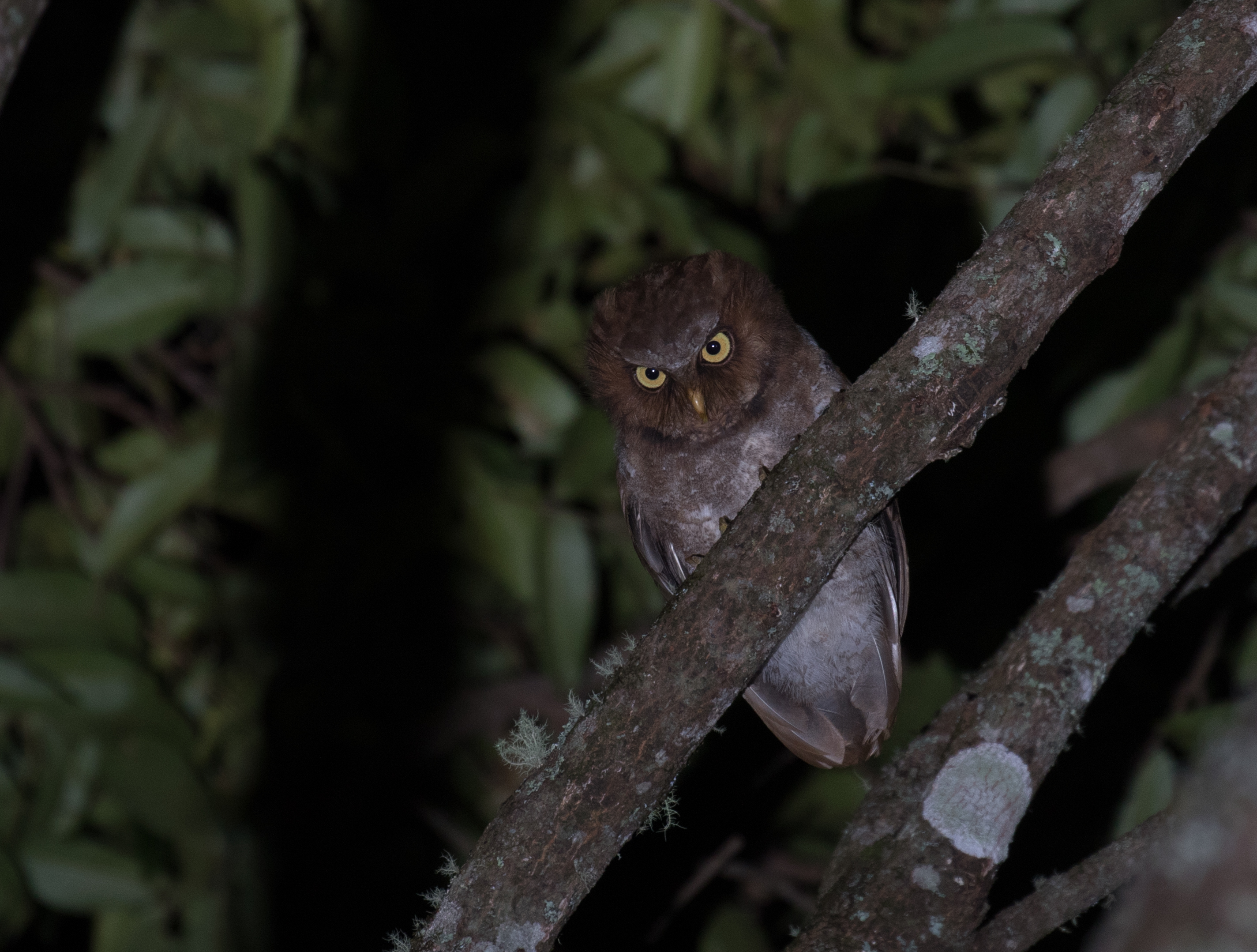 The next morning we returned to the spot where Ross had Wallace’s Scops-Owl before to try again. We arrived in the middle of the night and sat amongst the trees waiting for a response. Although it took until just before dawn, two Wallace’s Scops-owls came overhead! After the birds left, we opted to walk the road to check an area we hadn’t checked before. Believe it or not, another Wallace’s Scops-owl started to call so Ross calls back and the bird flies right over us! Generally people have trouble finding this particular species, but in our 2 nights in the area, Ross heard 5 and saw 3! Not too shabby!