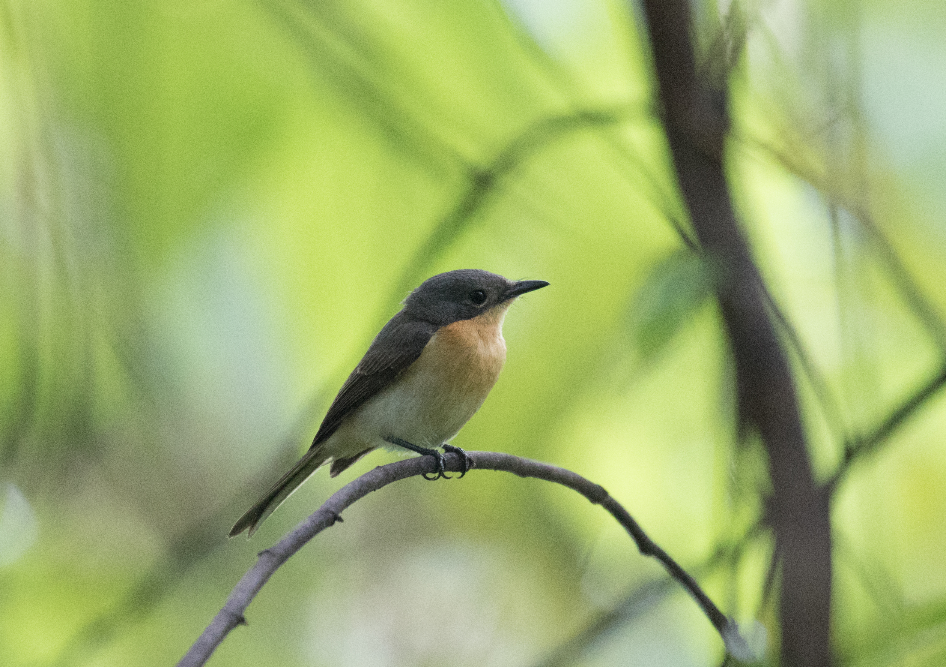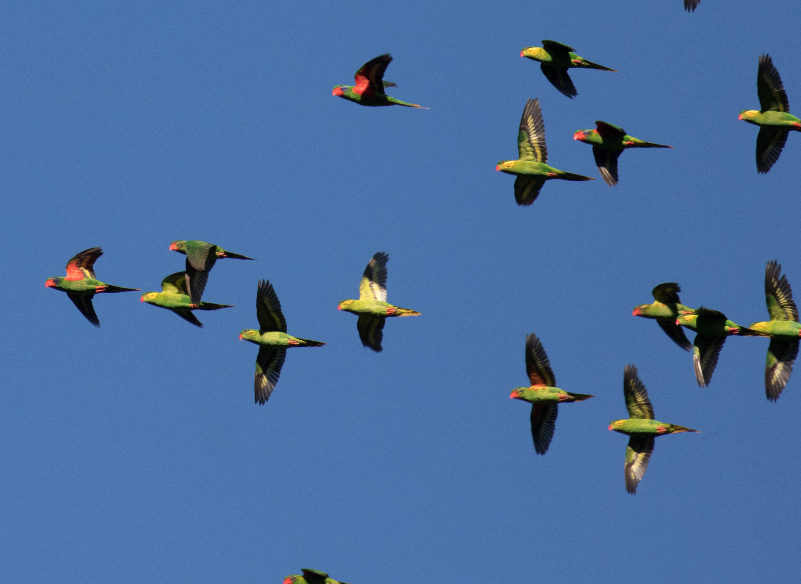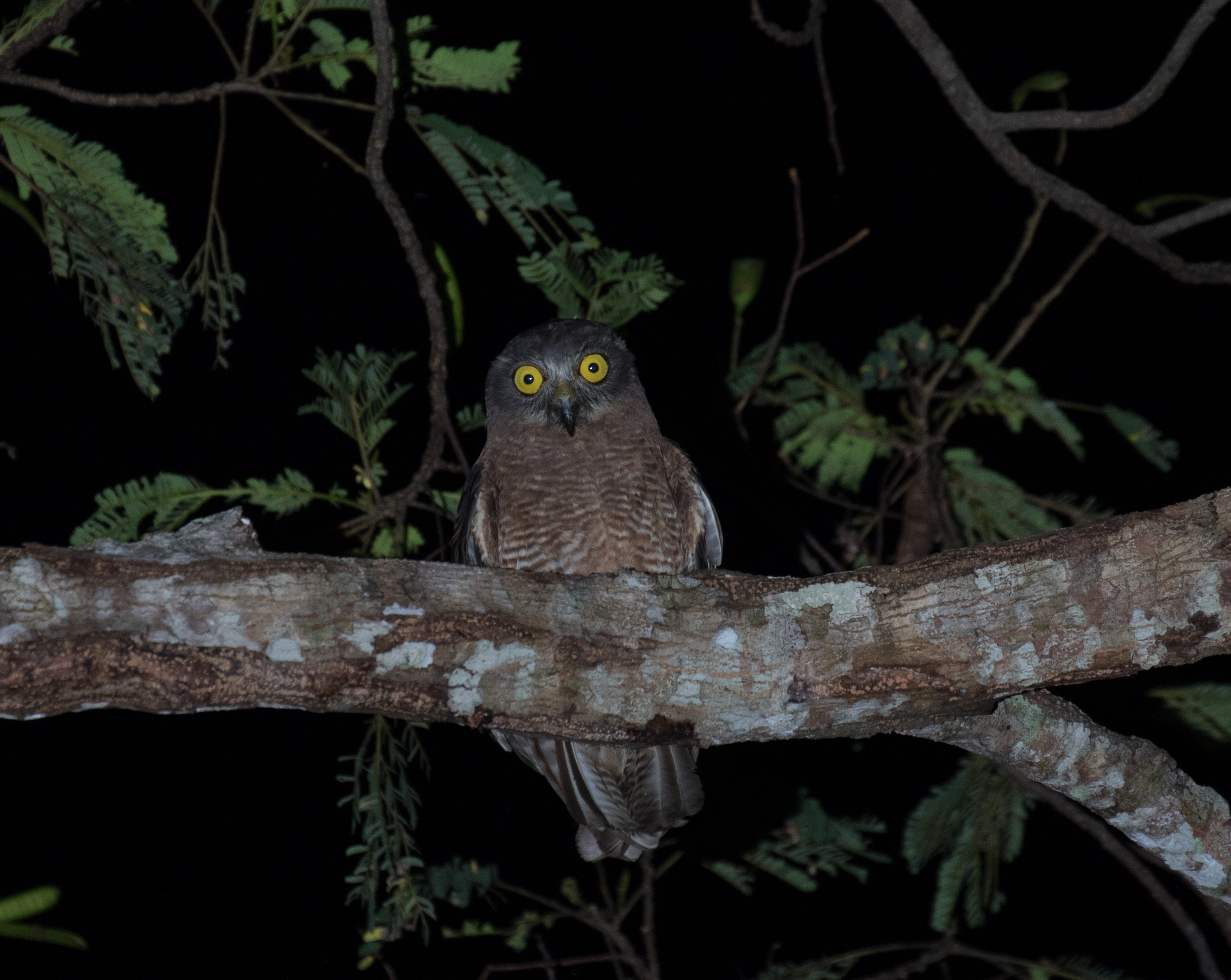 We dropped our bags and quickly made our way to the nearby forest where we spent the remainder of the afternoon and early part of the night searching for birds. Several of our targets were to be the likes of pigeons, fruit-doves, hawks, eagles and parrots, aka birds you really can’t do much to see other than just spot them. It was midday when we arrived but the trail was exceptionally birdy and birds such as Red-flanked Lorikeet, Gray-headed Fruit-Dove, and Black Sunbird were very common. We quickly got on multiple targets as well such as Sombre Kingfisher and Spectacled Imperial Pigeon, Superb Fruit-Dove, and Shining Flycatcher. We stayed out until after dark and managed to find our first of three night targets, Halmahera Boobook.