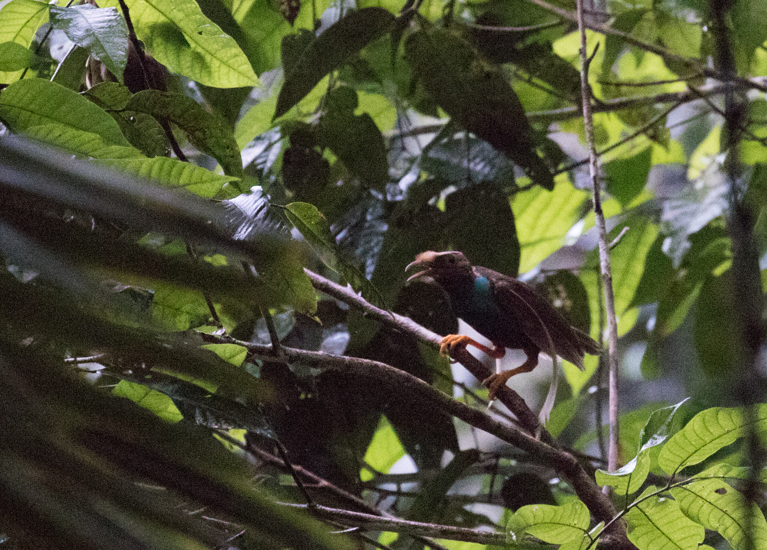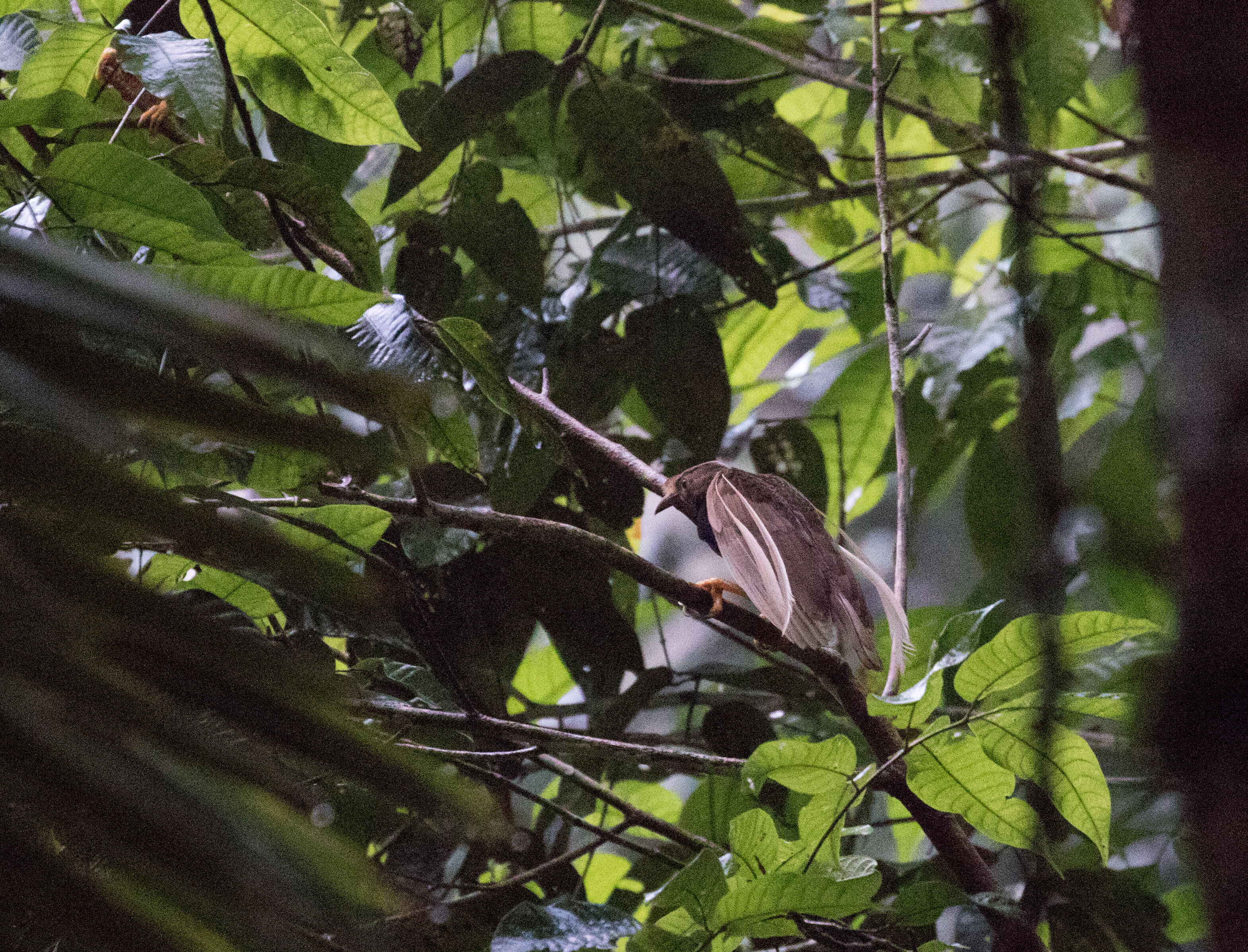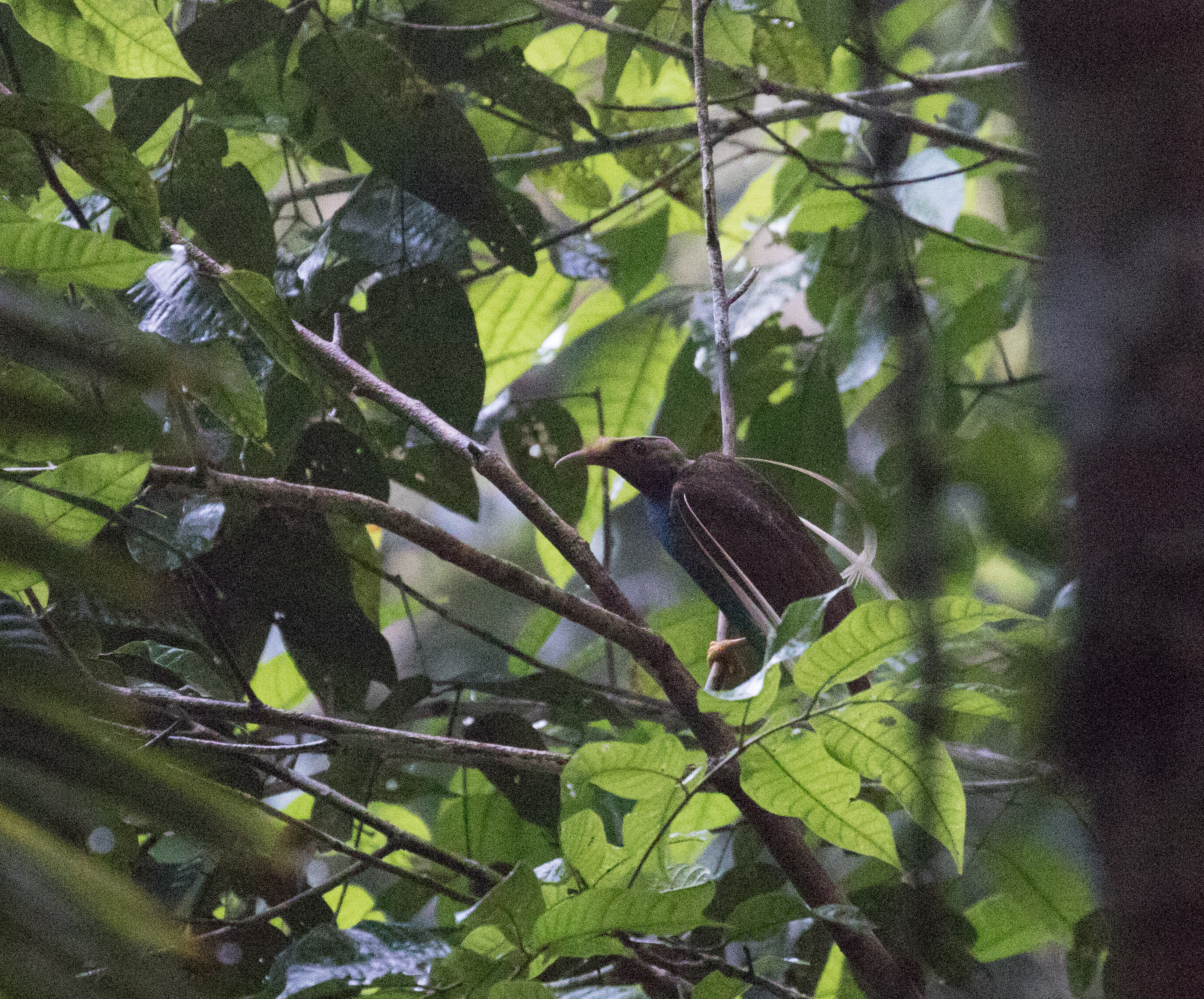 The next day we left super early and made our way to the entertaining Wallace’s Standardwing lek before dawn and watched as seven stunning males with crazy long feathers and a bright green chest patch that they would flare up attempted to outperform each other to impress a rather interested female. Seeing my first bird of paradise performance was not a disappointment! From the lek site we hit the trail and proceeded to spend the rest of the day and early part of the night walking the old logging road. We left the homestay at 0400 and got back at 2100, totaling 17 hours spent in the field!