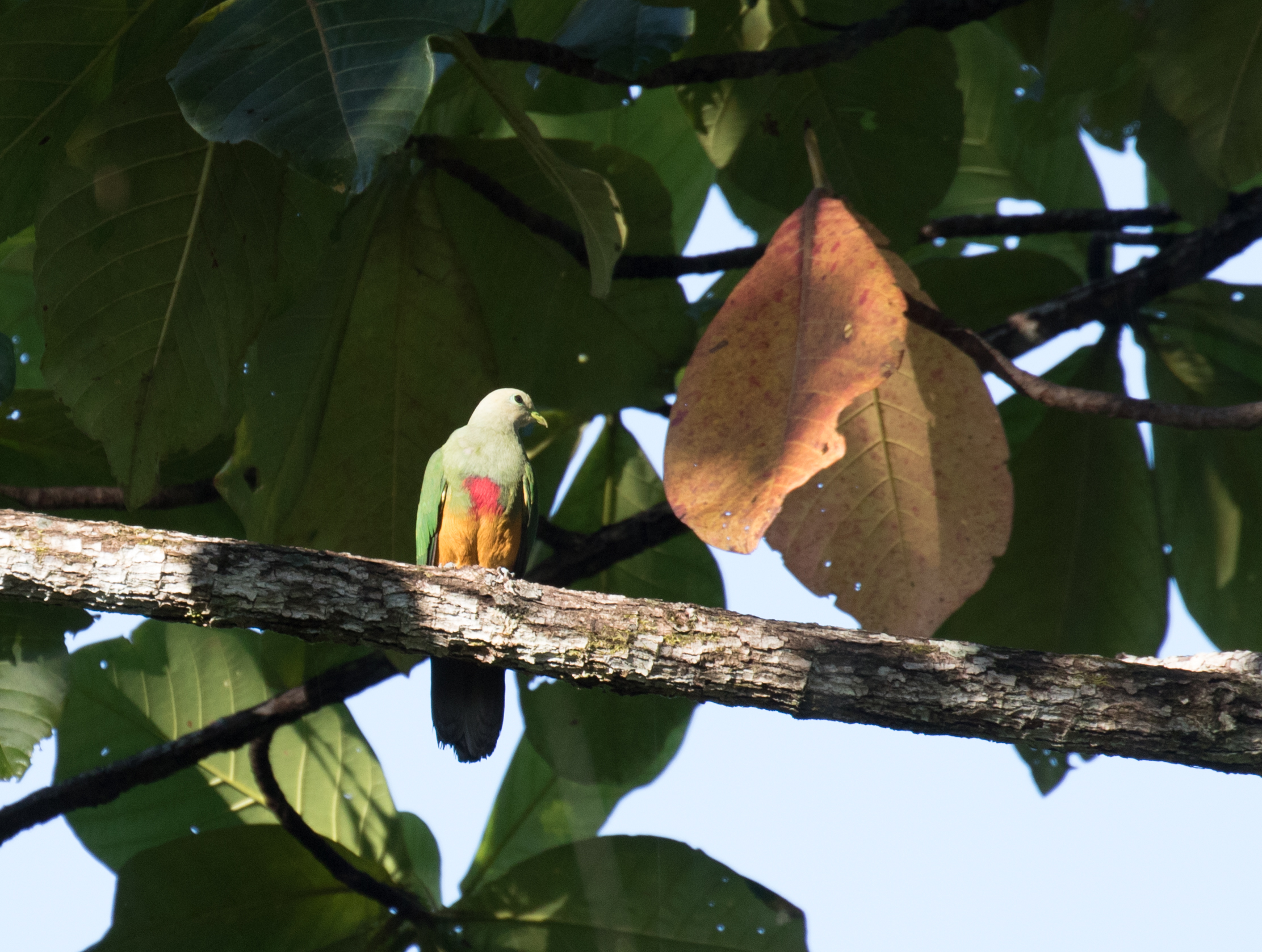 Our second day was exceptionally productive with great looks at birds such as Scarlet-breasted Fruit-Dove, White Cockatoo, Violet-necked Lory, White-naped Monarch, Halmahera Oriole, Cinnamon-bellied Imperial Pigeon and Common Paradise-Kingfisher. We finished the night with great views of Moluccan Owlet-nightjar. The next day looked a lot like the previous, except we targeted several species but definitely got lucky on more than one occasion, when Ross spotted one of our few remaining targets, an Azure Dollarbird out on a distant hillside. I can’t say it was luck though, Ross is exceptionally diligent when it comes to scanning for birds and is adamant that a scope is a necessity on a birding trip. Although we only ever had scope views of this rare endemic, the 15 minutes we spent watching two birds feed were more than sufficient. It was a lucky day for sure as the evening brought a Grey-throated Goshawk our way along with views of Rufous-vented Bush-hen, two birds we were missing up until this point.
