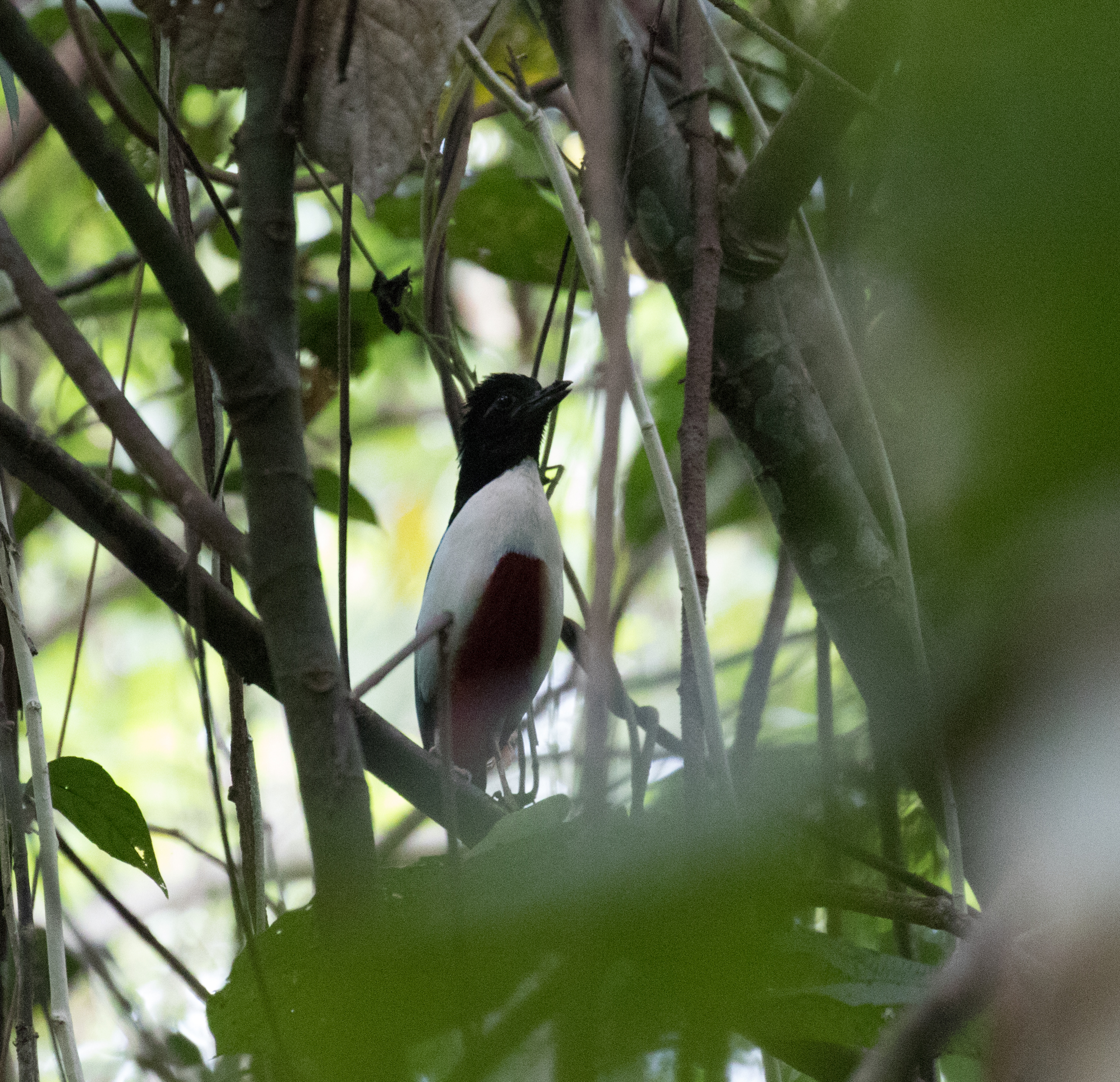 The next morning we hit the trails early to hopefully at least hear an Invisible Rail calling. We never did, but we were treated with excellent views of an adorable and super brazen Moluccan Dwarf-kingfisher who decided that right in front of us was the best place to take his morning bath! We had fantastic views of the bird as he would sit on a perch then fly down to the stream, dunk himself and fly back to the perch to repeat. It was fantastic and we both just looked at each other with “wasn’t expecting that” written all over our faces. With no rails in the area we decided it might be best to walk further up the trail and see what we could find. We staked out a small area up the trail along a small stream bed that looked like it might be good for the rail. Surprisingly, we were right, the area was great for a rail, but just not the right one. We had views of Bare-eyed Rail walking by, but no Invisible Rail, but as it turns out there are even fewer recordings of this species on eBird so it was still a great bird to get. The rest of the morning we hiked around the area but never even heard our target rail, one which is supposedly fairly easy to hear. Midday we visited an area along the beach for Beach Kingfisher. We had to climb through a bit of a mangrove tangle to get to the location, but it was worth it as we had views of two Beach Kingfishers!
