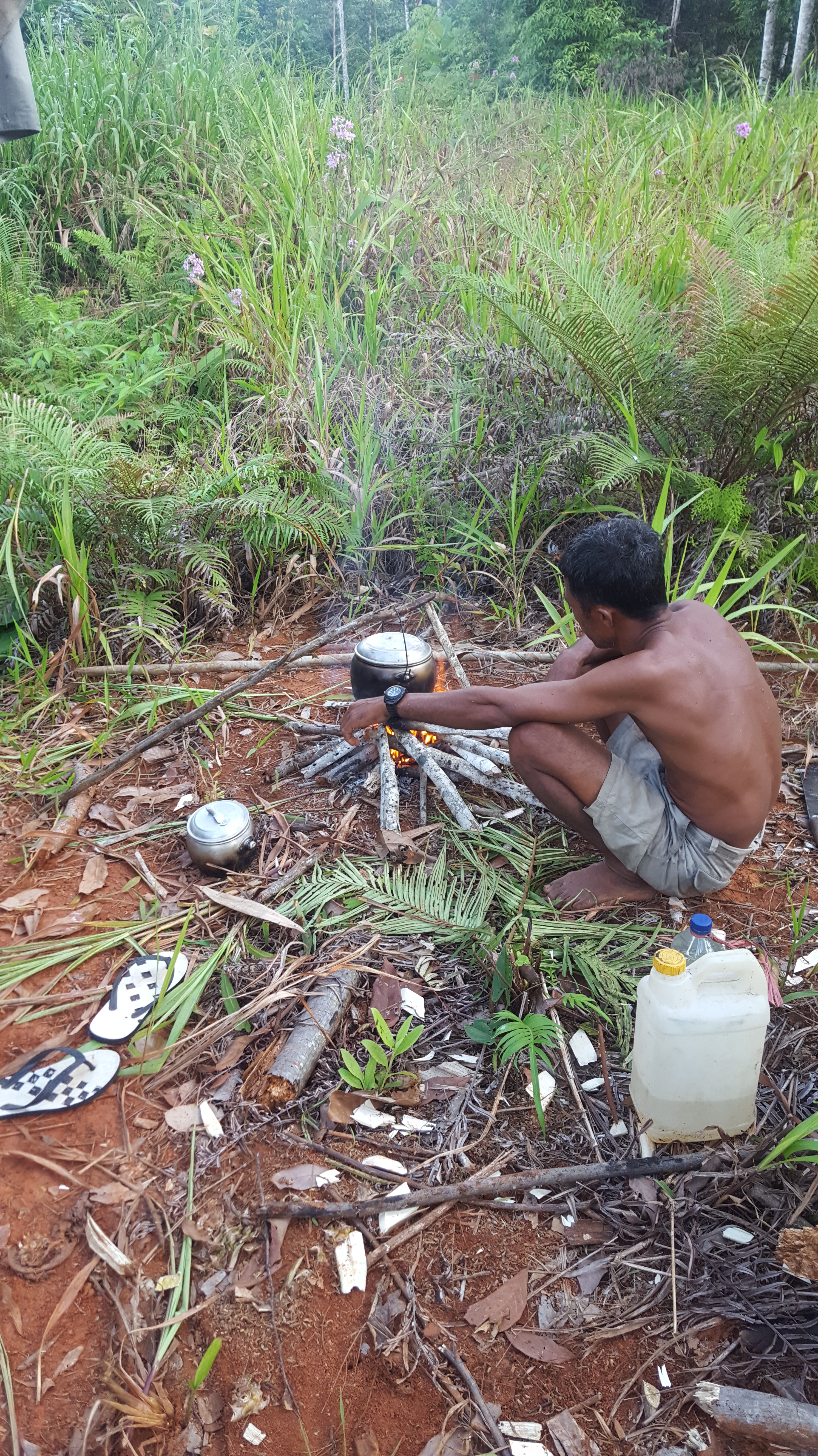 Andenan and Jabert (our guides/porters) started by getting a fire ready while Ross and I were quick to take off our sopping wet boots. Hiking with pruned feet is not a fun business at all. We had a lunch break and then decided we had better get back to the trail to get up a bit further in elevation to have a chance at seeing North Moluccan Leaf-warbler where Marc had said he’d seen it before, a first-ever report for the island of Morotai.