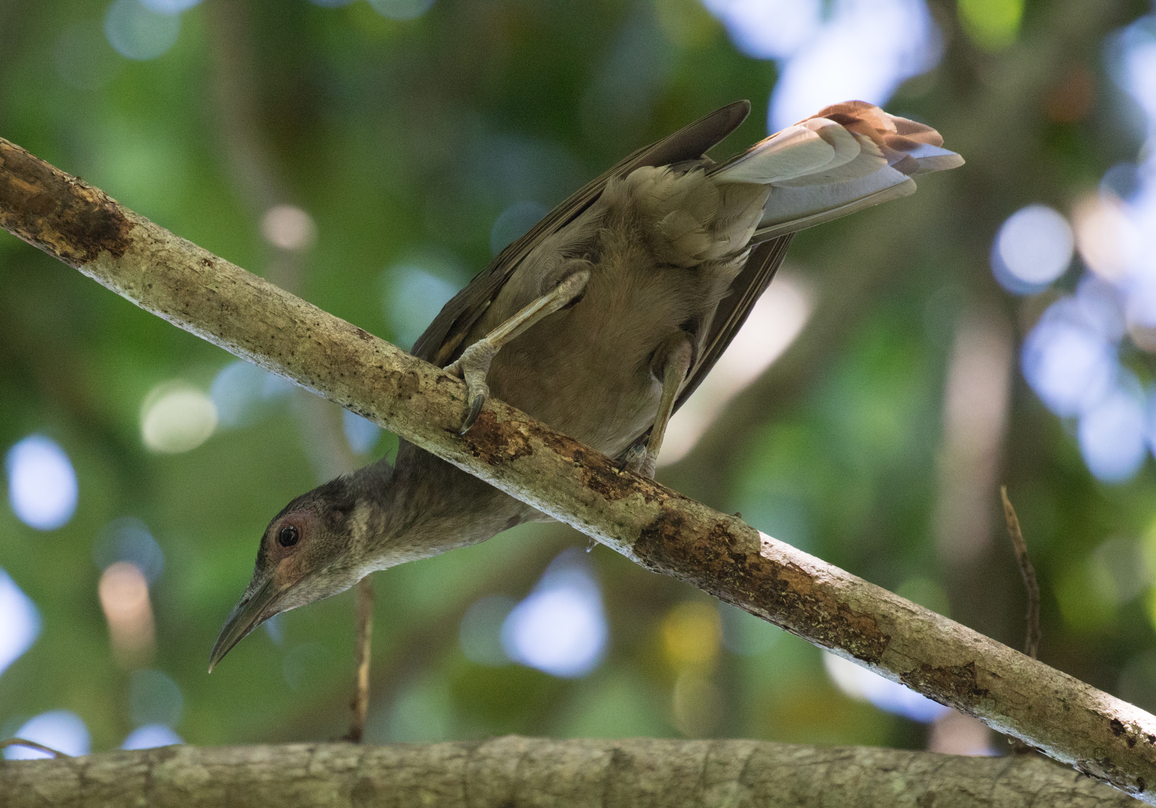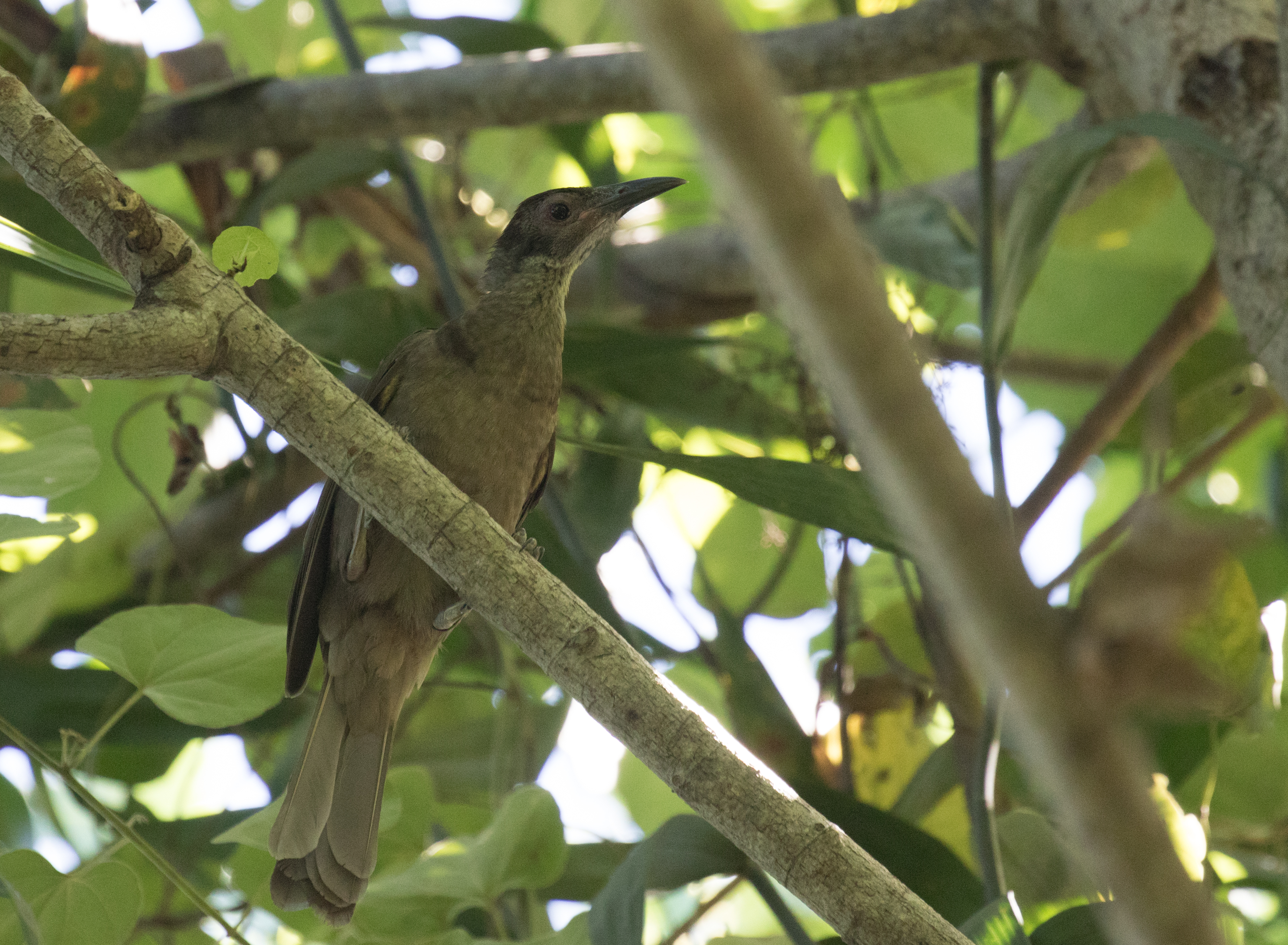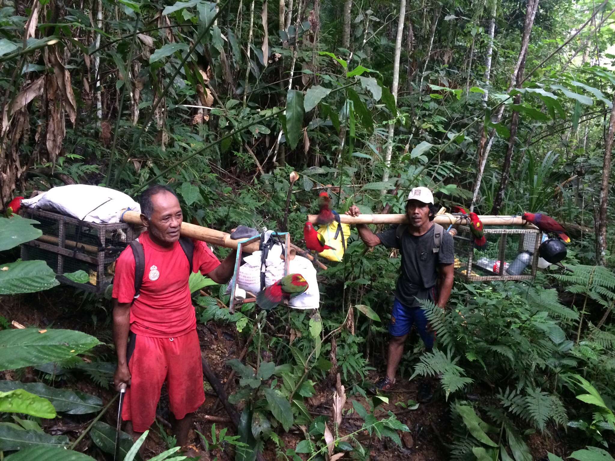 Ross and I had a slow morning otherwise and were in no immediate hurry to rush down the mountain. We knew we would bird on the way down but we laughed because if we hadn’t gotten that leaf-warbler the day before, our guides were going to be in for a real treat when we asked to be taken further up instead of going down. Thankfully it didn’t come to that and we started back towards the small town of Mira, 14 km away, and birded along the way. We had great views of Dusky Friarbird and Morotai Drongo while on the walk back down and finally had a sighting of the endemic subspecies of Chattering Lory whose numbers are surely declining with all of the trapping taking place in the area. On our walk back down we came across three people whose sole intent was to capture whatever parrot they could. It was quite sad to see several Chattering Lorys and an Eclectus Parrot chained to a box, unaware that they were going to be used to lure their fellow species into a trap only to live a life in captivity. I tried to explain in hand motions and google translate that this practice of taking wild birds and putting them into disproportionately tiny cages is really bad, but I doubt my efforts went very far. It’s a “tragedy of the commons” as Ross likes to say because if these men didn’t go out and trap a lory to make 20 bucks, their neighbor definitely would so they had better capitalize while they could. Sad to see, but it is their livelihood and until more education occurs, there’s nothing I could do about it in that moment.